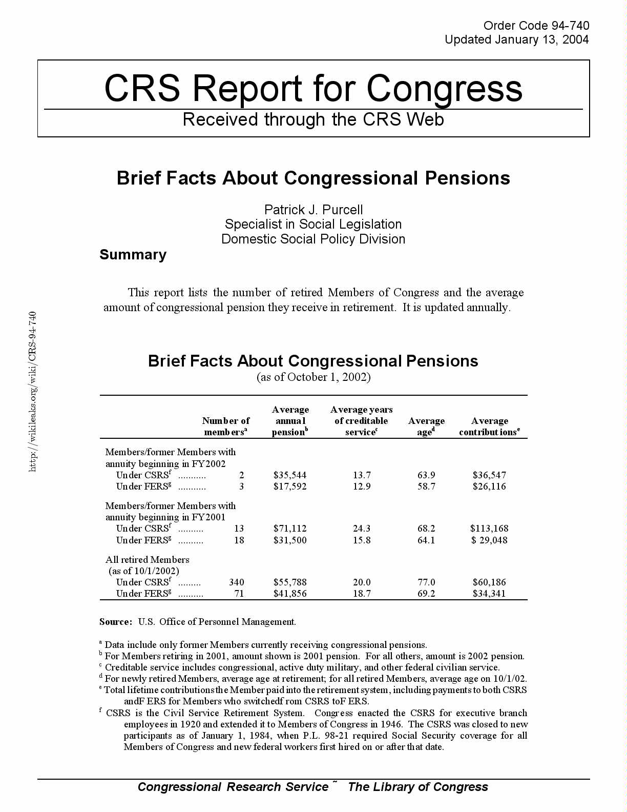 amount of congressional p ension they recei ve in retirement. It is updated annually.
