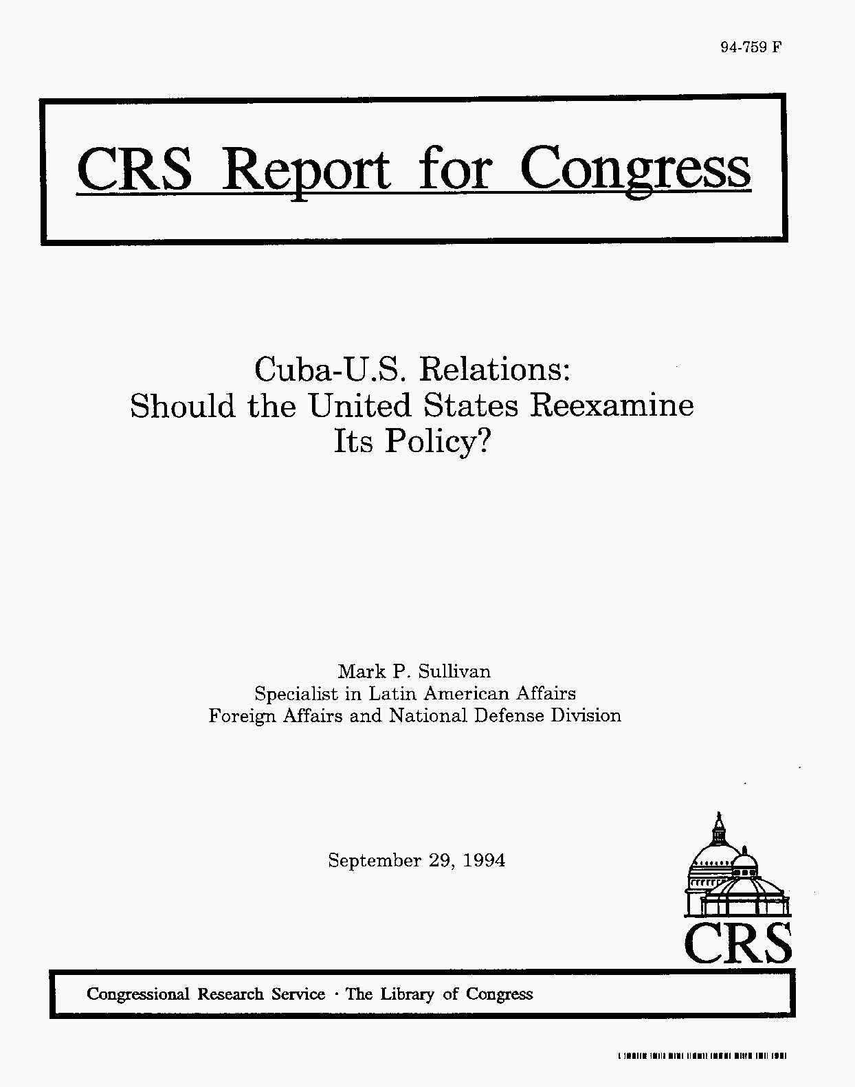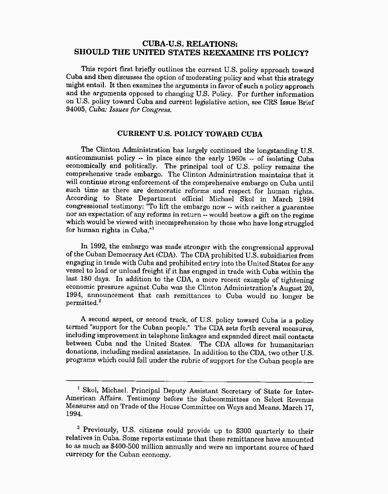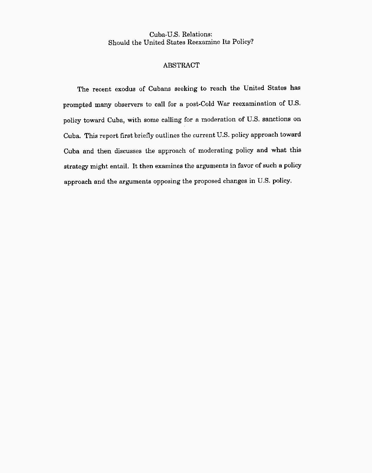 Cuba-U.S. Relations: Should the United States Reexamine Its Policy?