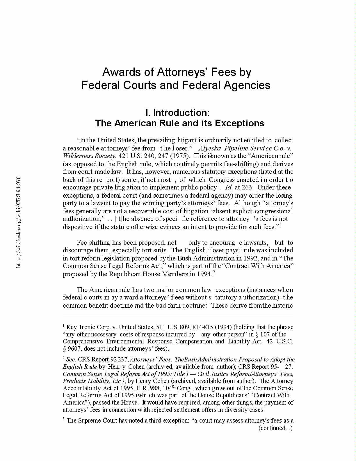 Wilderness Society, 421 U.S. 240, 247 (1975). This is known as the “American rule”