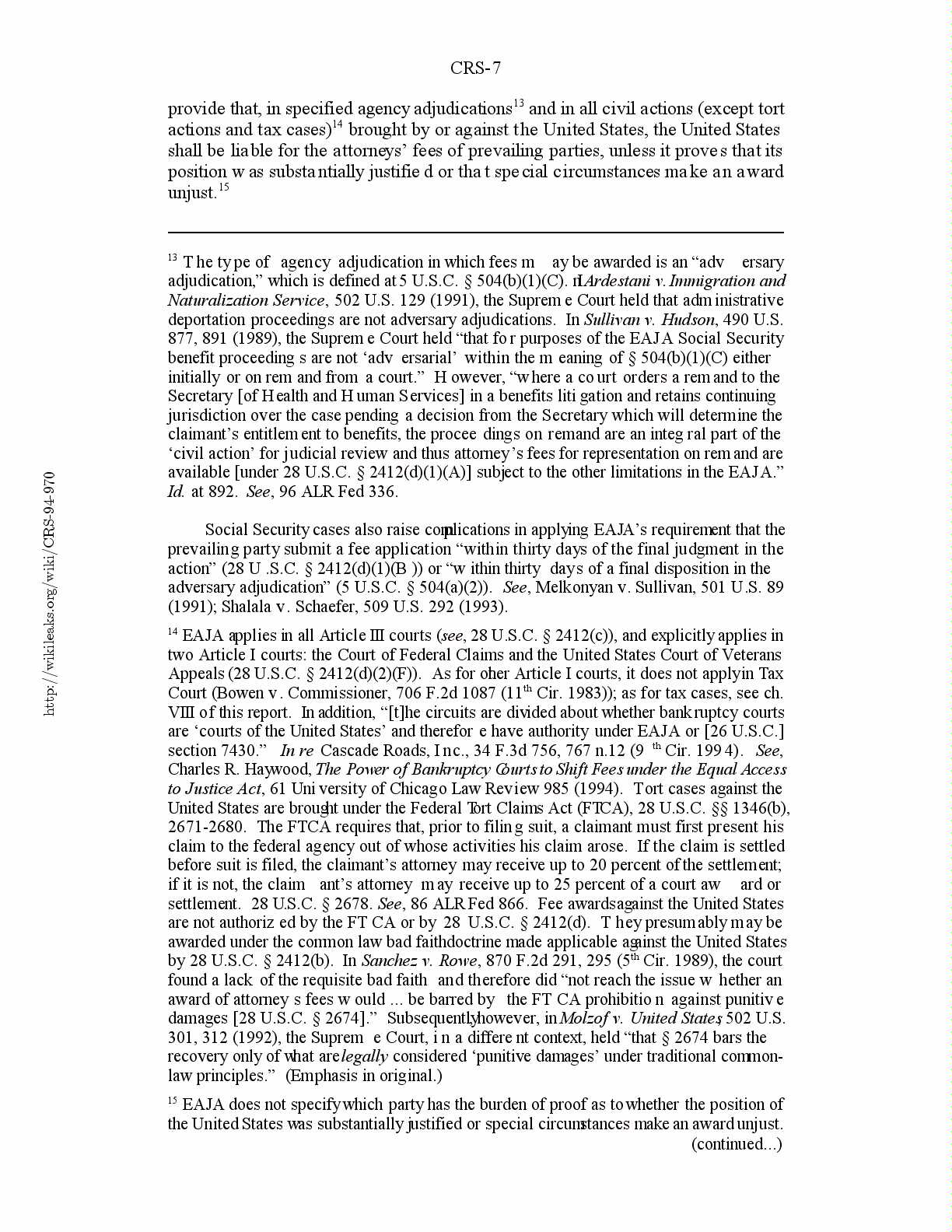 In addition, the Equal Access to Justice Act (EAJA) makes the United States
