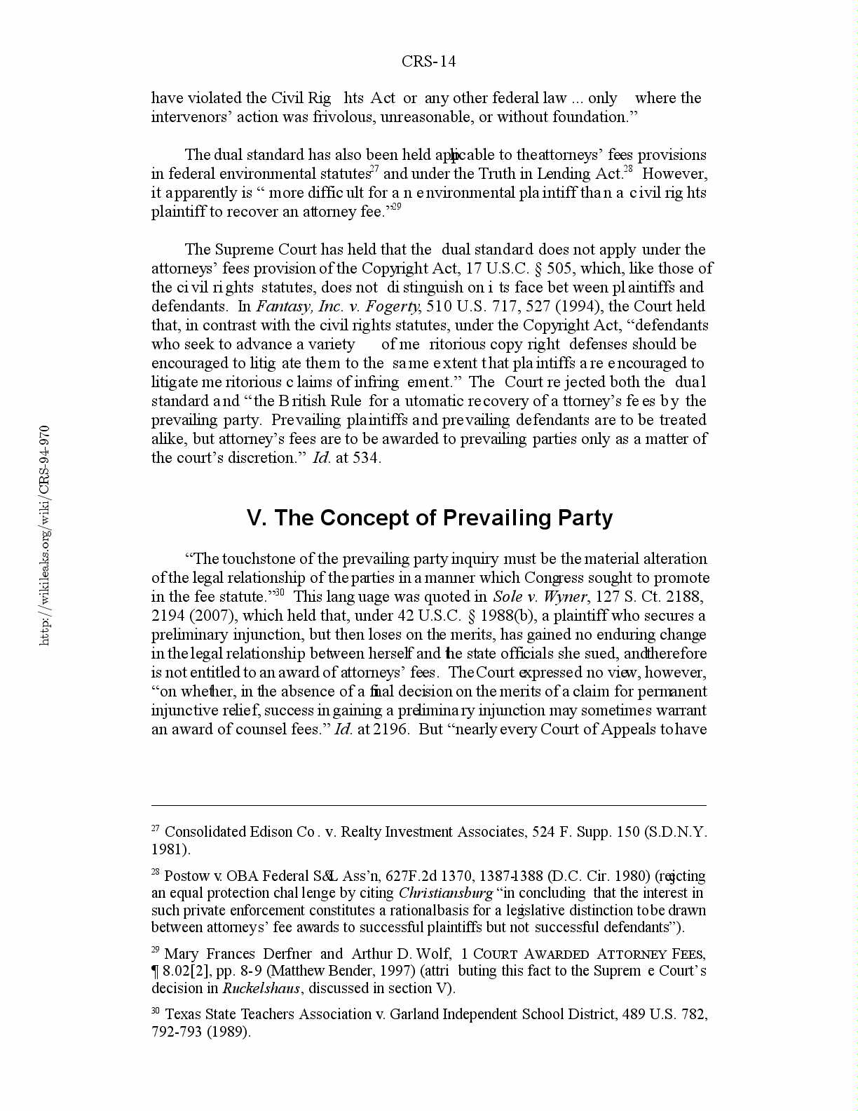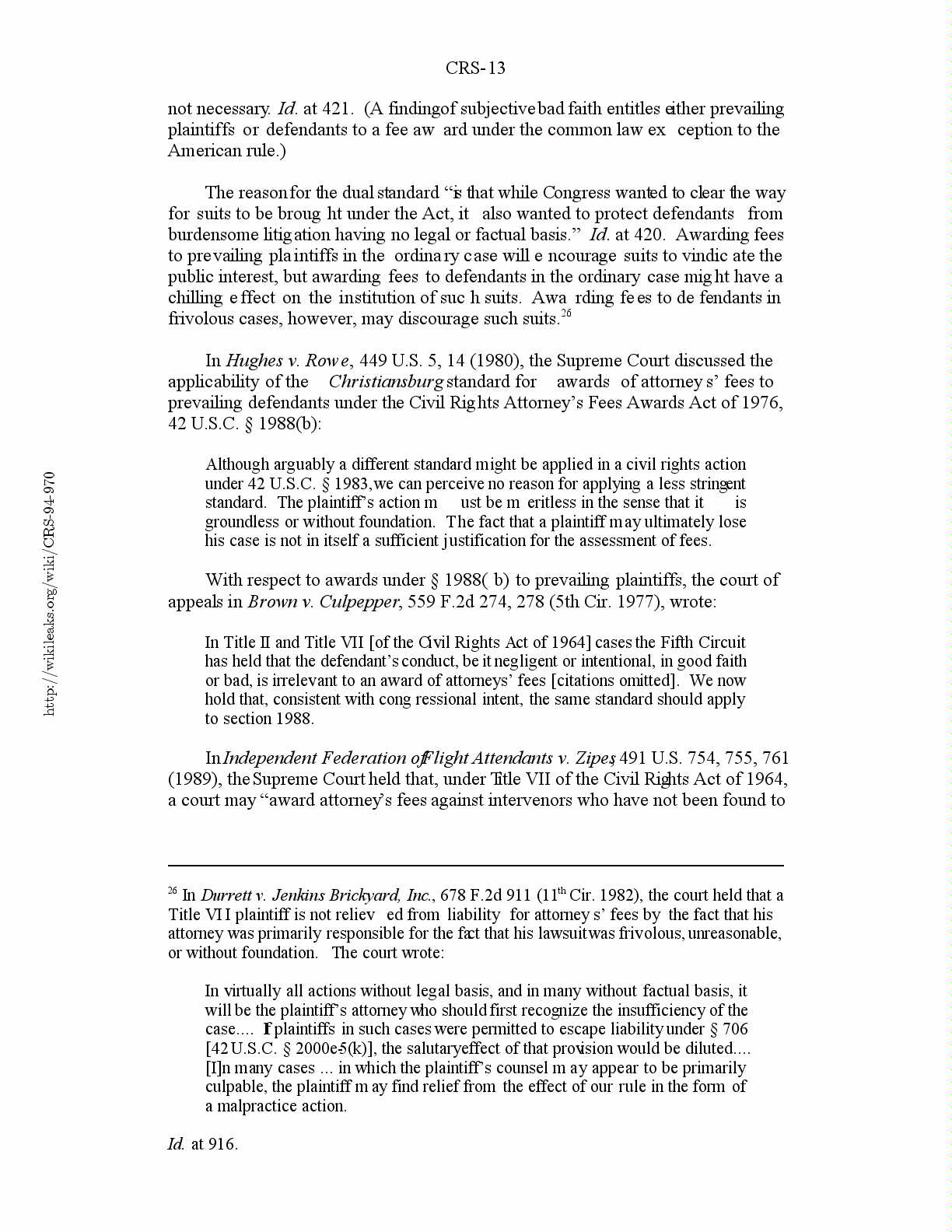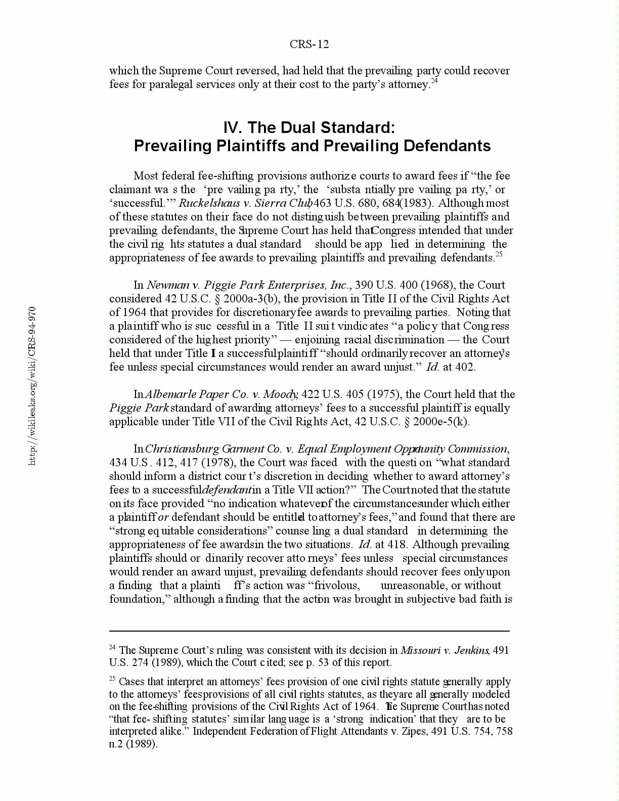 IV. The Dual Standard: Prevailing Plaintiffs and Prevailing Defendants......12