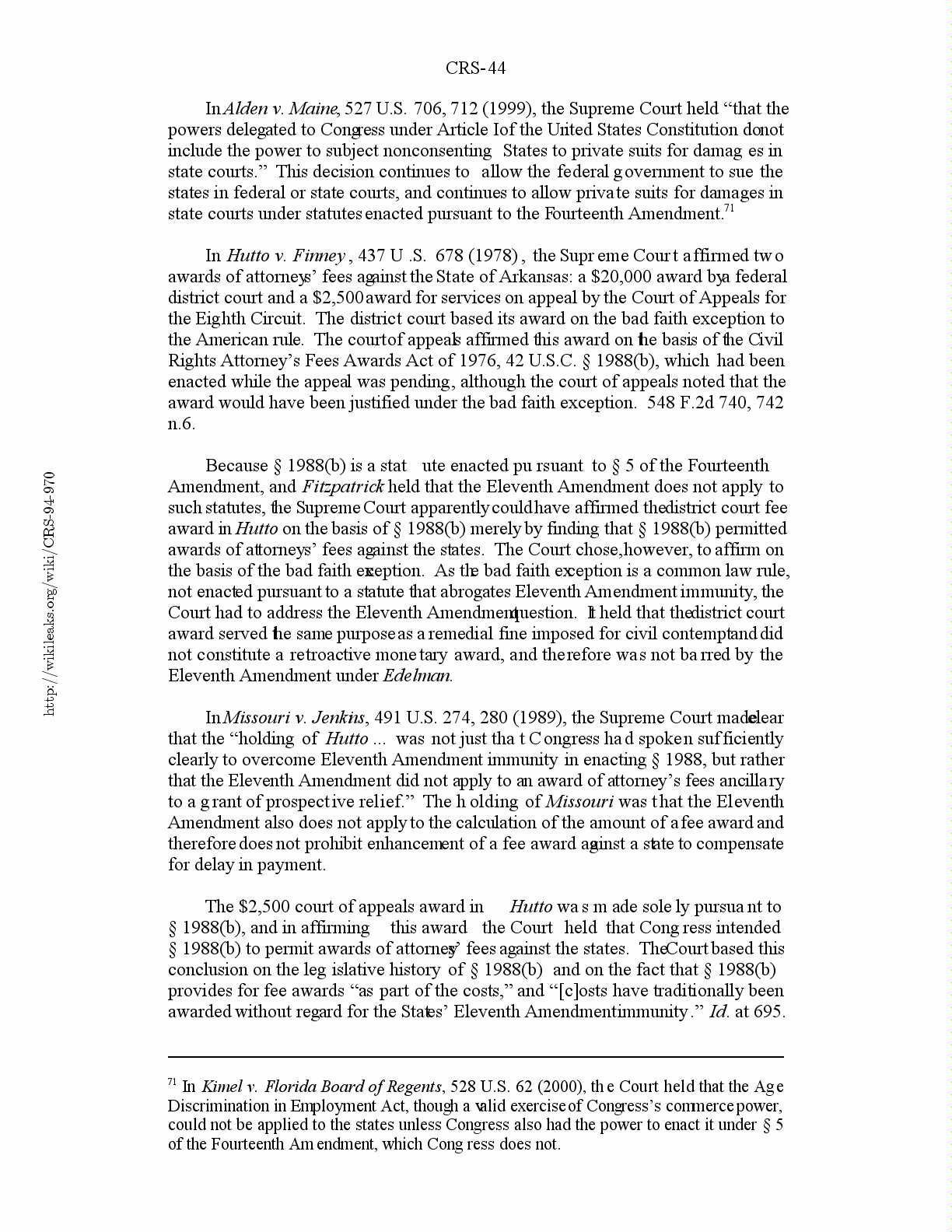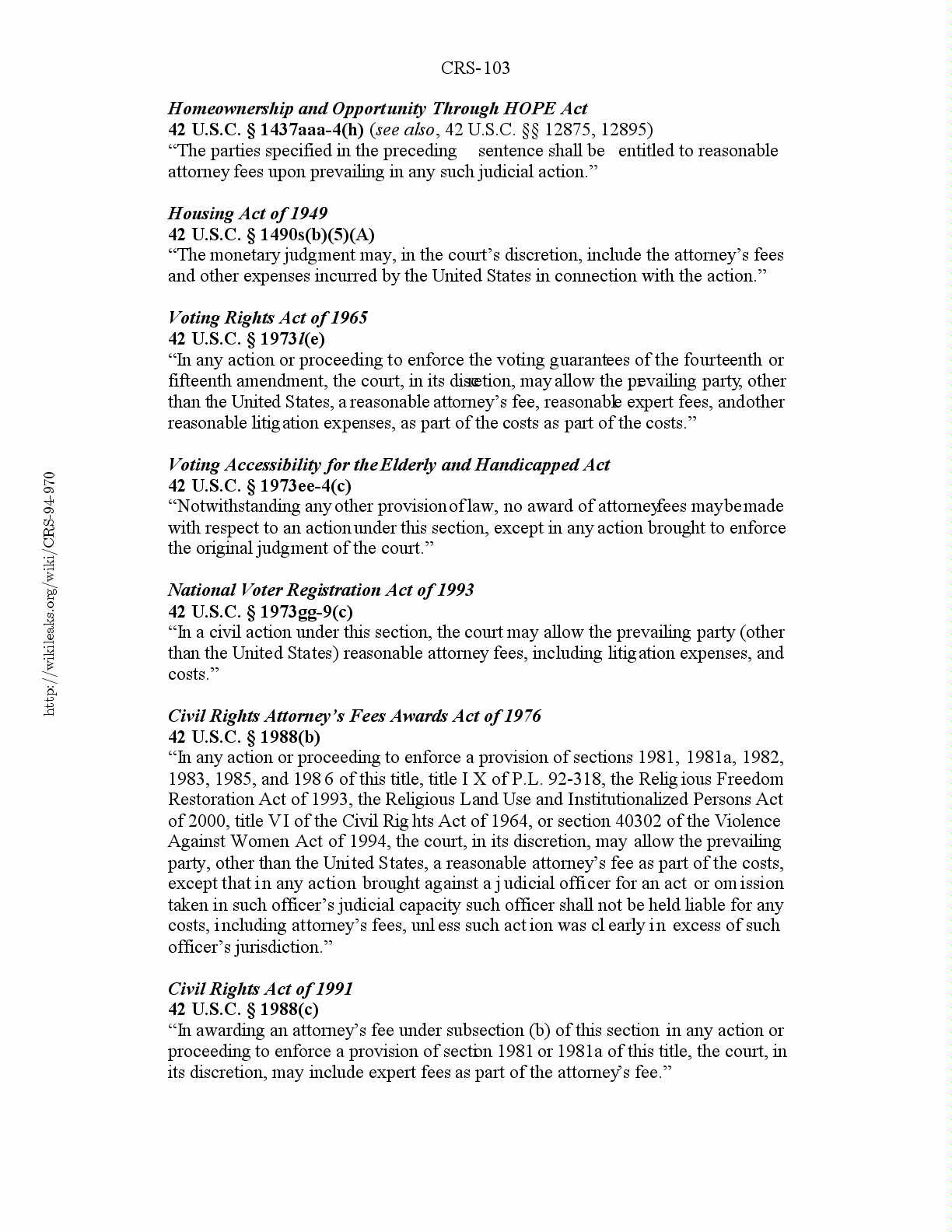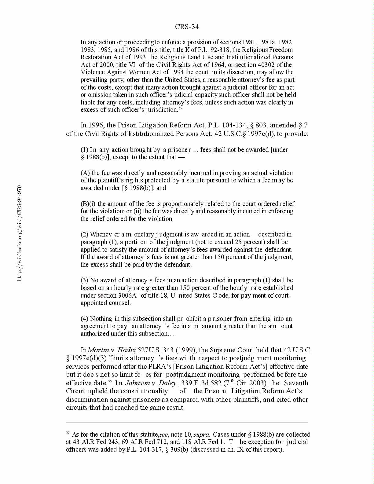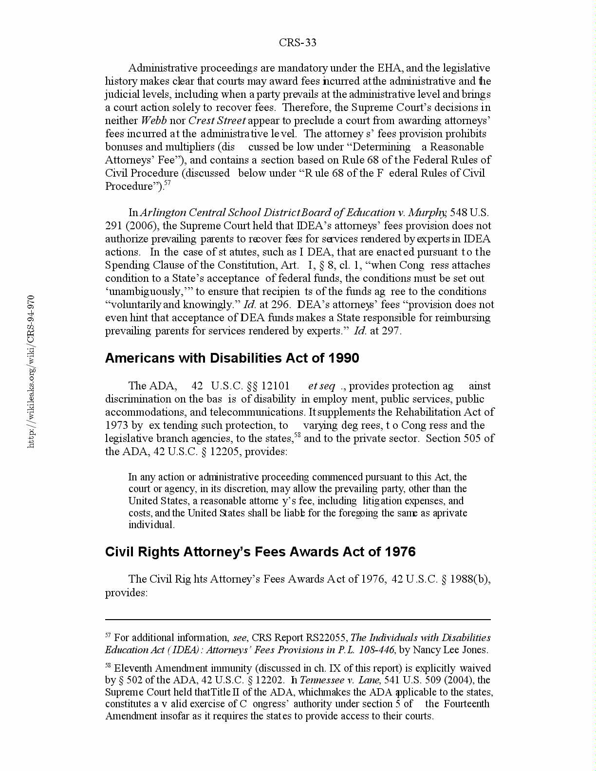 Civil Rights Attorney’s Fees Awards Act of 1976...................33
