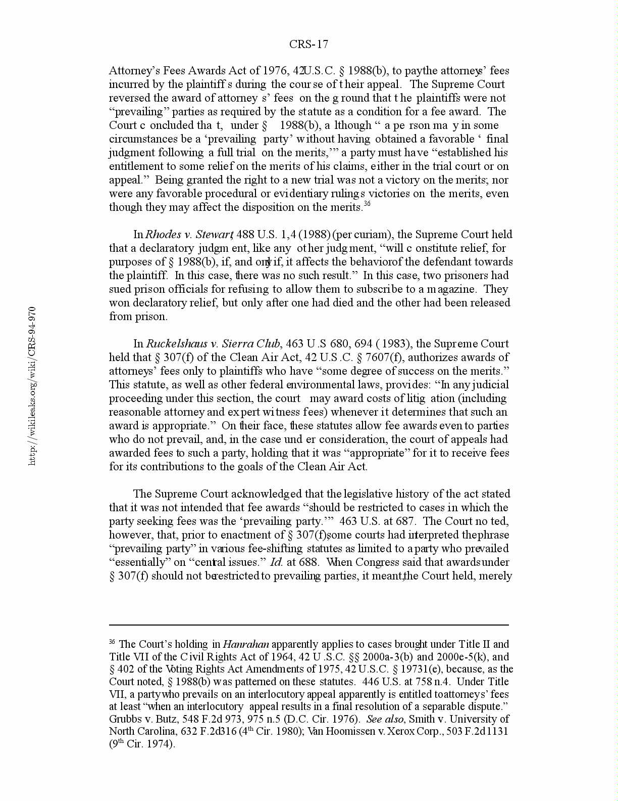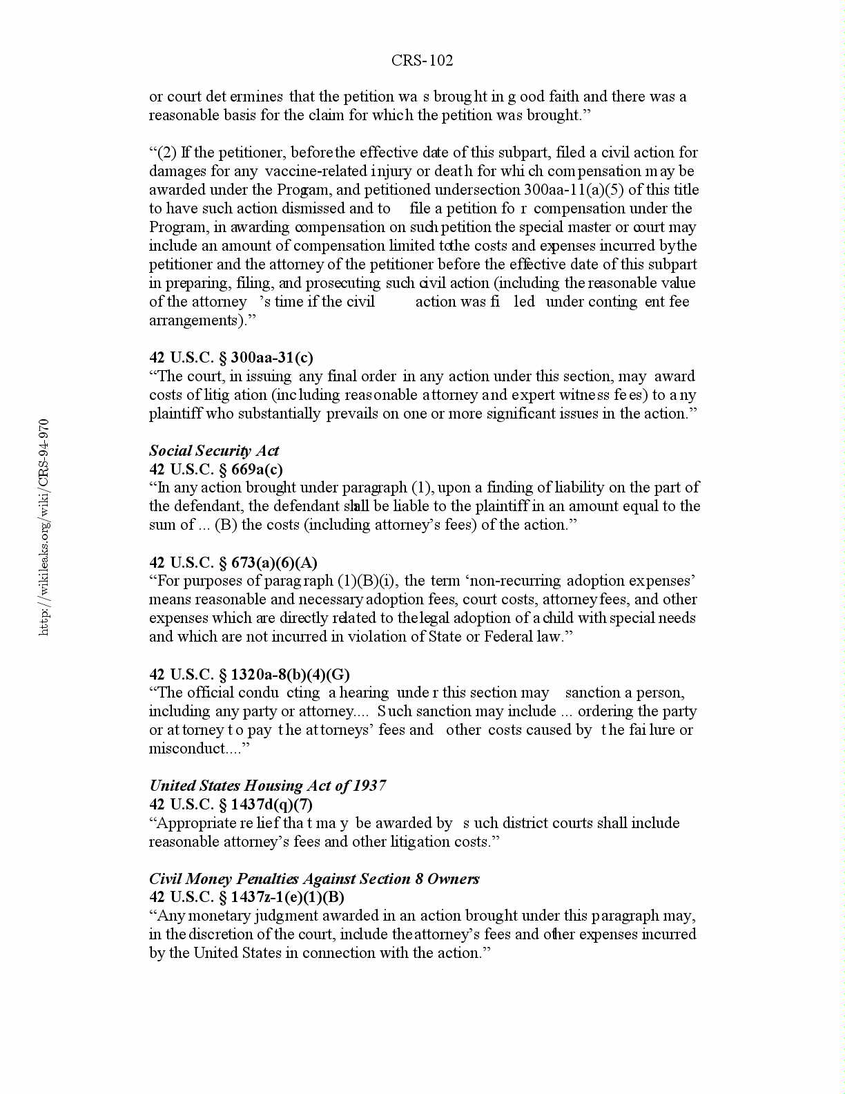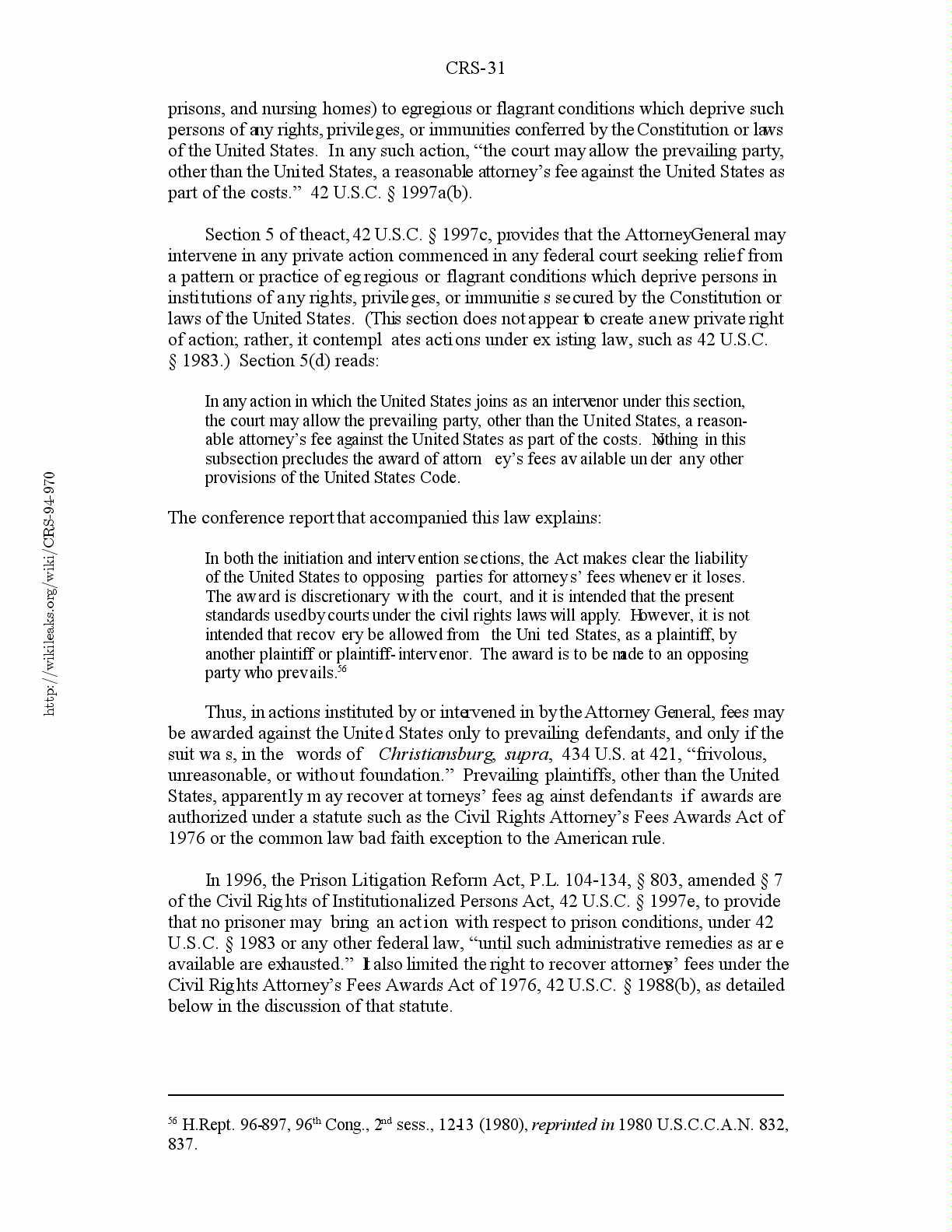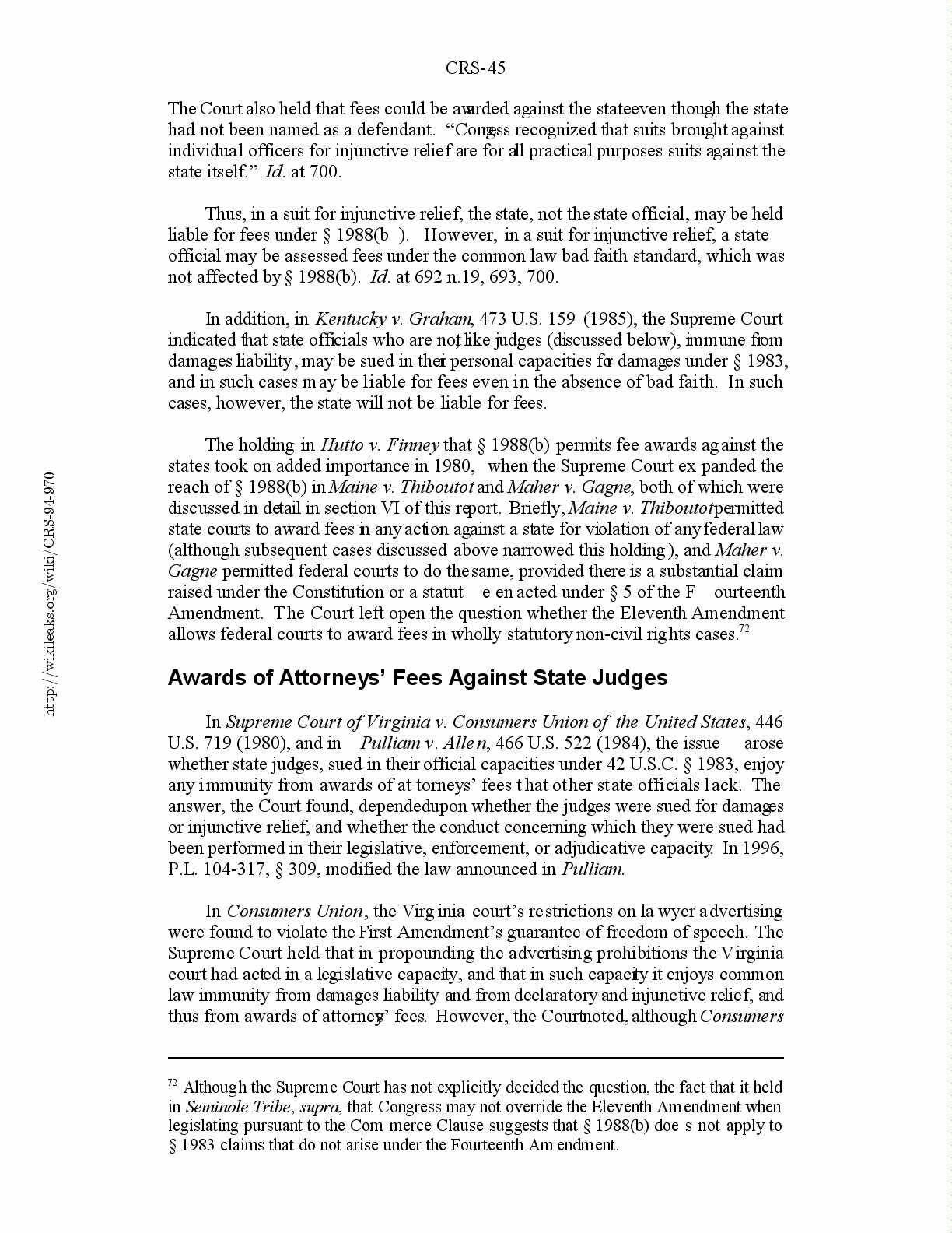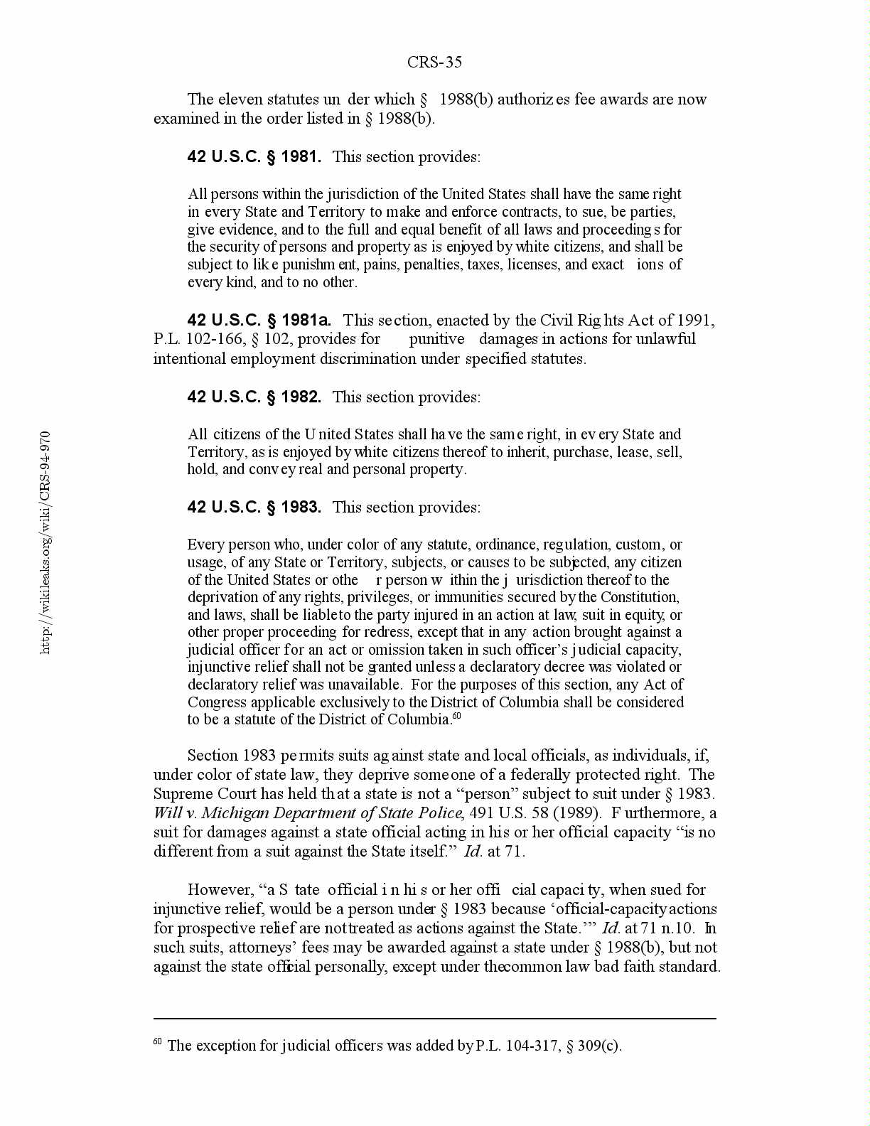 Civil Rights Attorney’s Fees Awards Act of 1976...................33