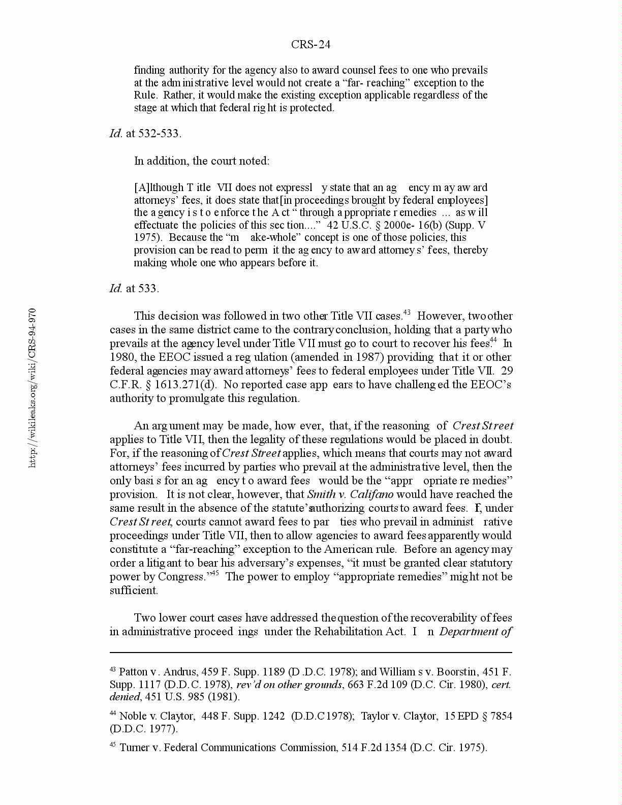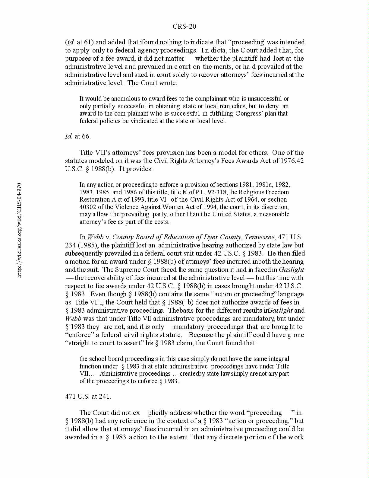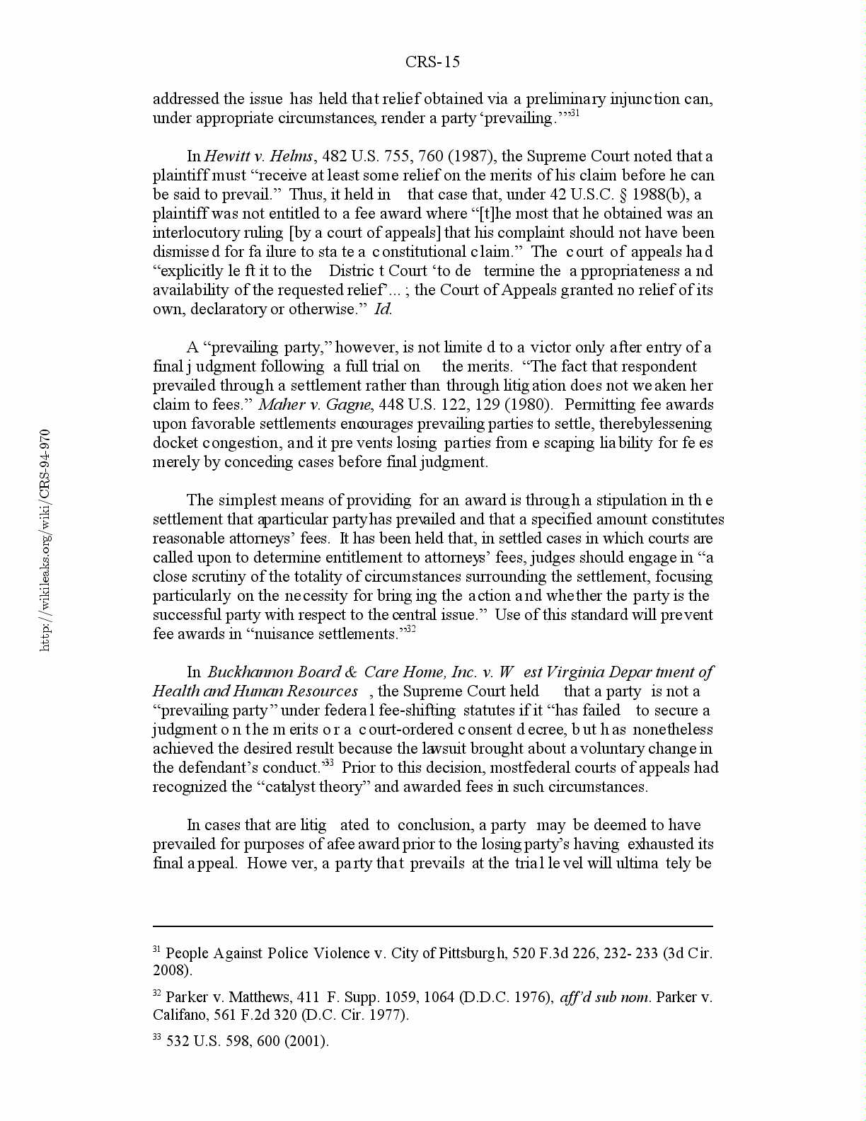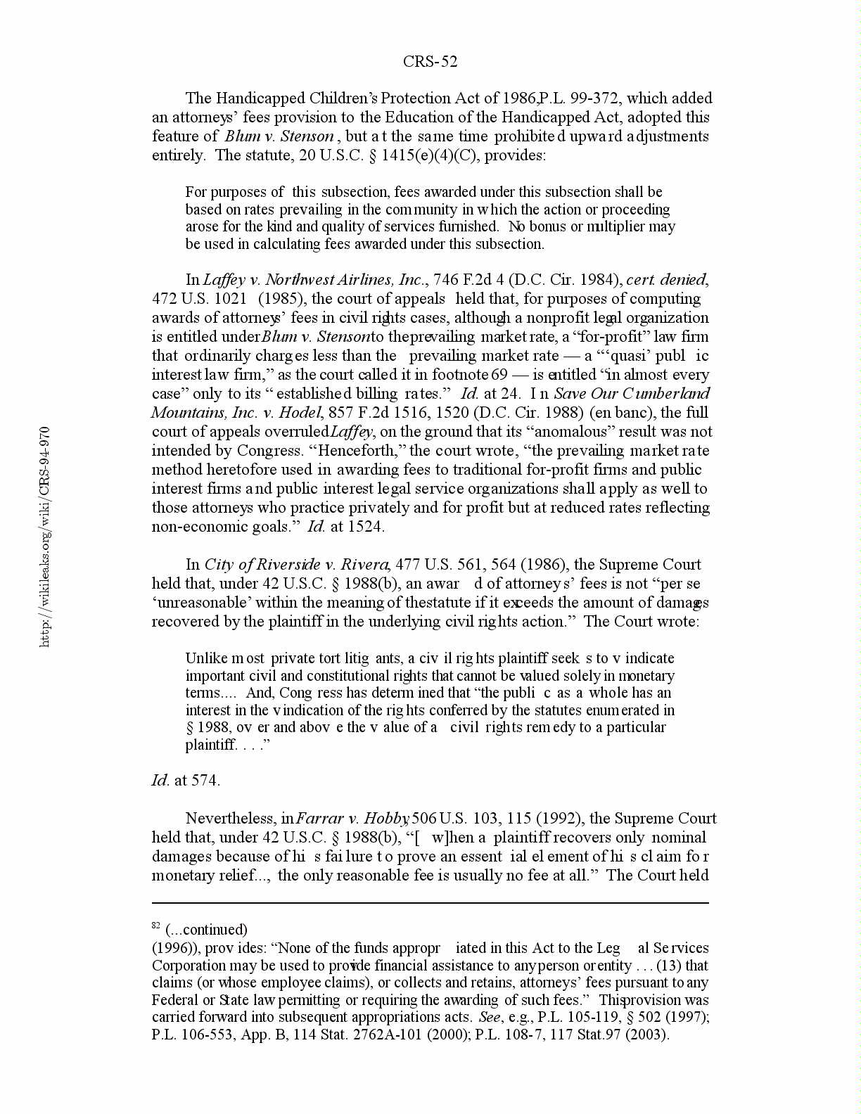 Civil Rights Attorney’s Fees Awards Act of 1976...................33