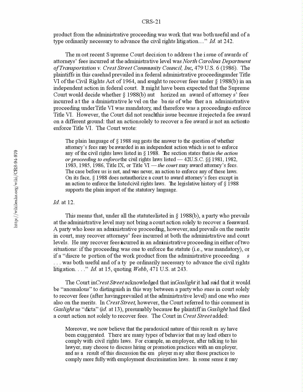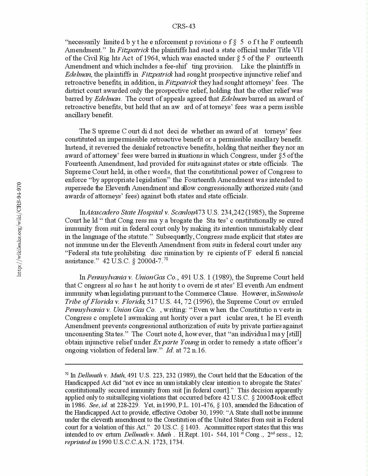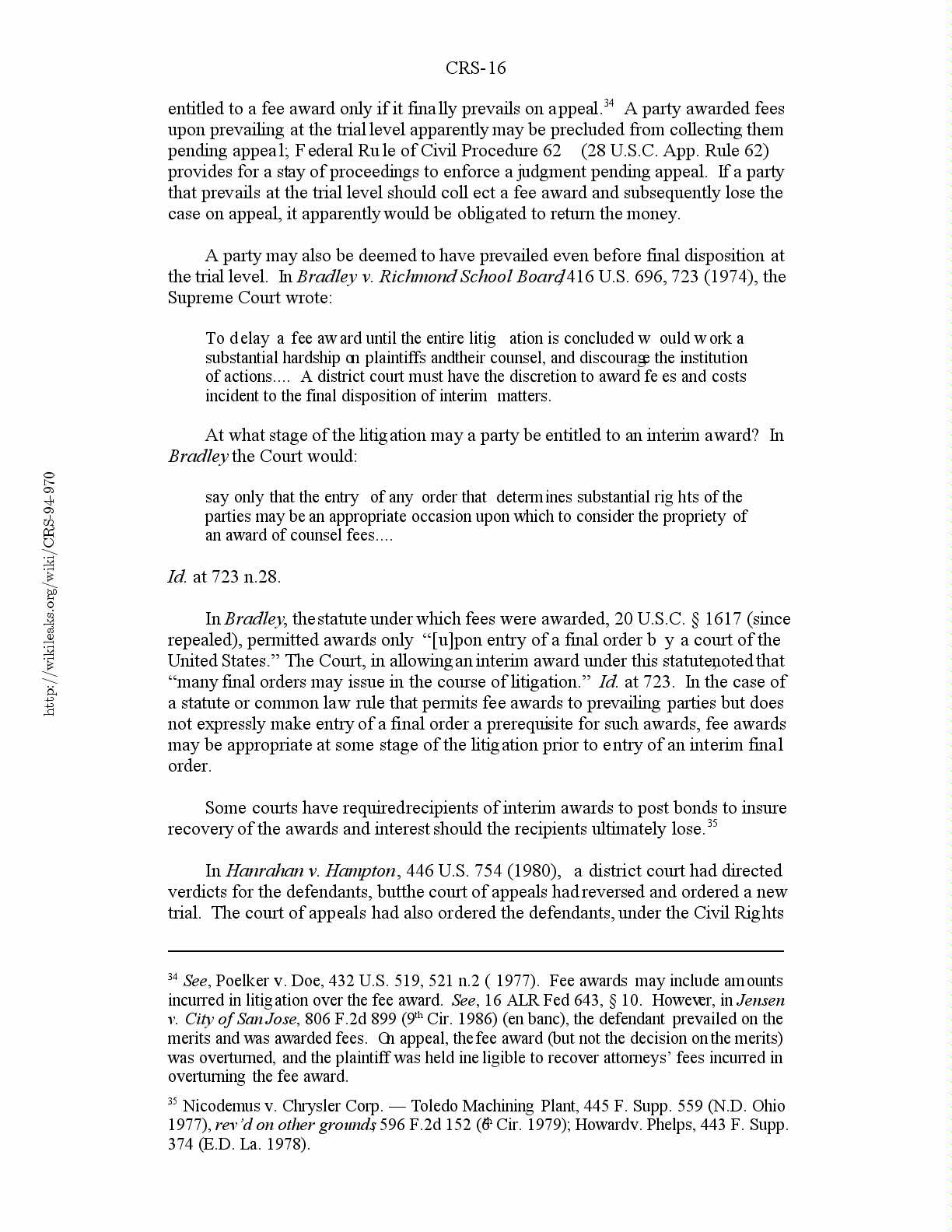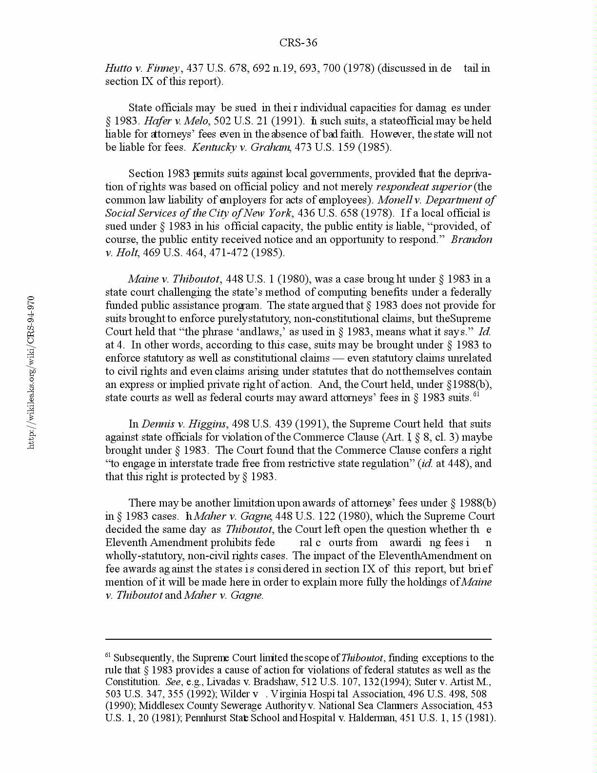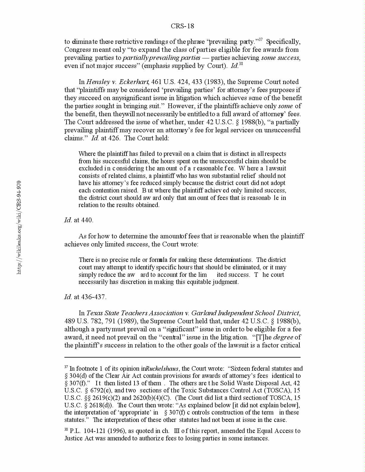Civil Rights Attorney’s Fees Awards Act of 1976...................33