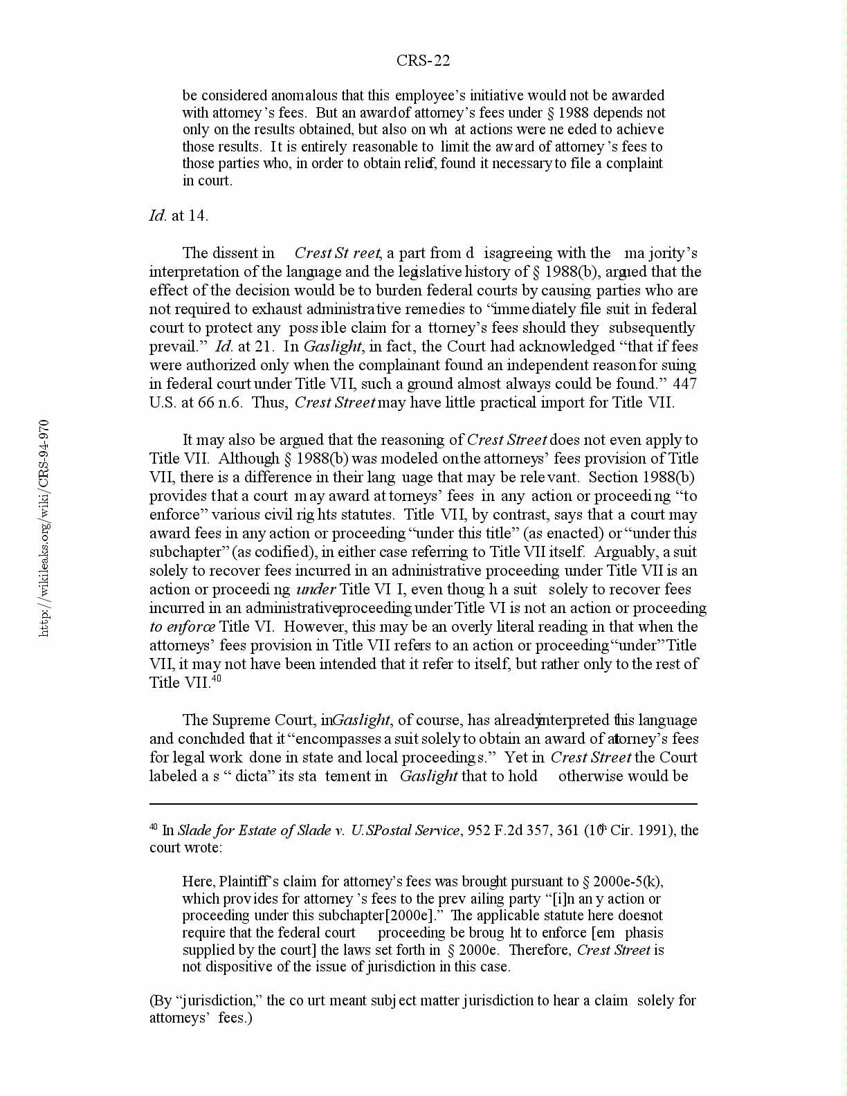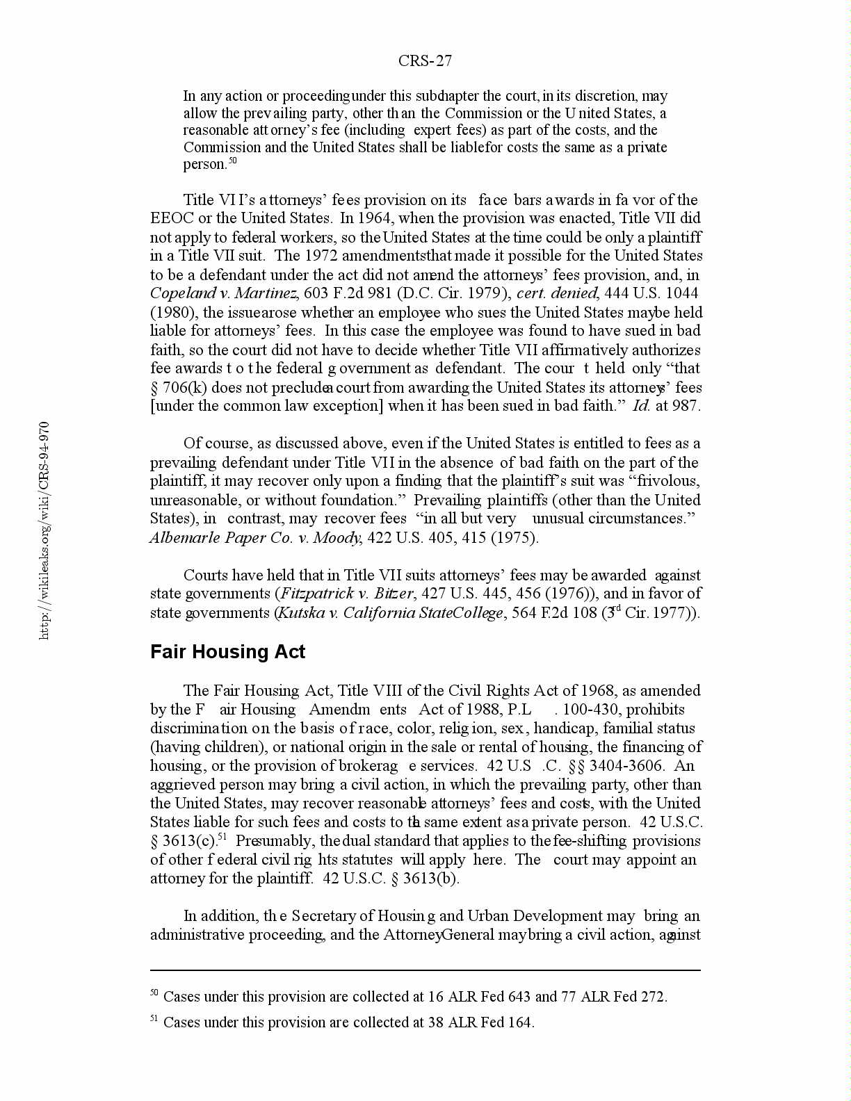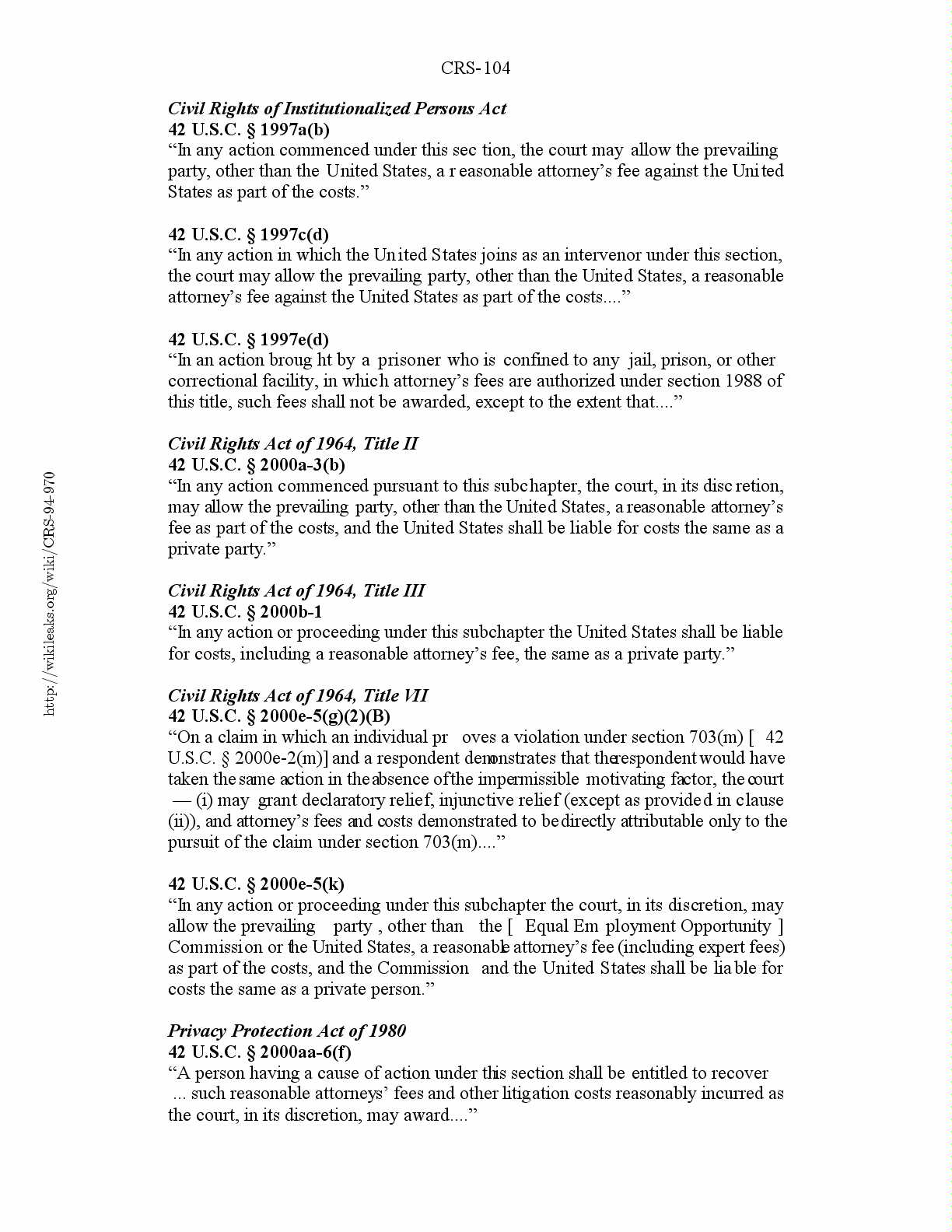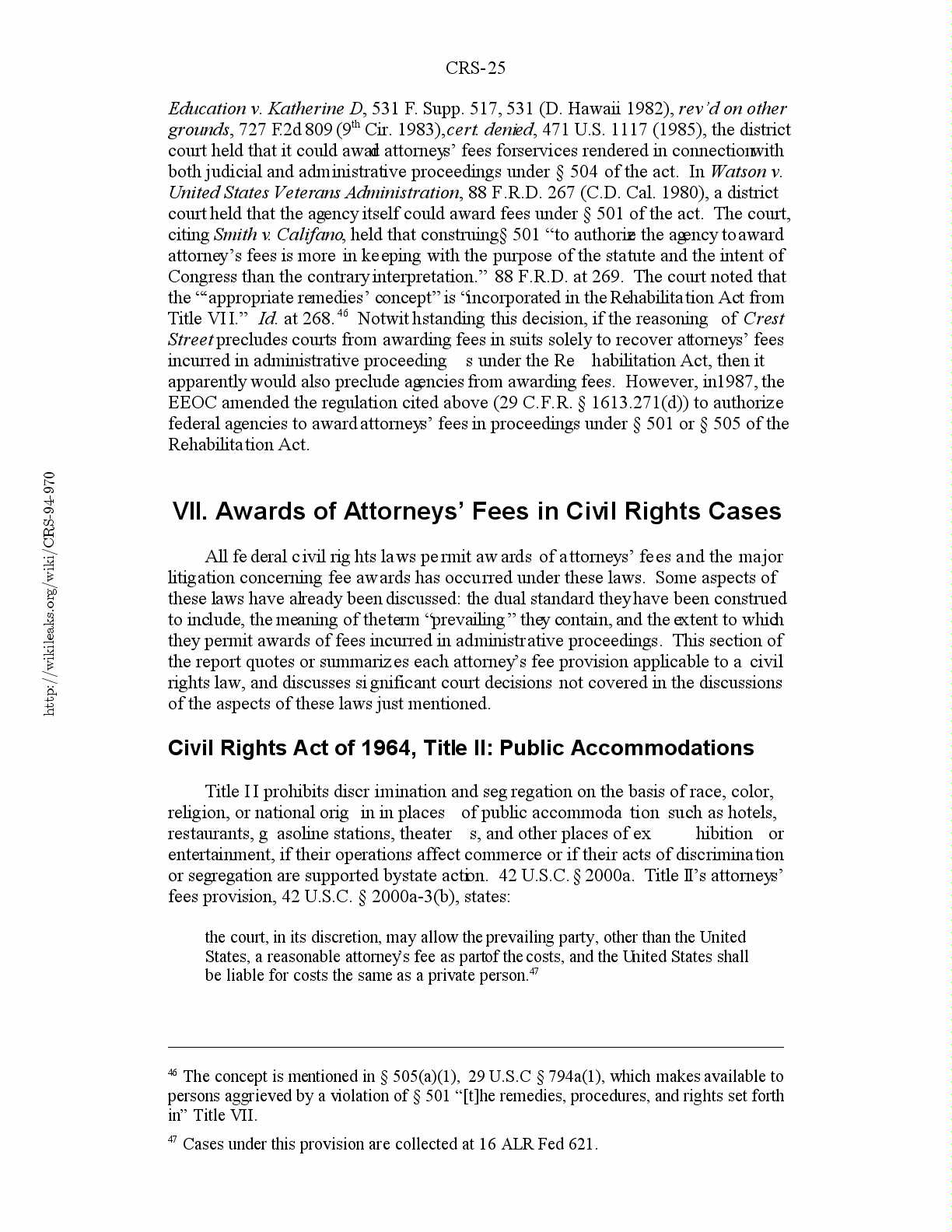 VII. Awards of Attorneys’ Fees in Civil Rights Cases....................25