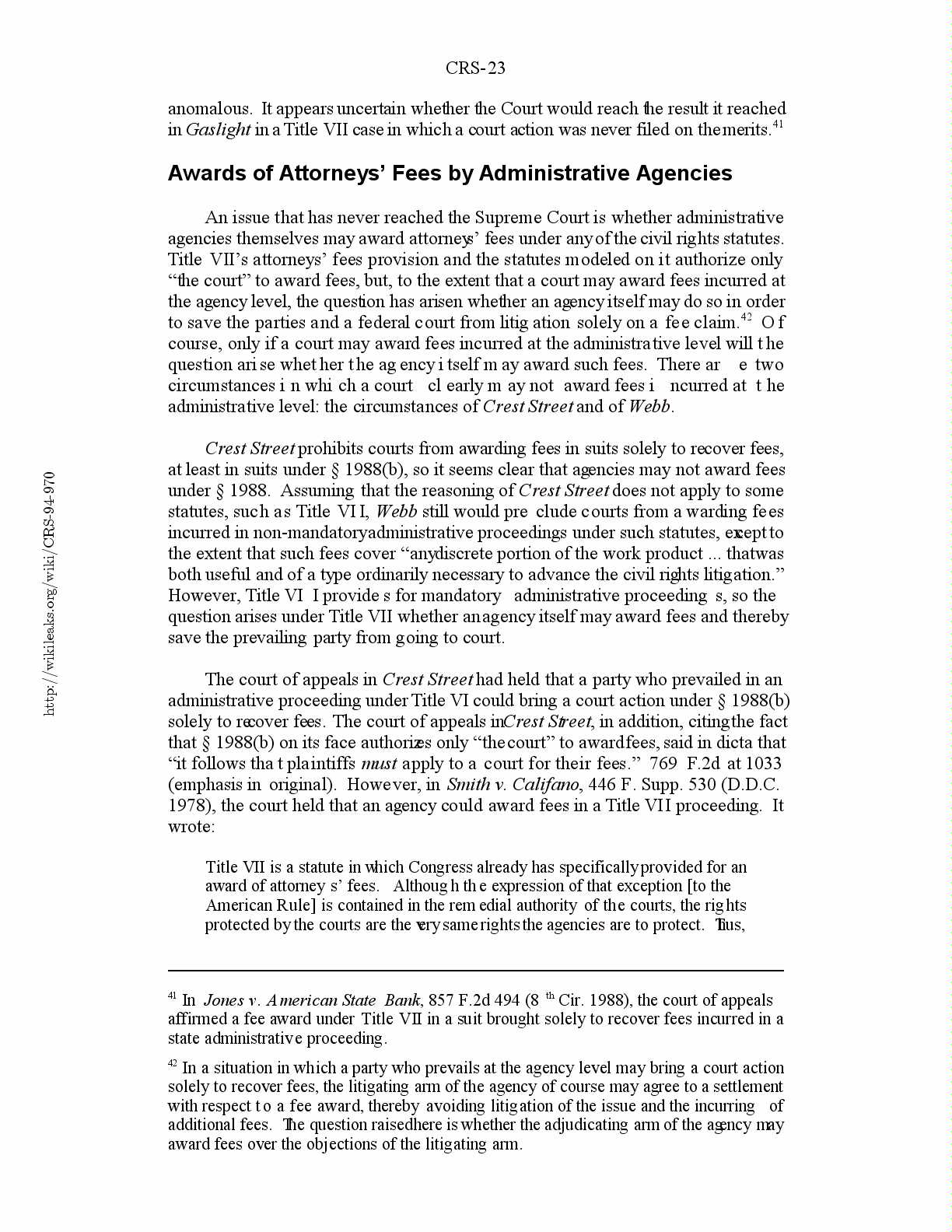 Awards of Attorneys’ Fees by Administrative Agencies...............23