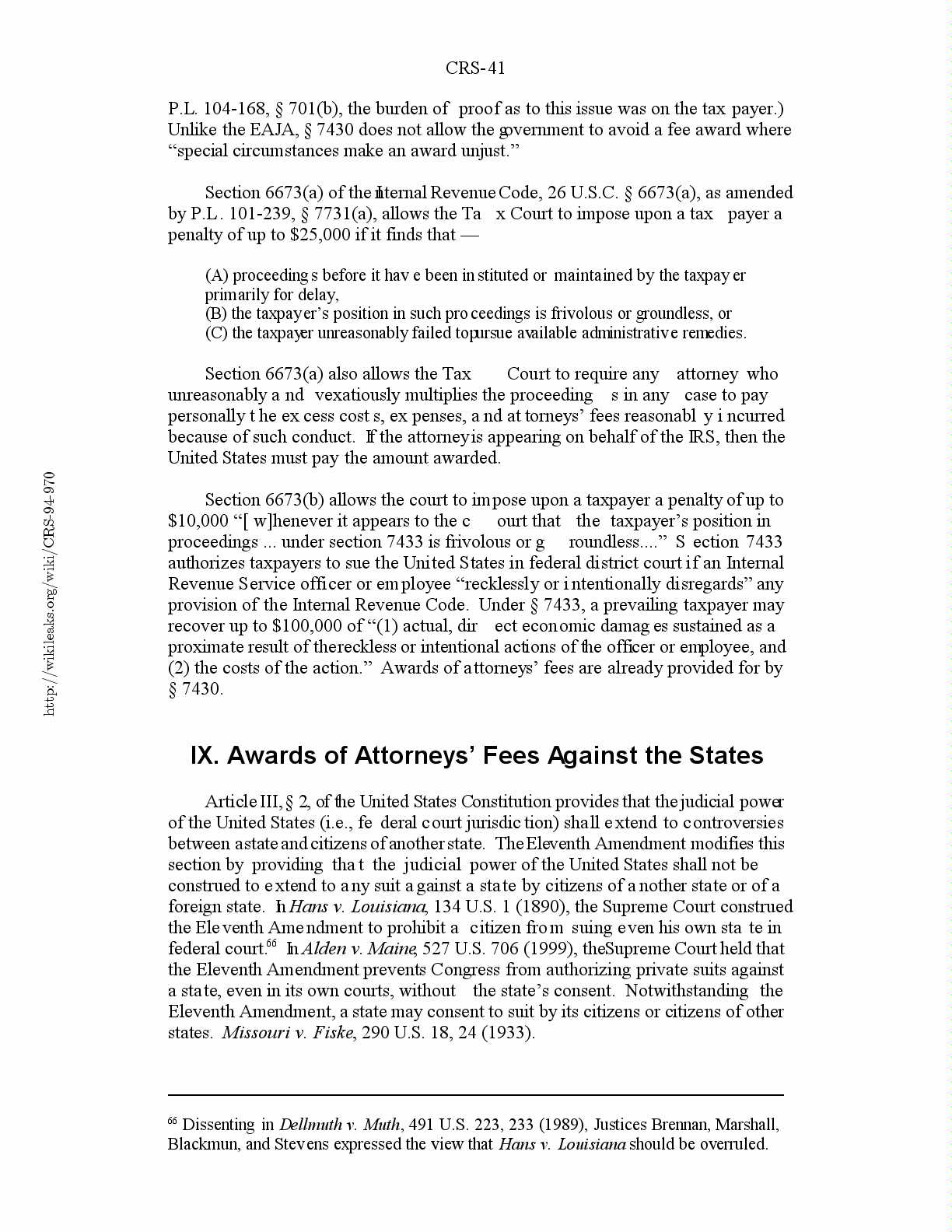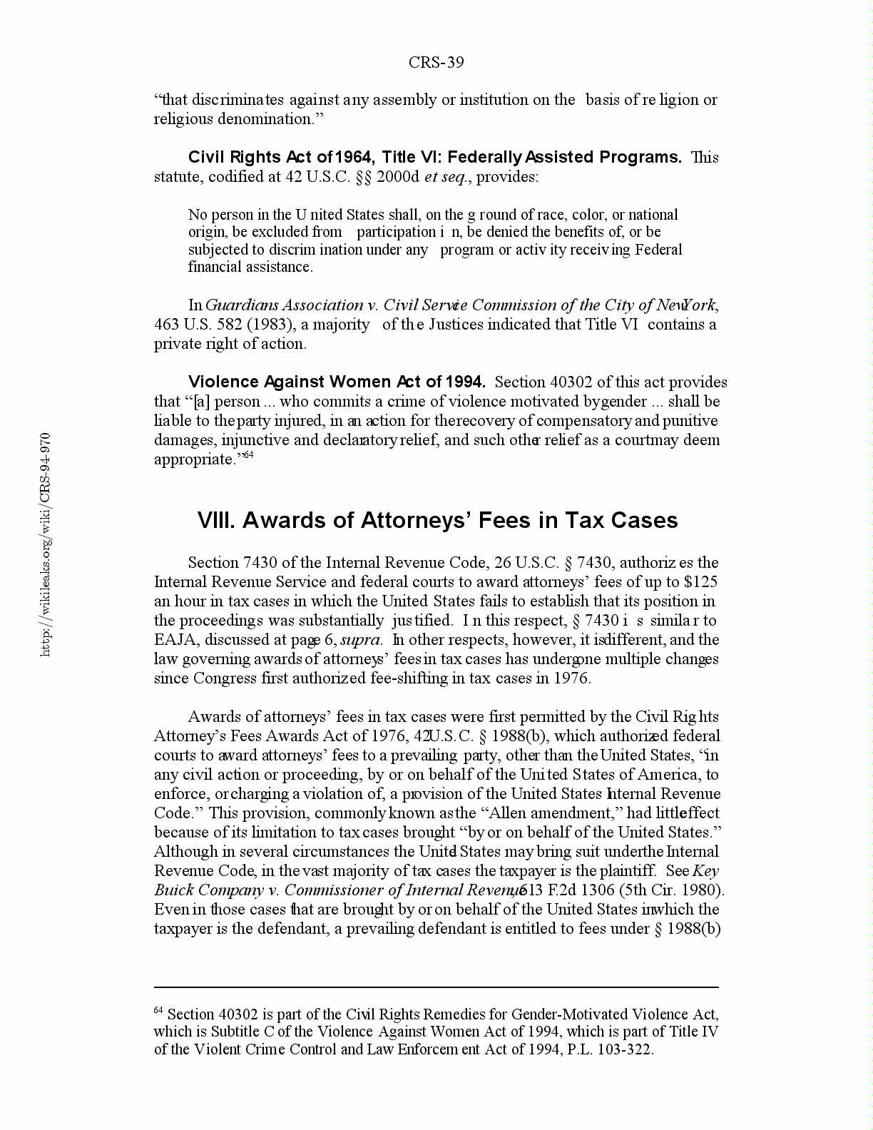 VIII. Awards of Attorneys’ Fees in Tax Cases..........................39