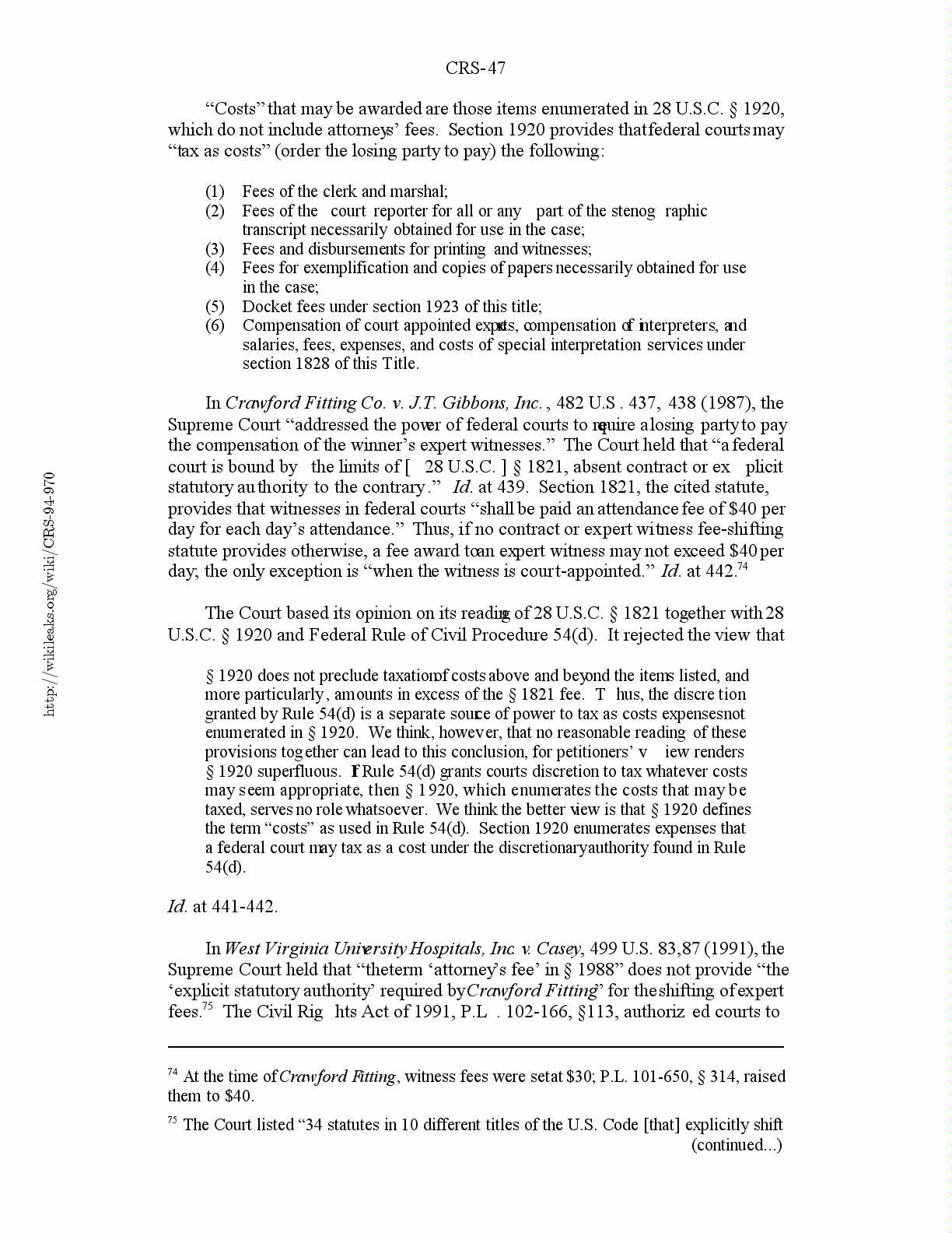 costs other than attorneys’ fees in federal courts, how courts compute the amount of