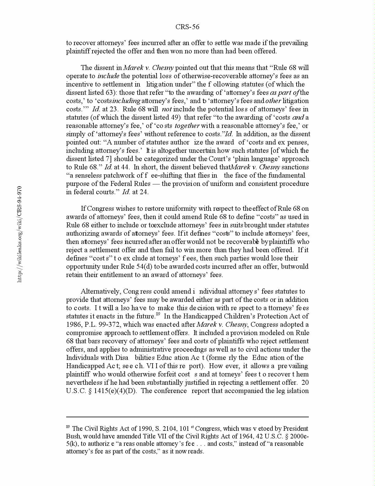 the Administration of Justice. Rules Enabling Act of 1985 [Rule 68 of the