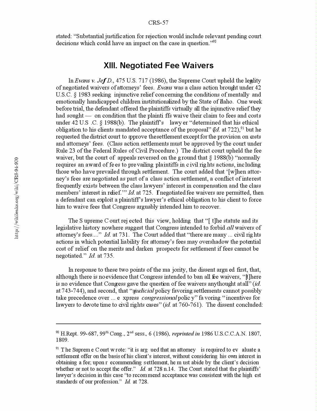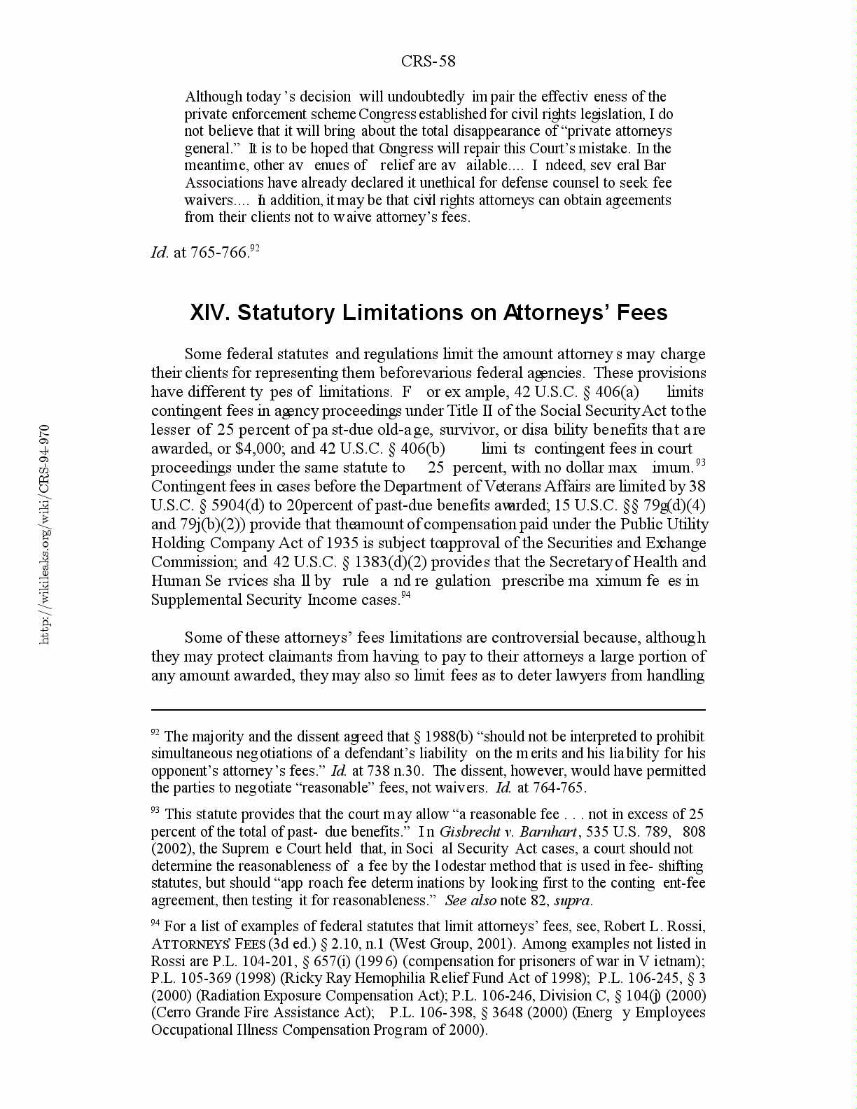 XIV. Statutory Limitations on Attorneys’ Fees..........................58