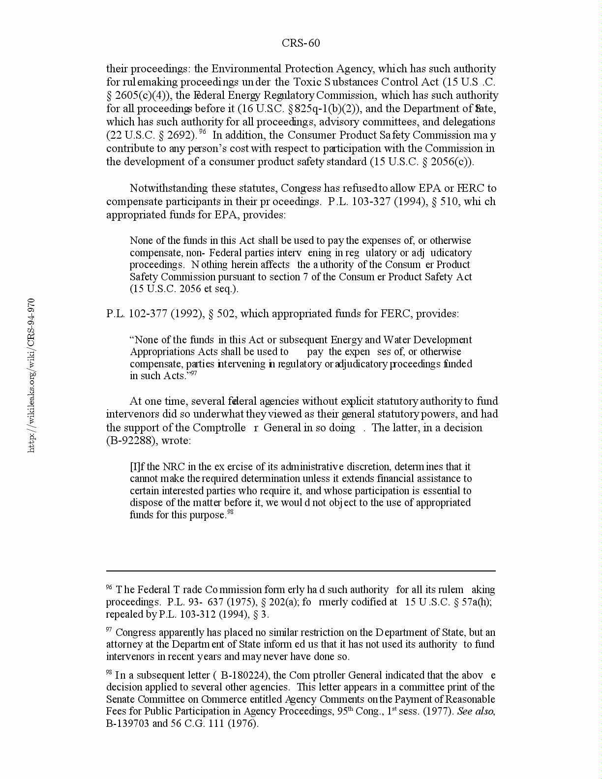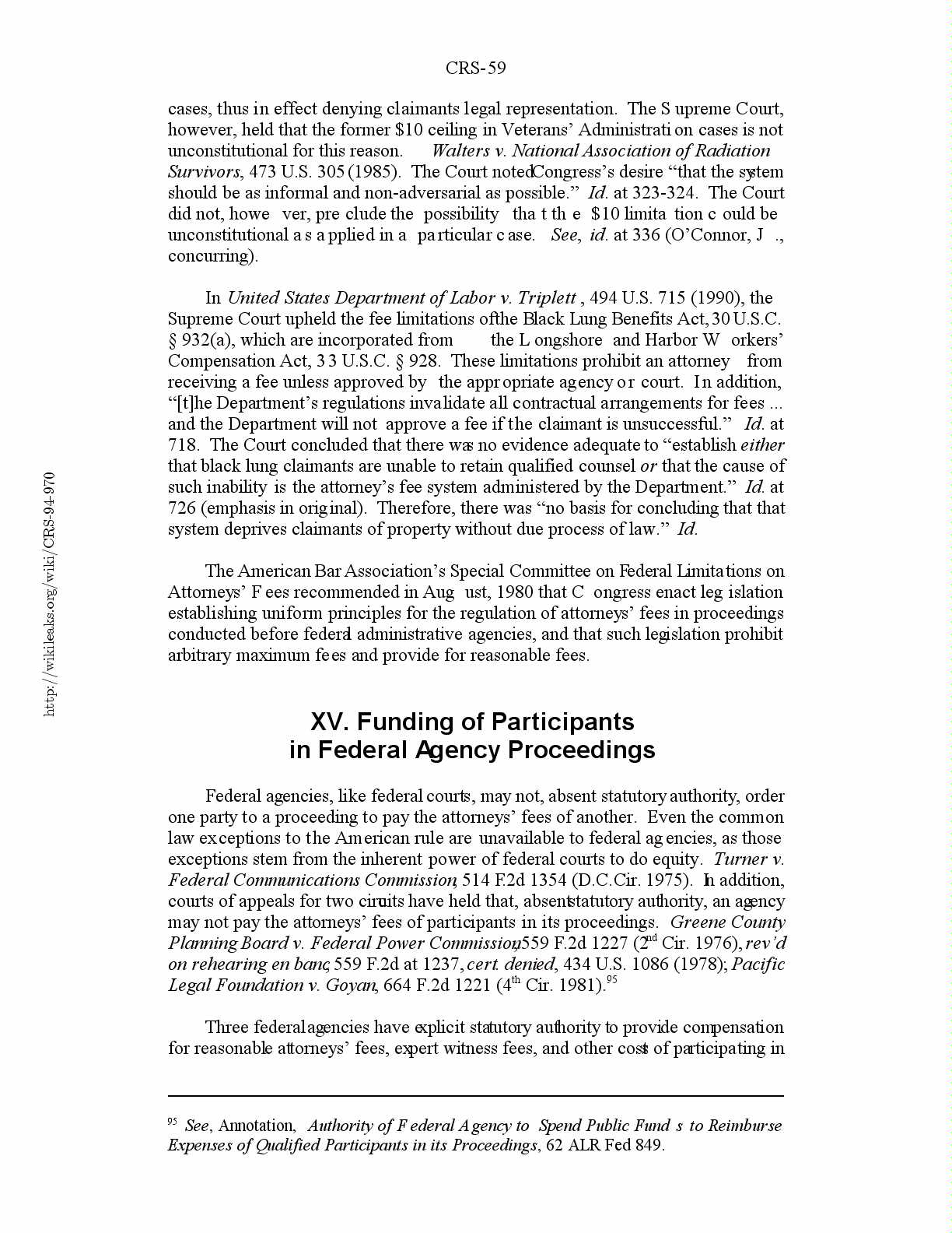 XV. Funding of Participants in Federal Agency Proceedings ...............59