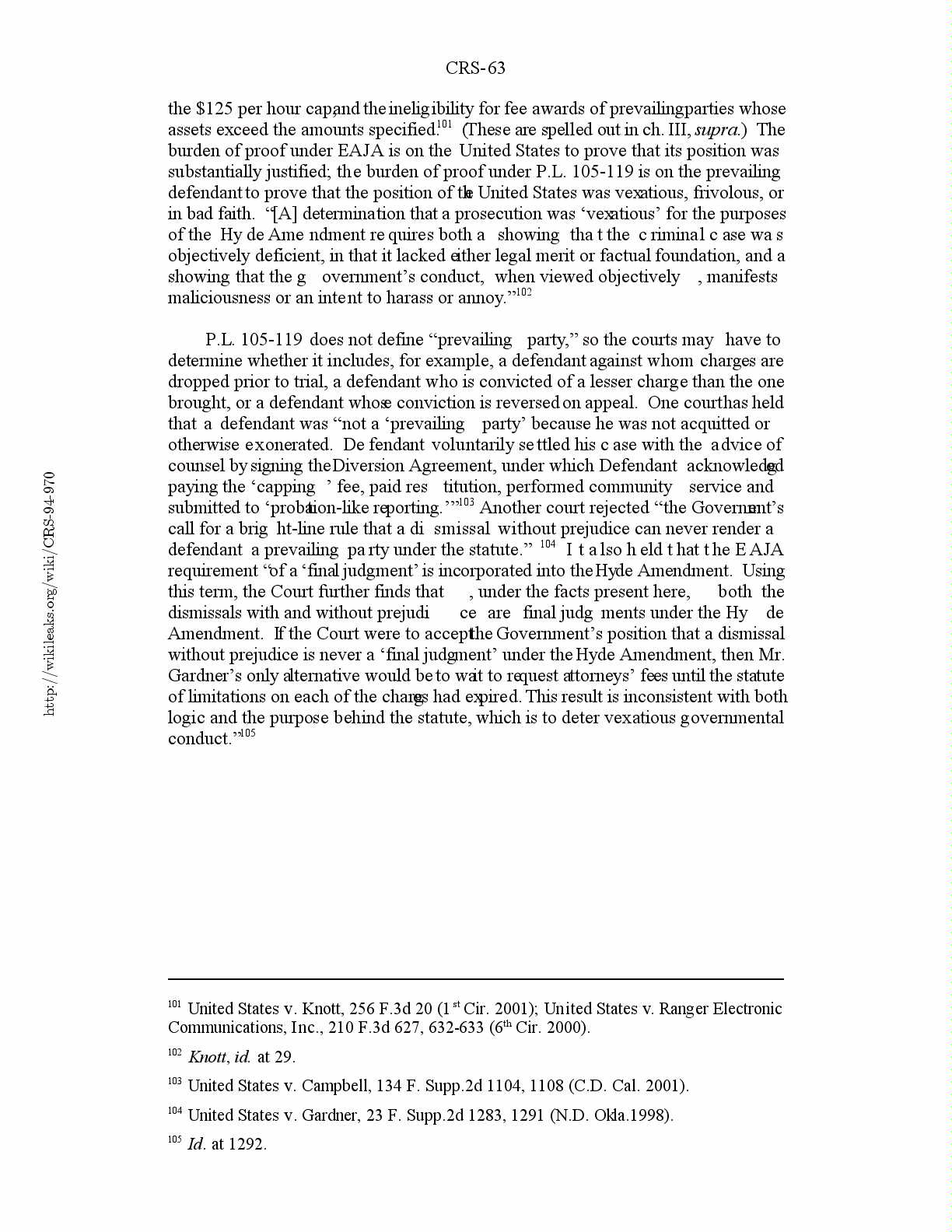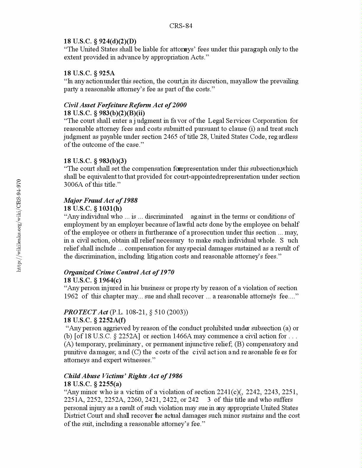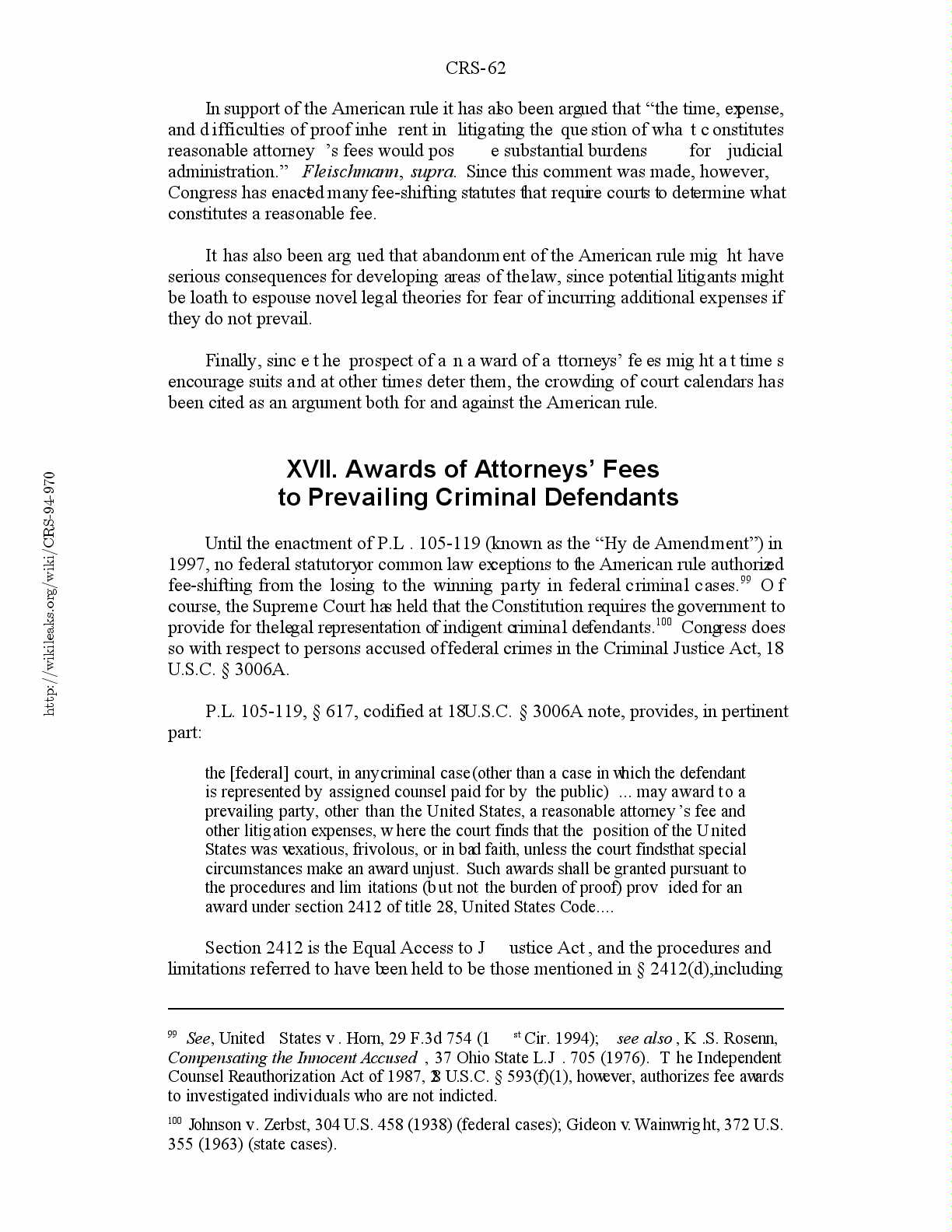 XVII. Awards of Attorneys’ Fees to Prevailing Criminal Defendants........62