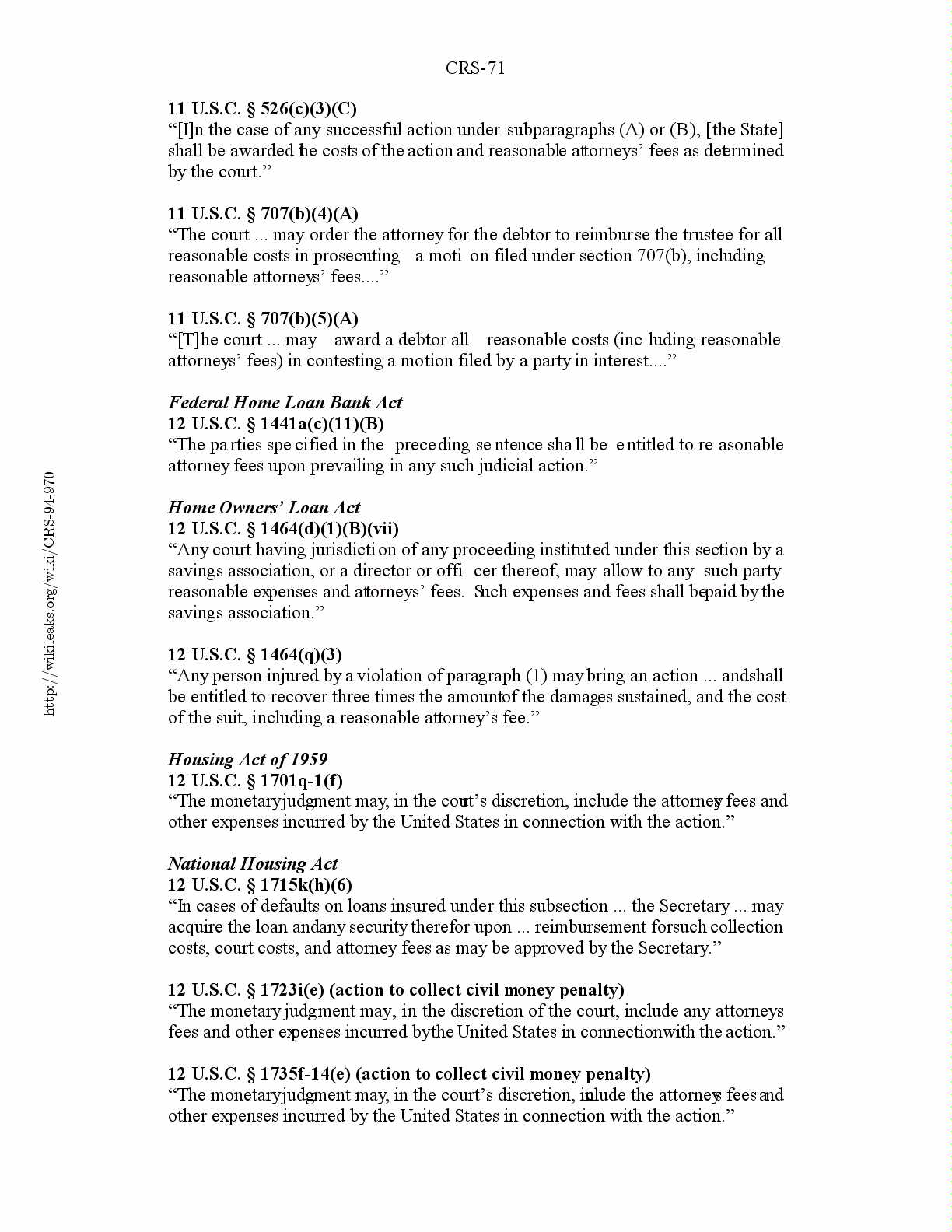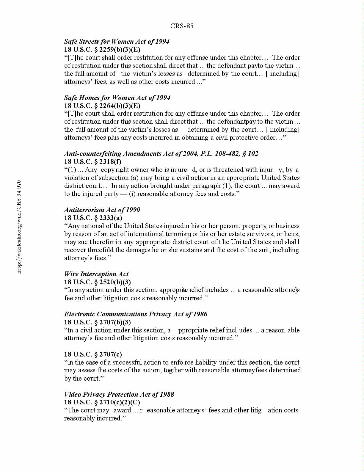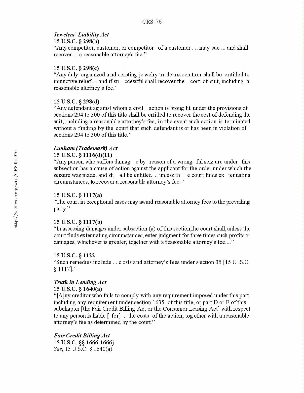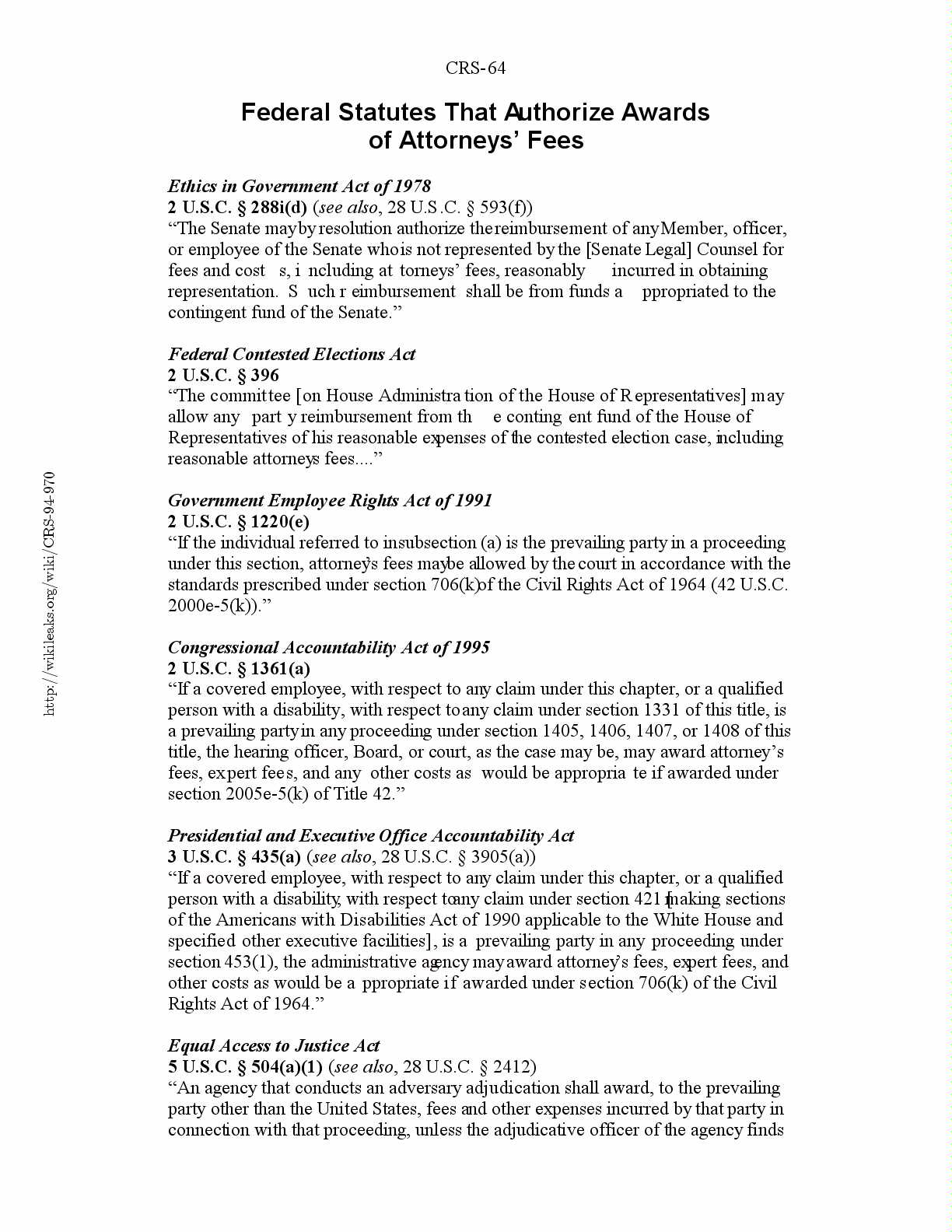 Federal Statutes That Authorize Awards of Attorneys’ Fees ...............64