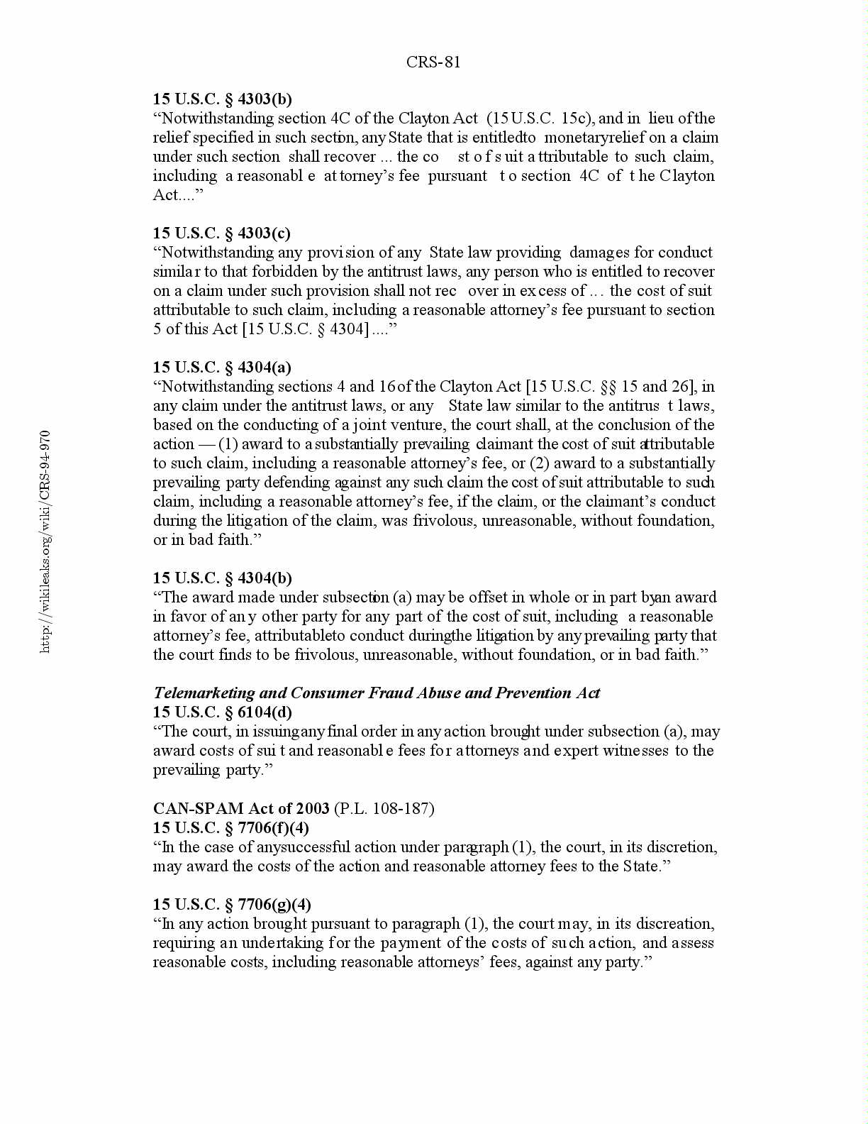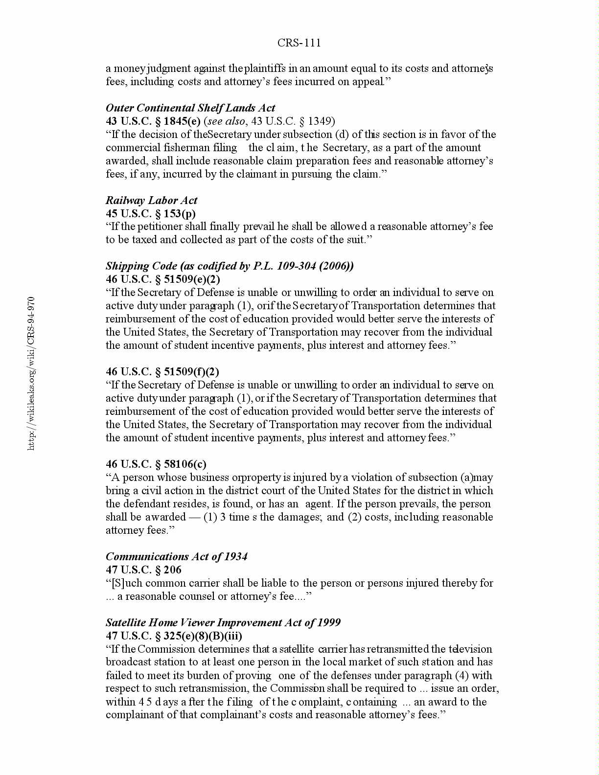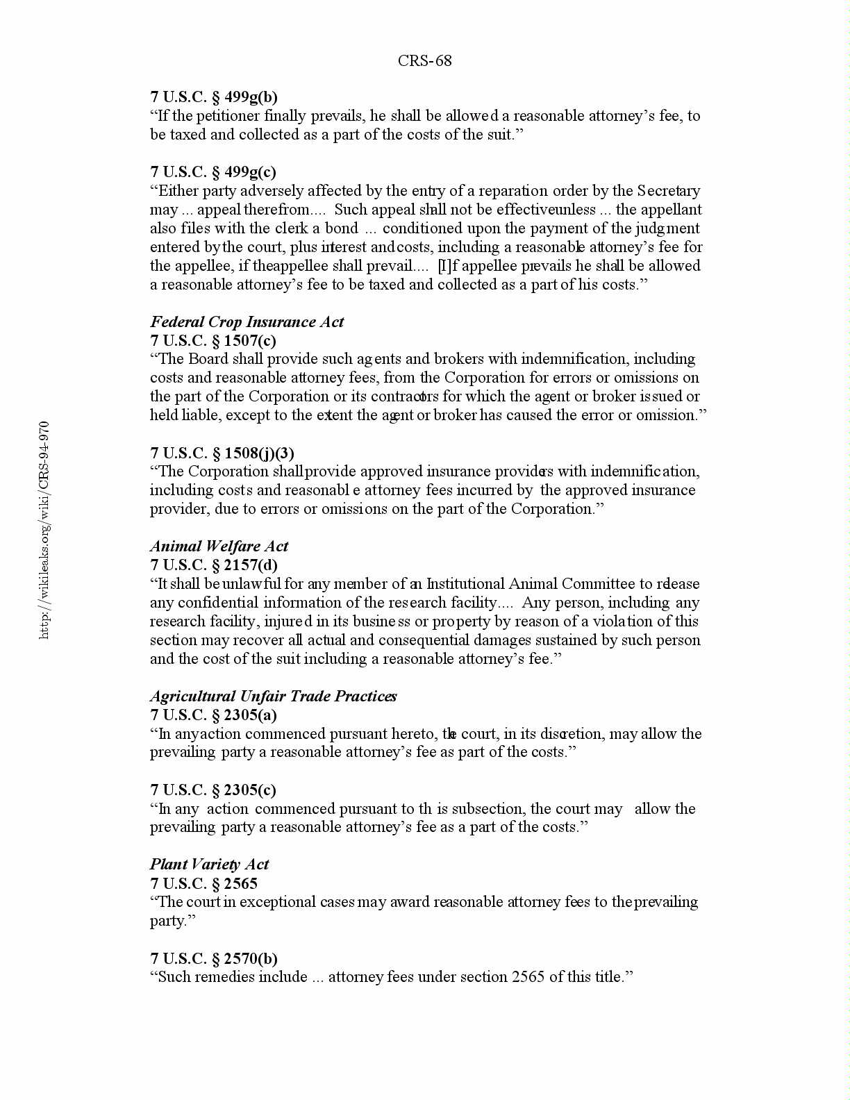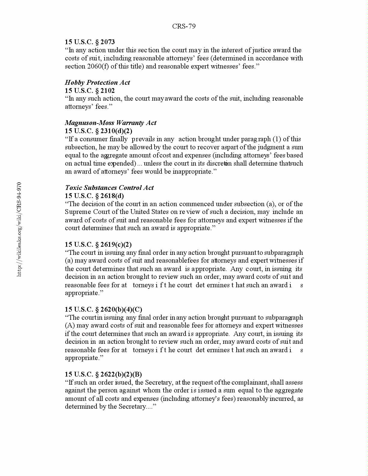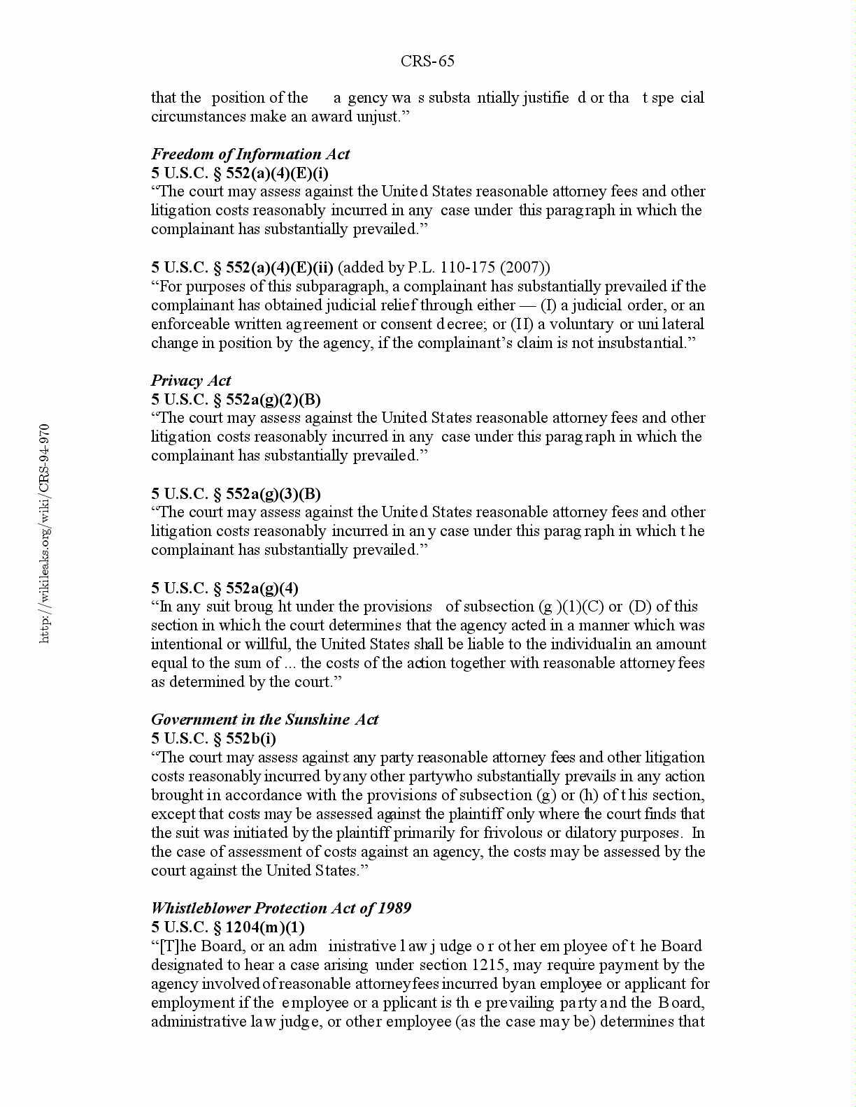 Federal Statutes That Authorize Awards of Attorneys’ Fees ...............64