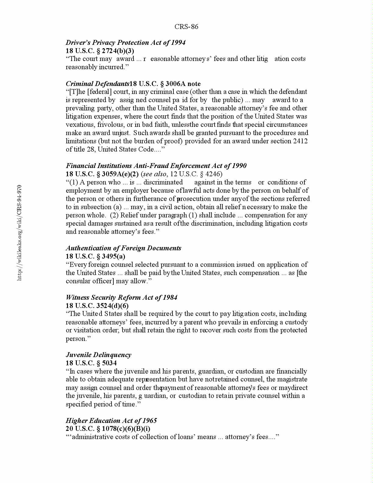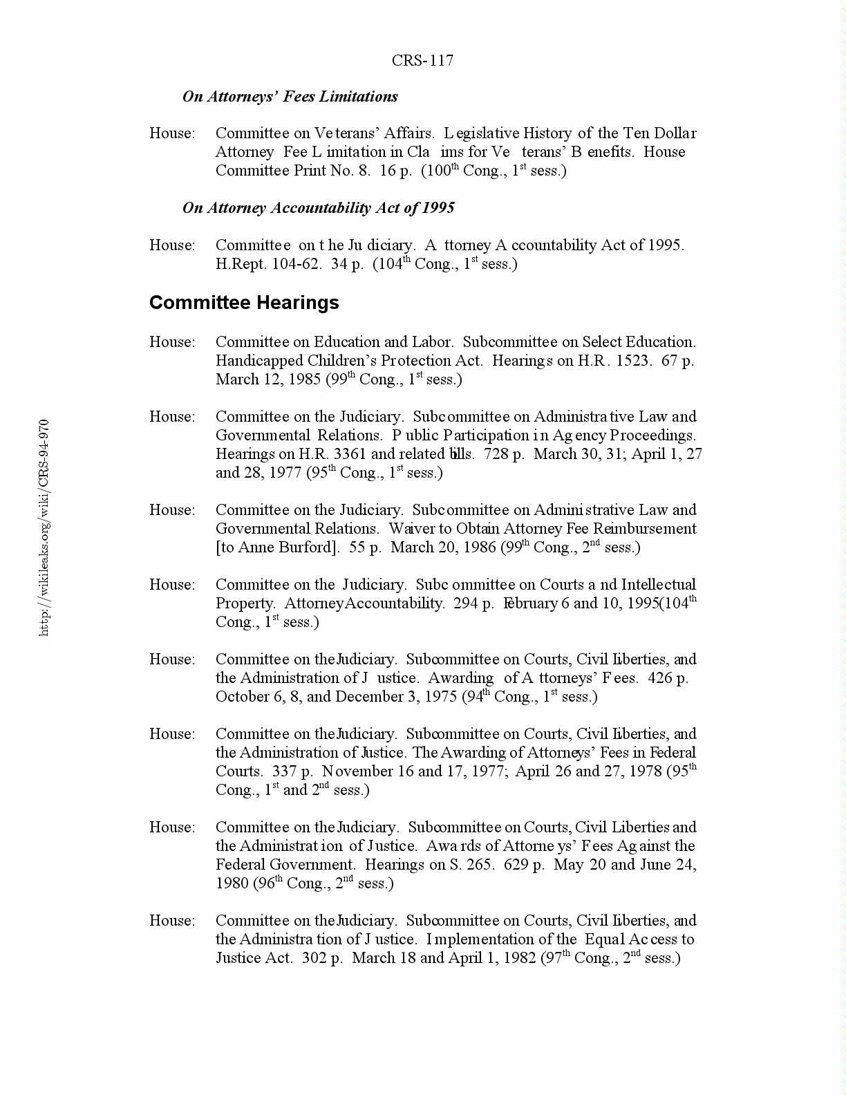 Measures. Description of Laws and Bills Relating to Awards of Attorney’s