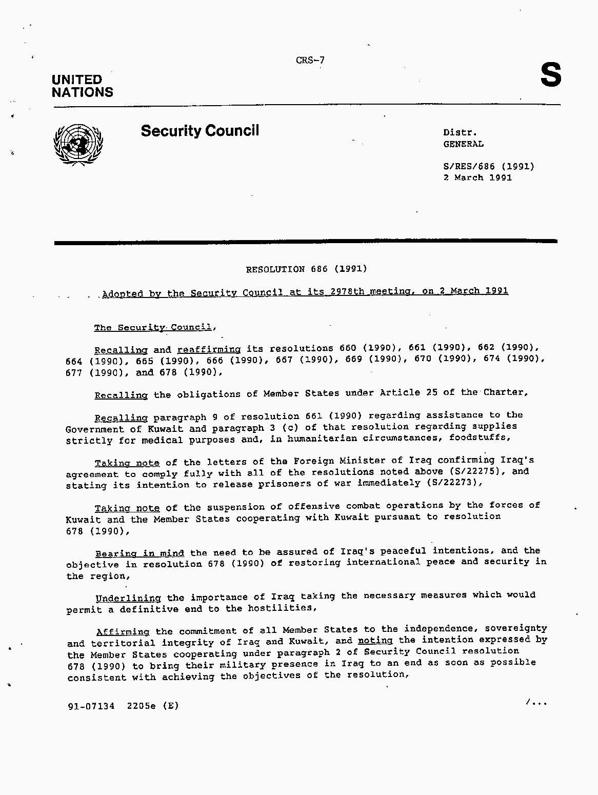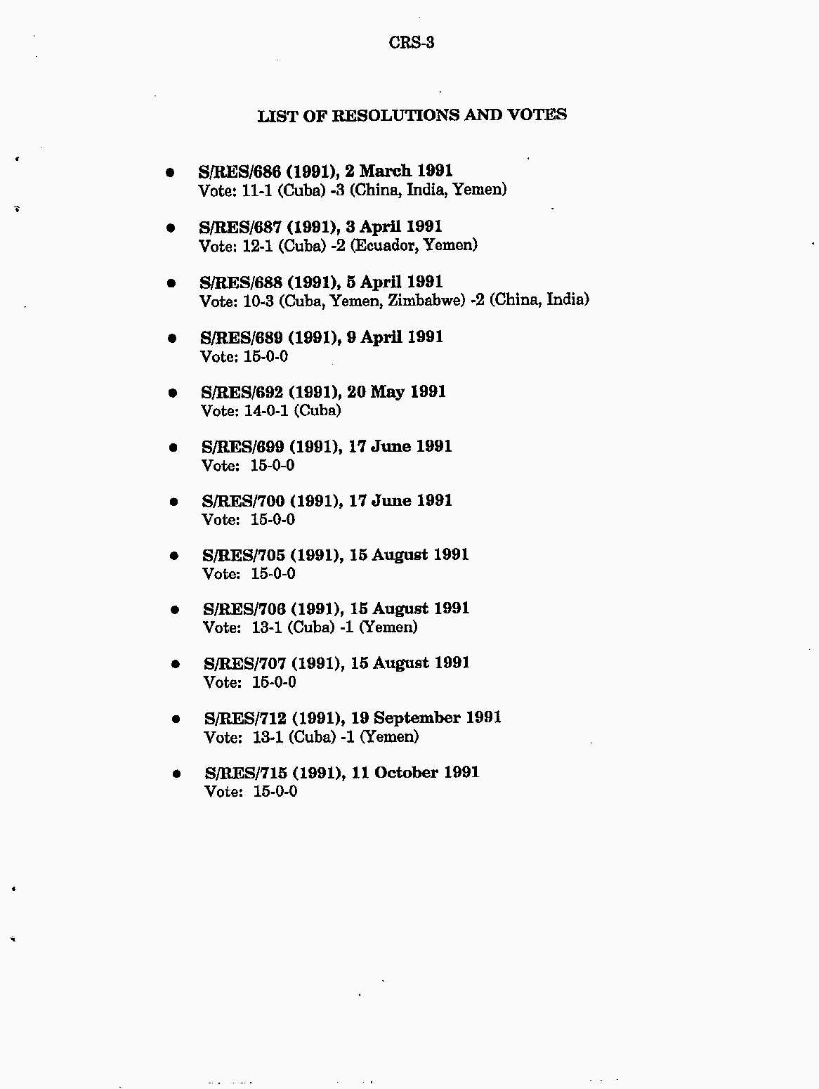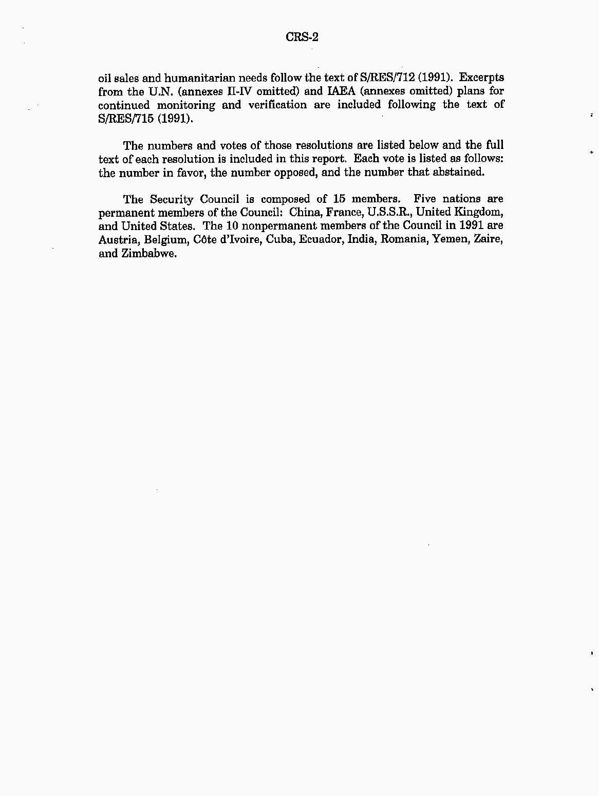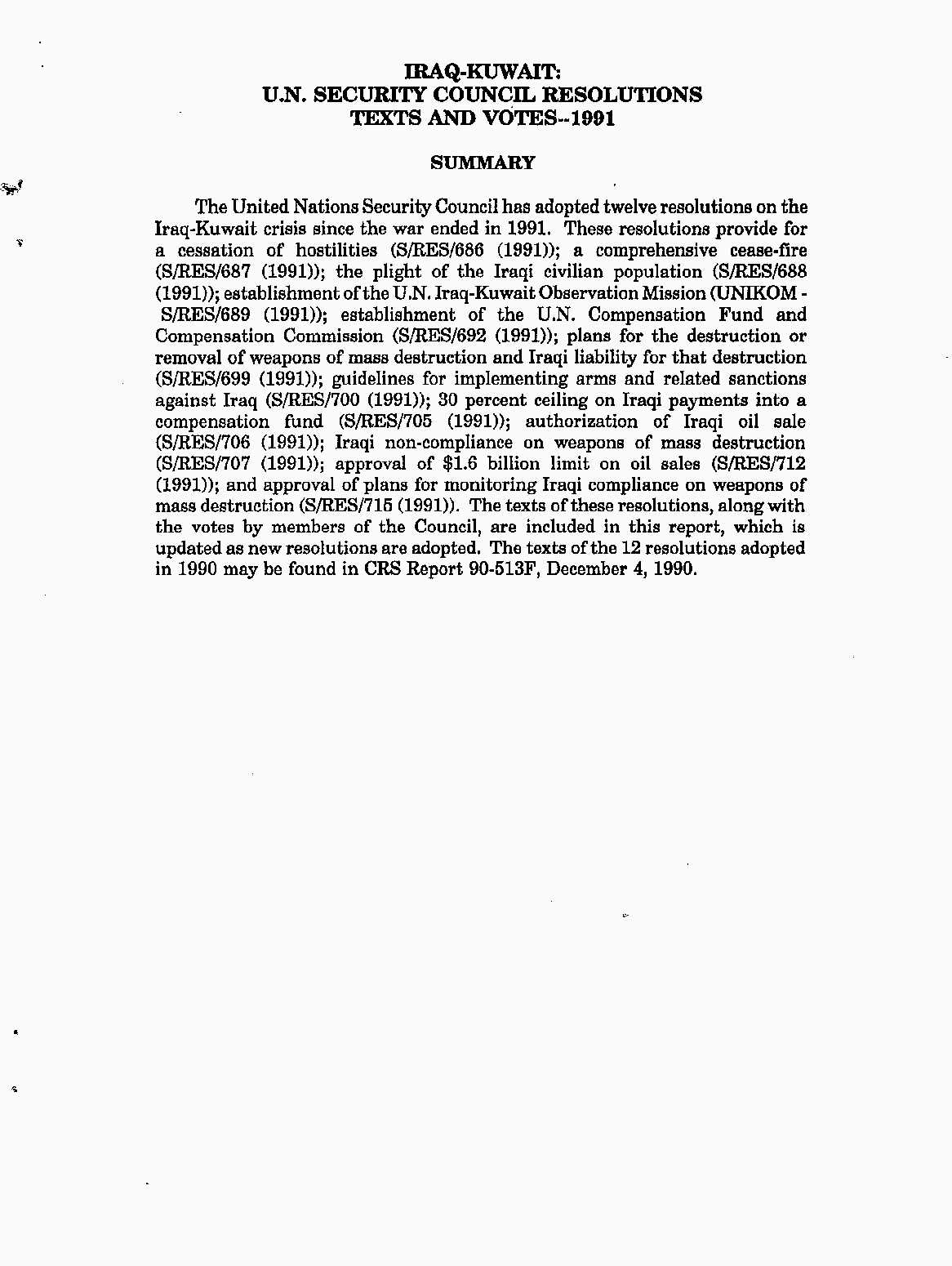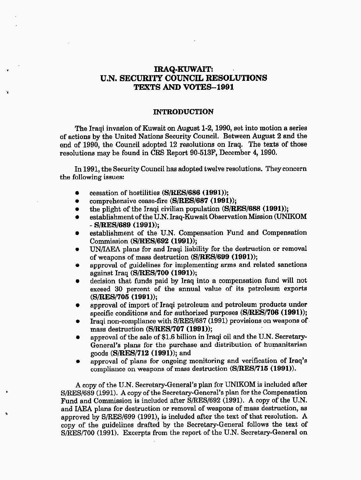 Iraq-Kuwait: United Nations Security Council Resolutions Tests and Votes -- 1991