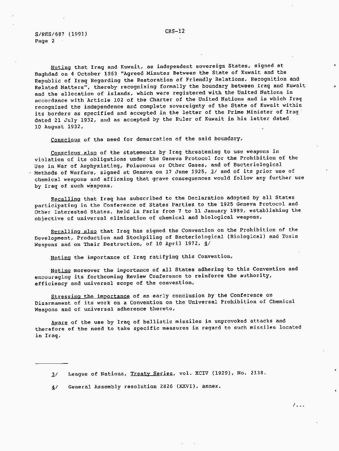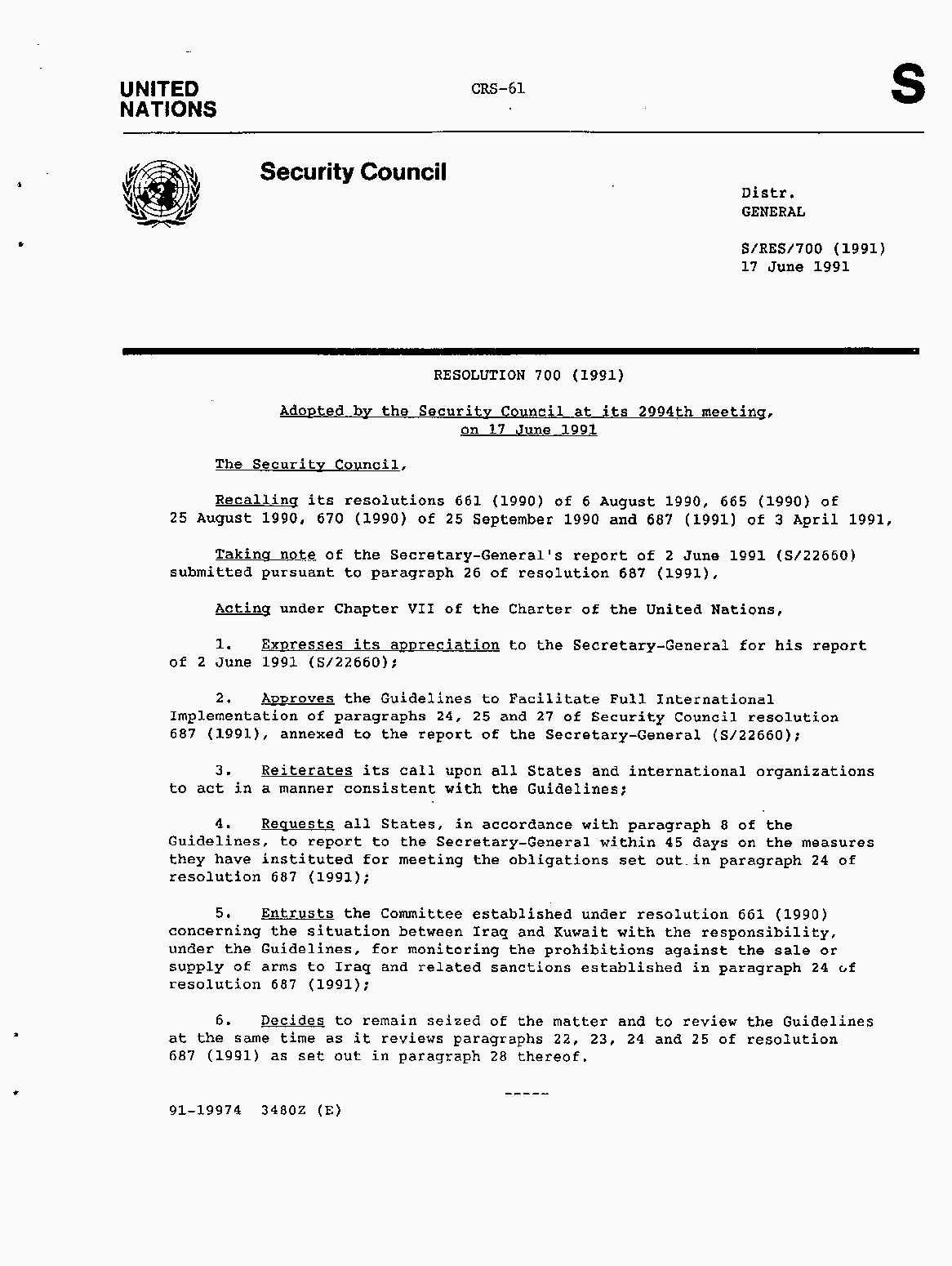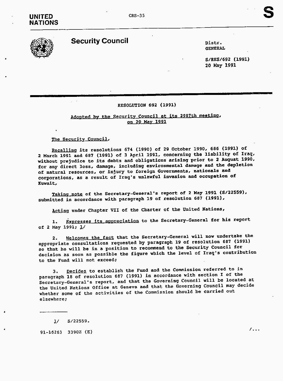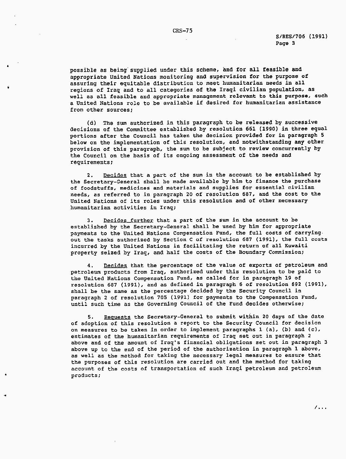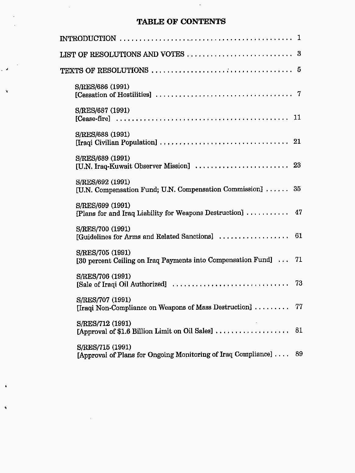Iraq-Kuwait: United Nations Security Council Resolutions Tests and Votes -- 1991