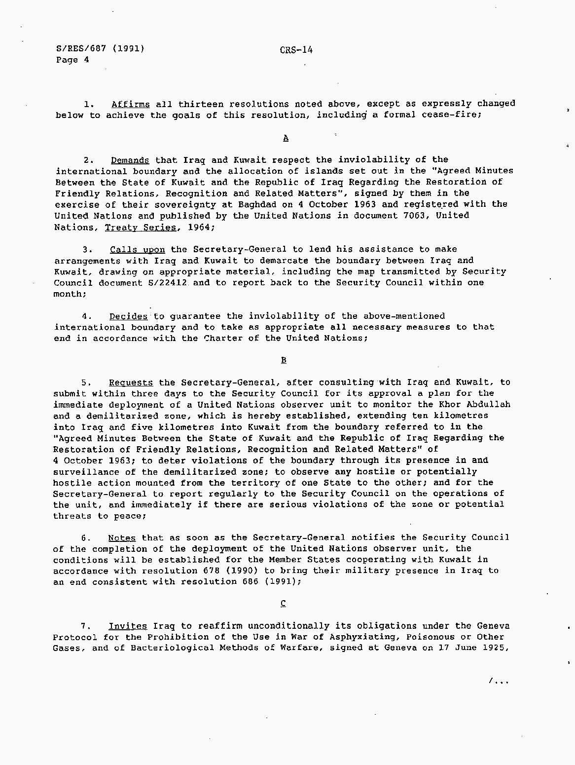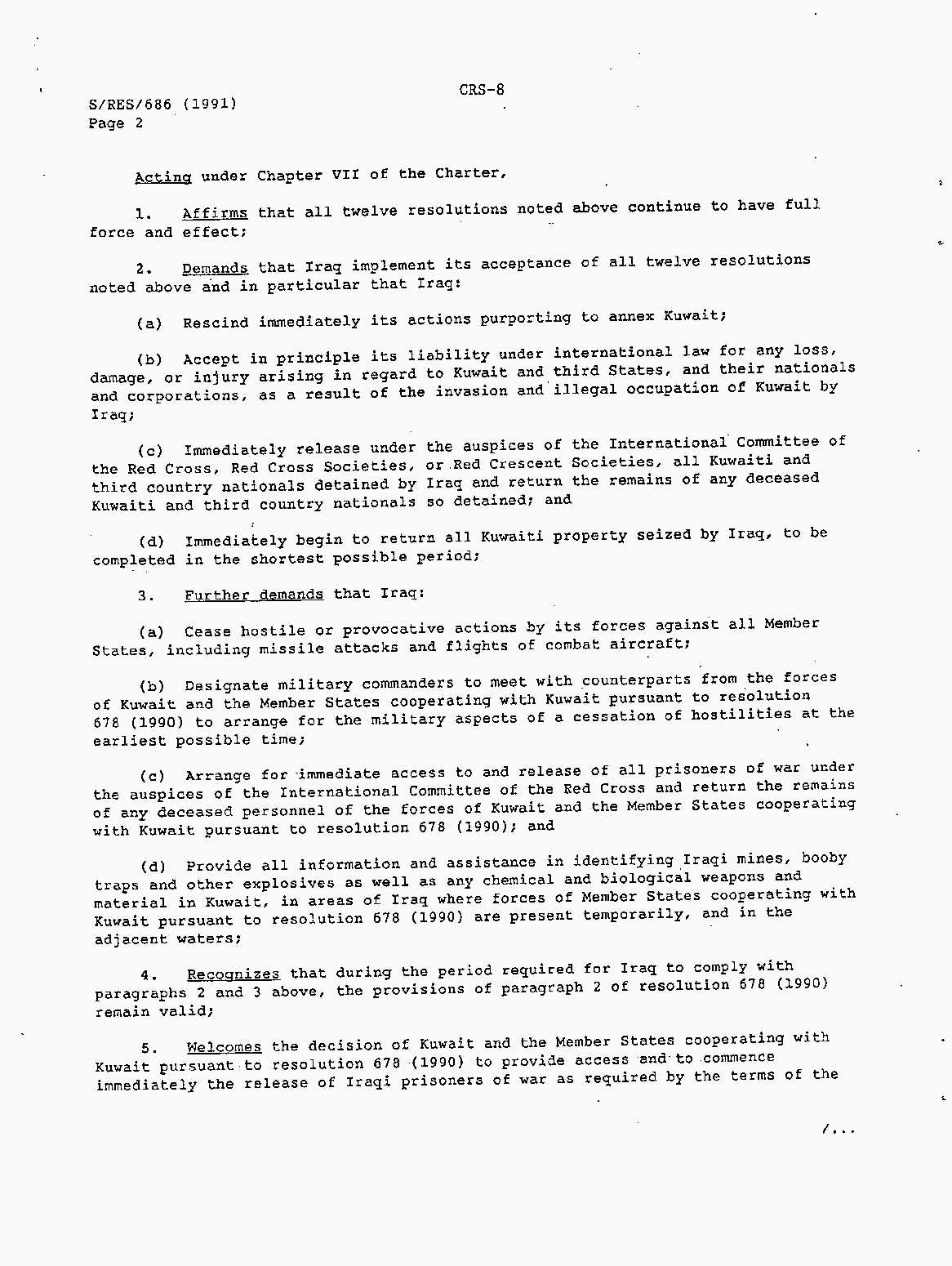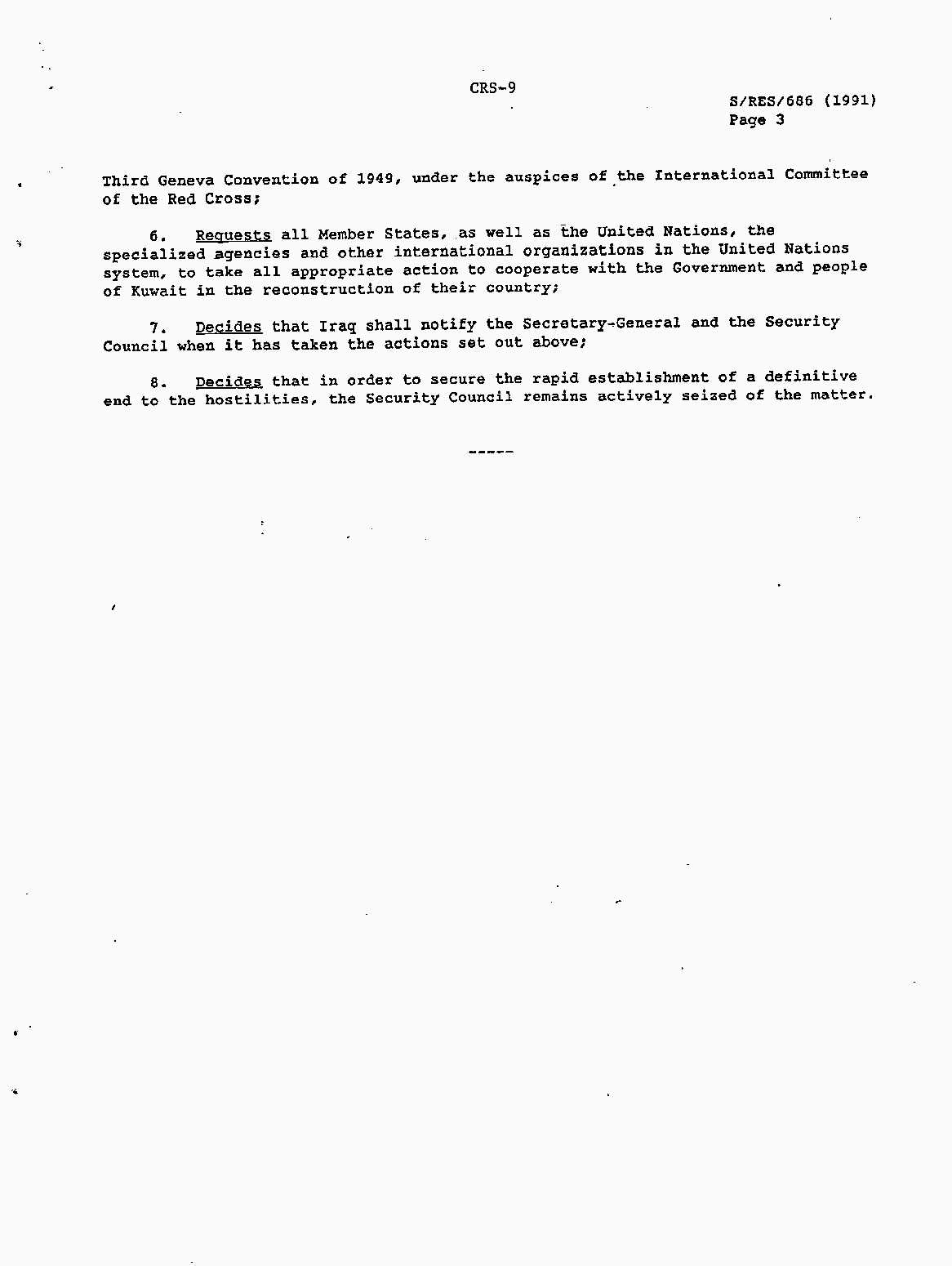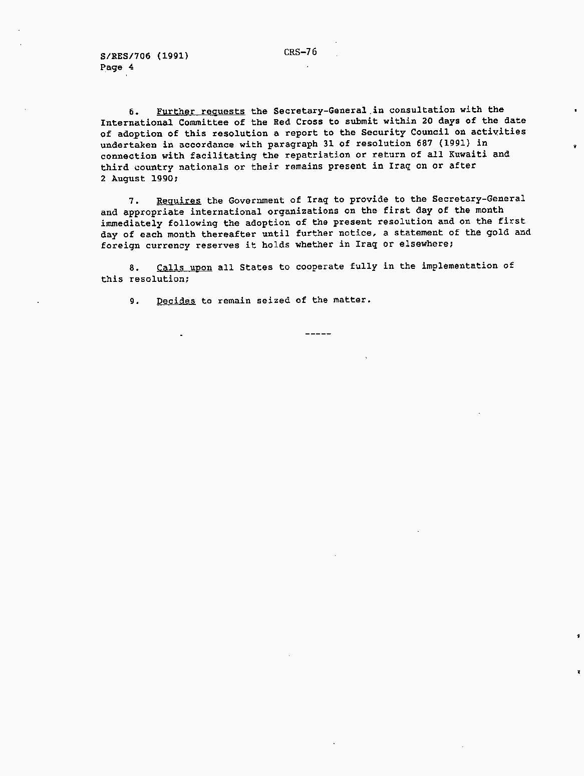 Iraq-Kuwait: United Nations Security Council Resolutions Tests and Votes -- 1991
