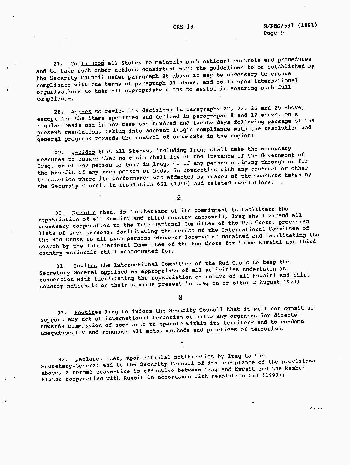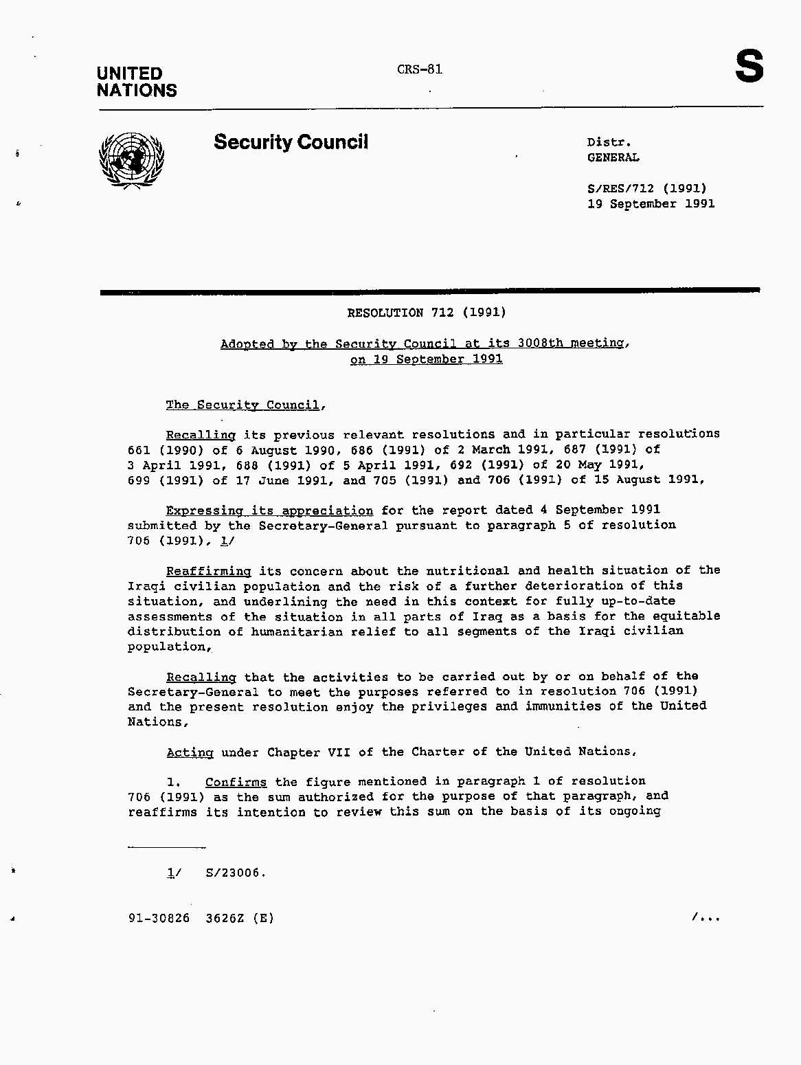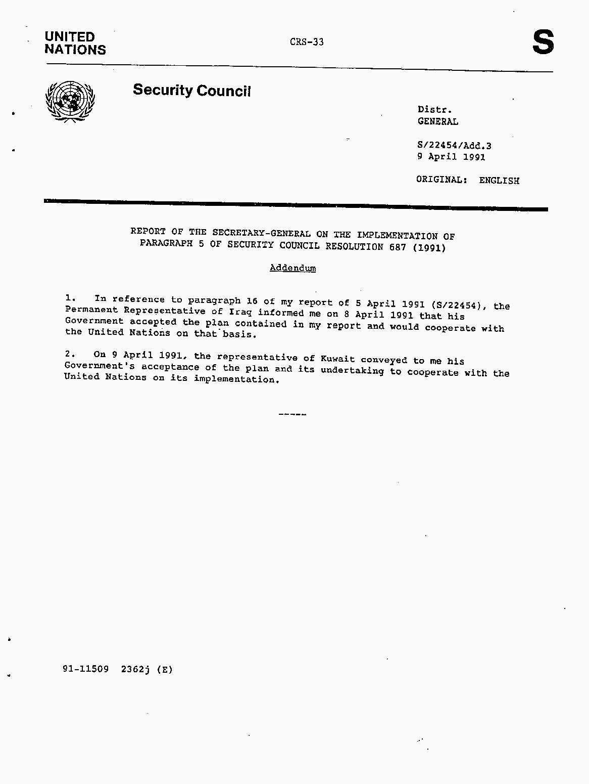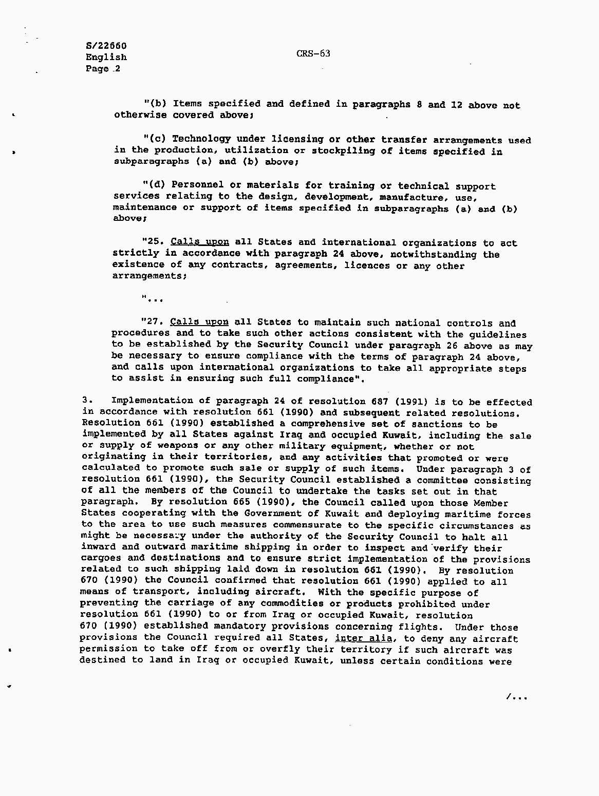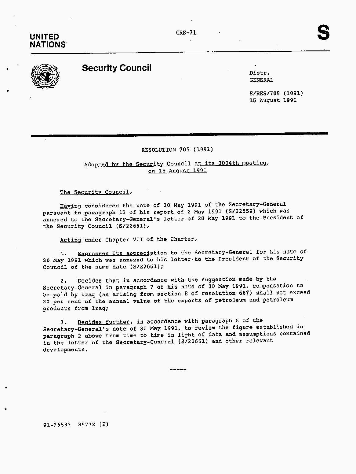 Iraq-Kuwait: United Nations Security Council Resolutions Tests and Votes -- 1991