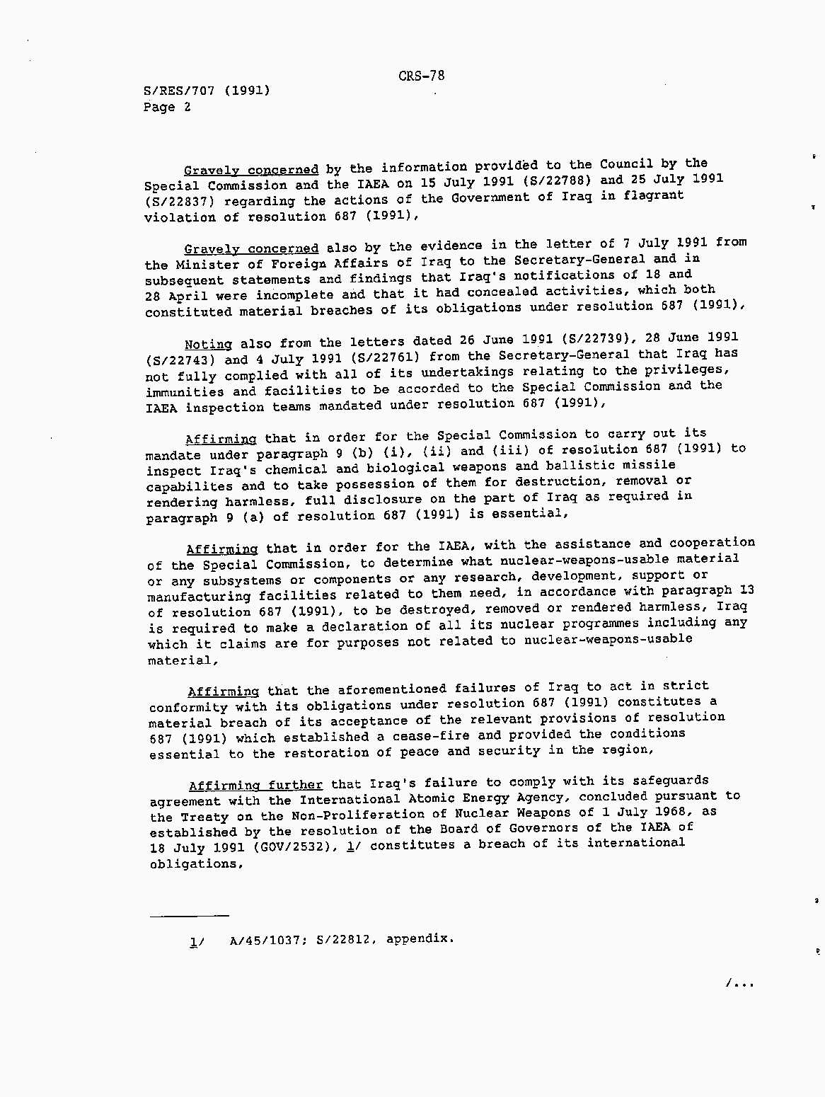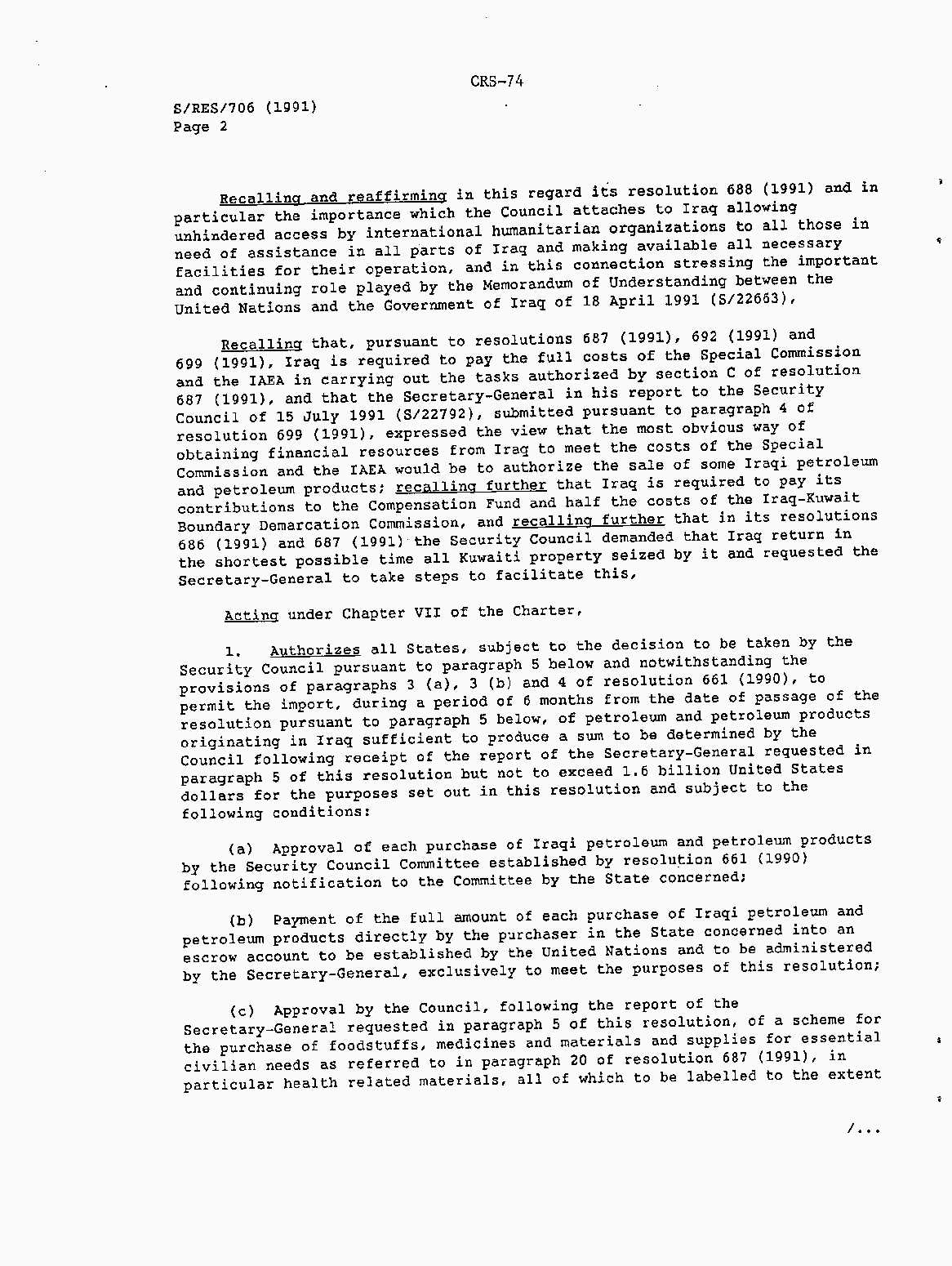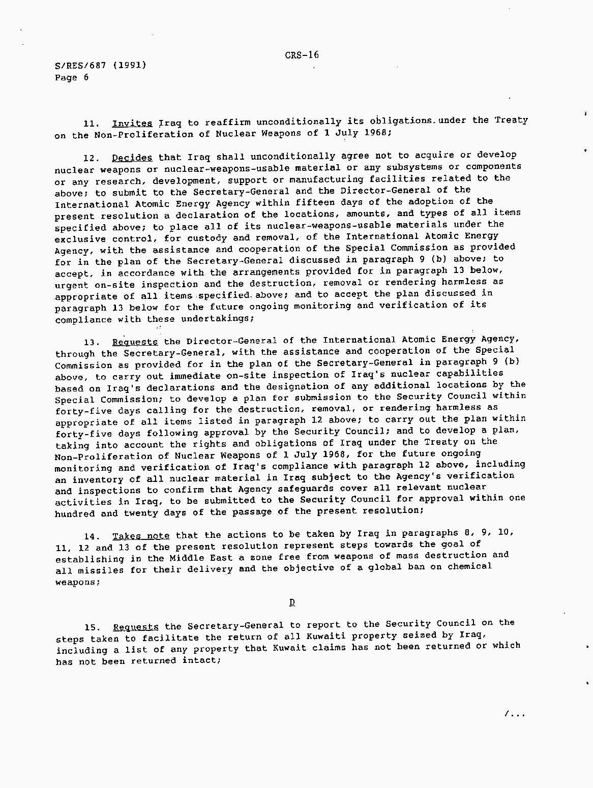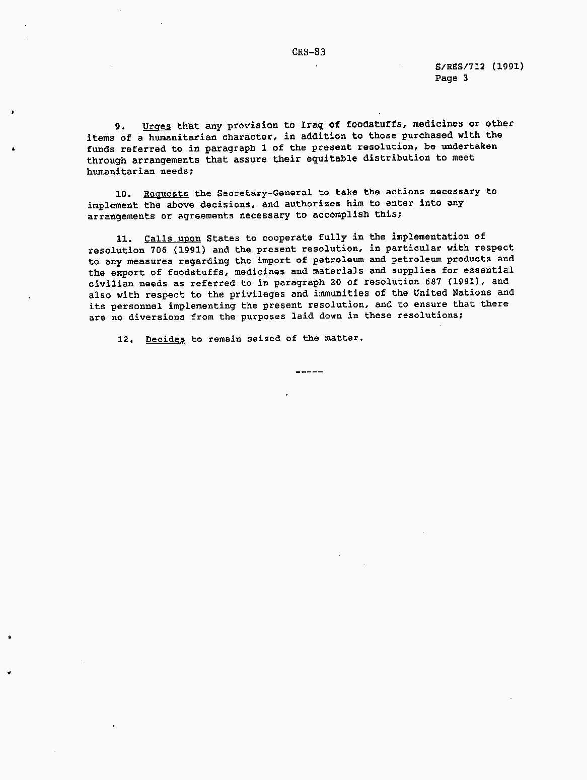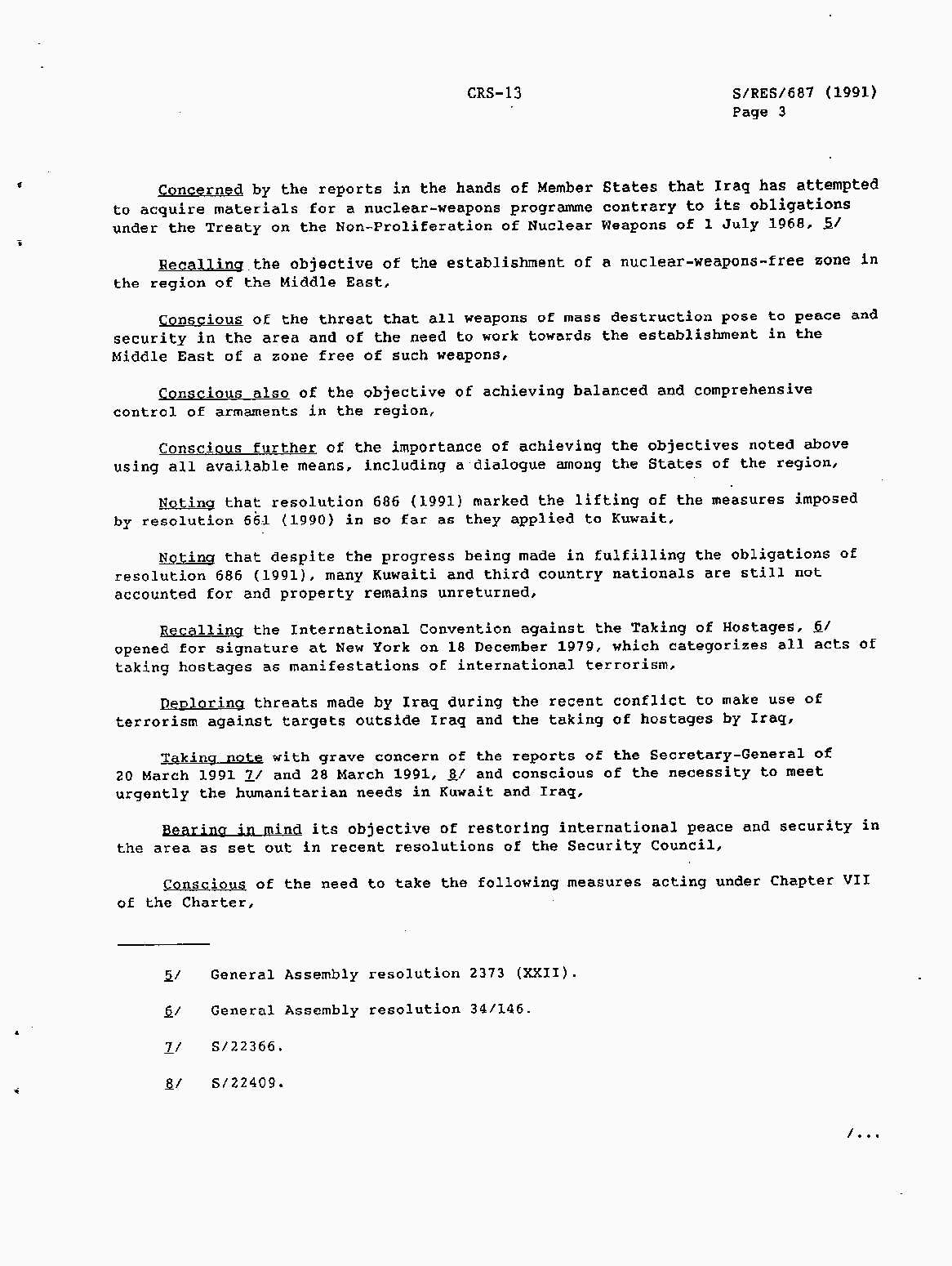 Iraq-Kuwait: United Nations Security Council Resolutions Tests and Votes -- 1991