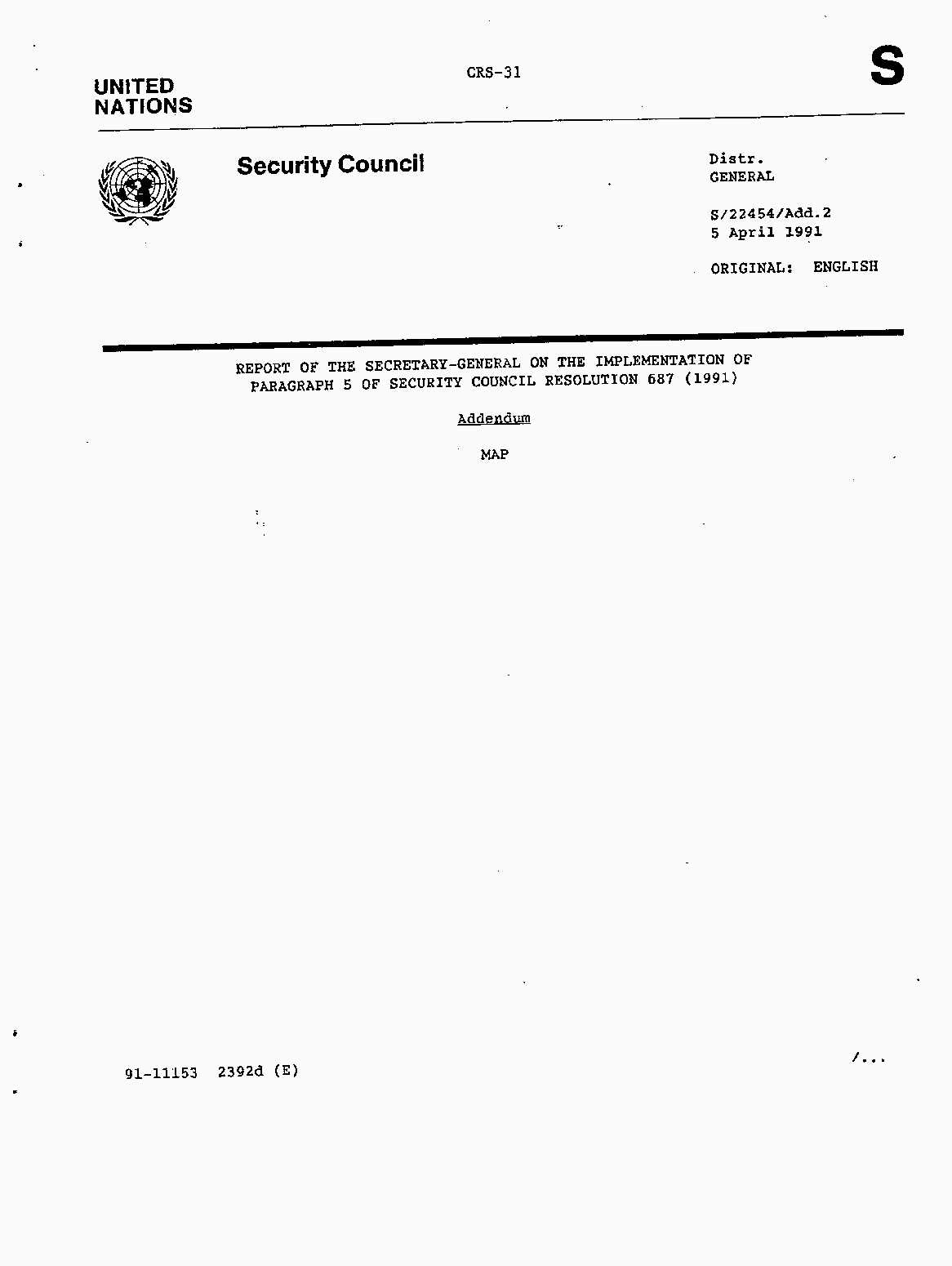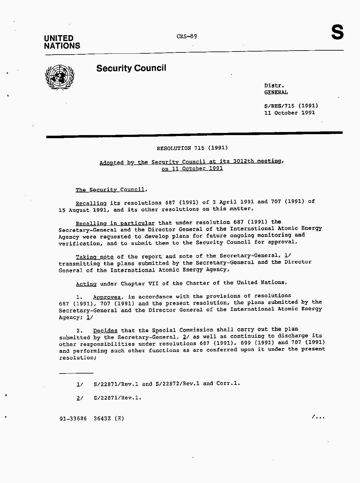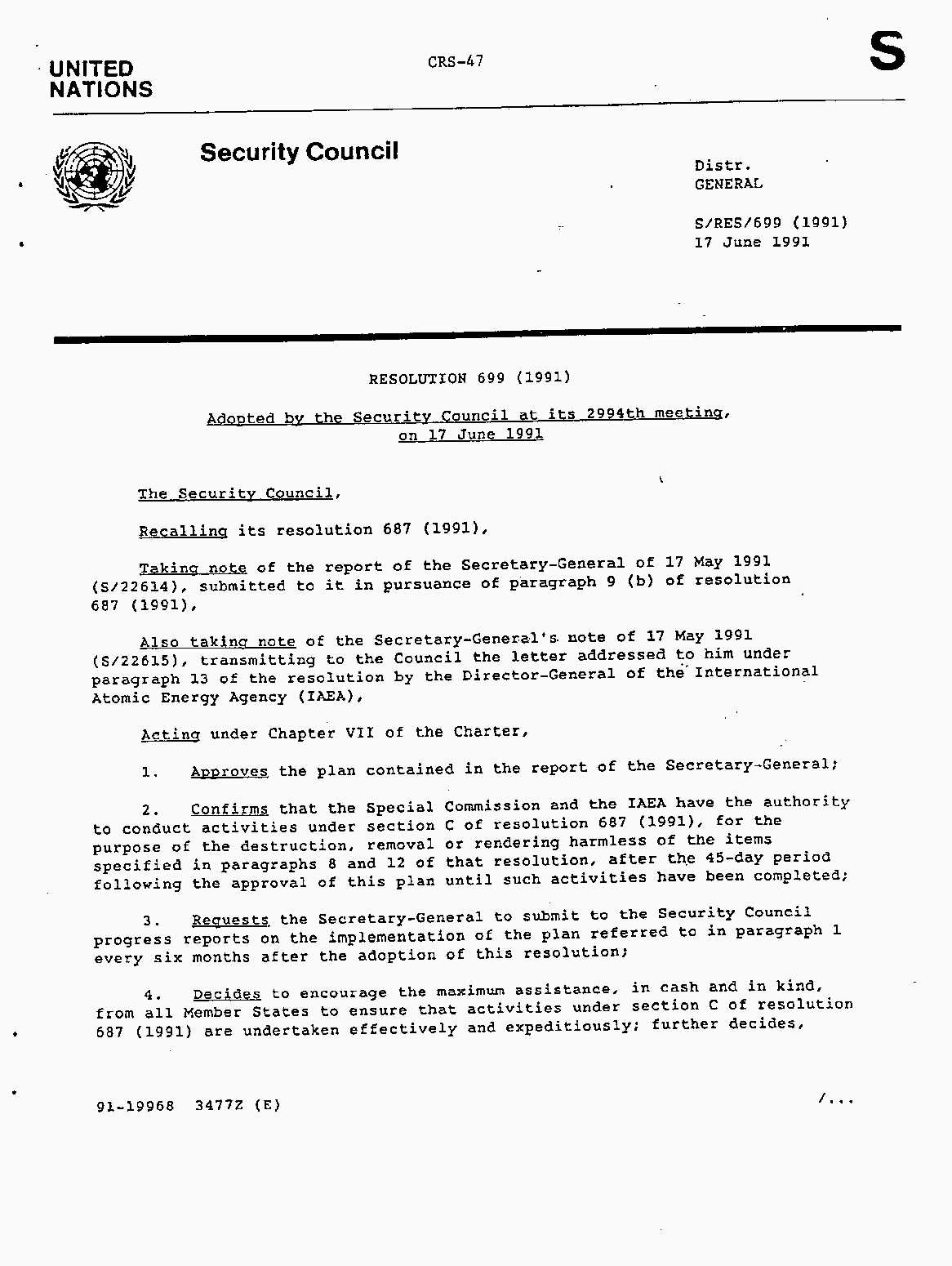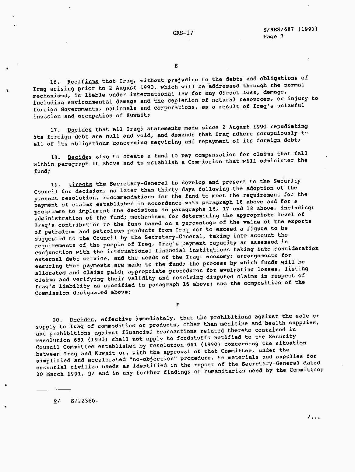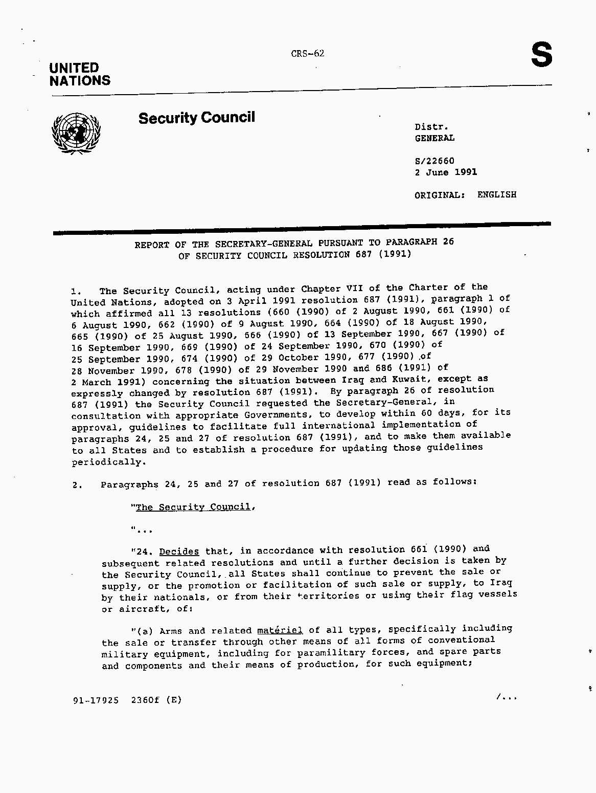 Iraq-Kuwait: United Nations Security Council Resolutions Tests and Votes -- 1991