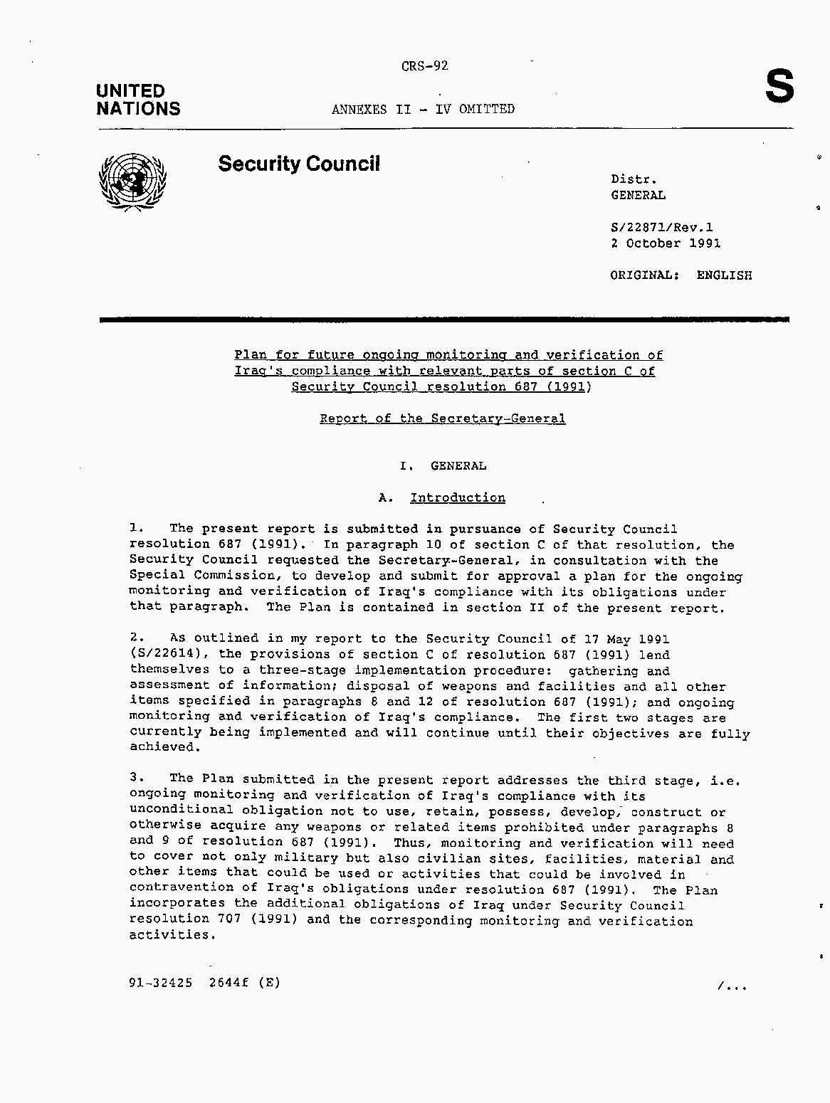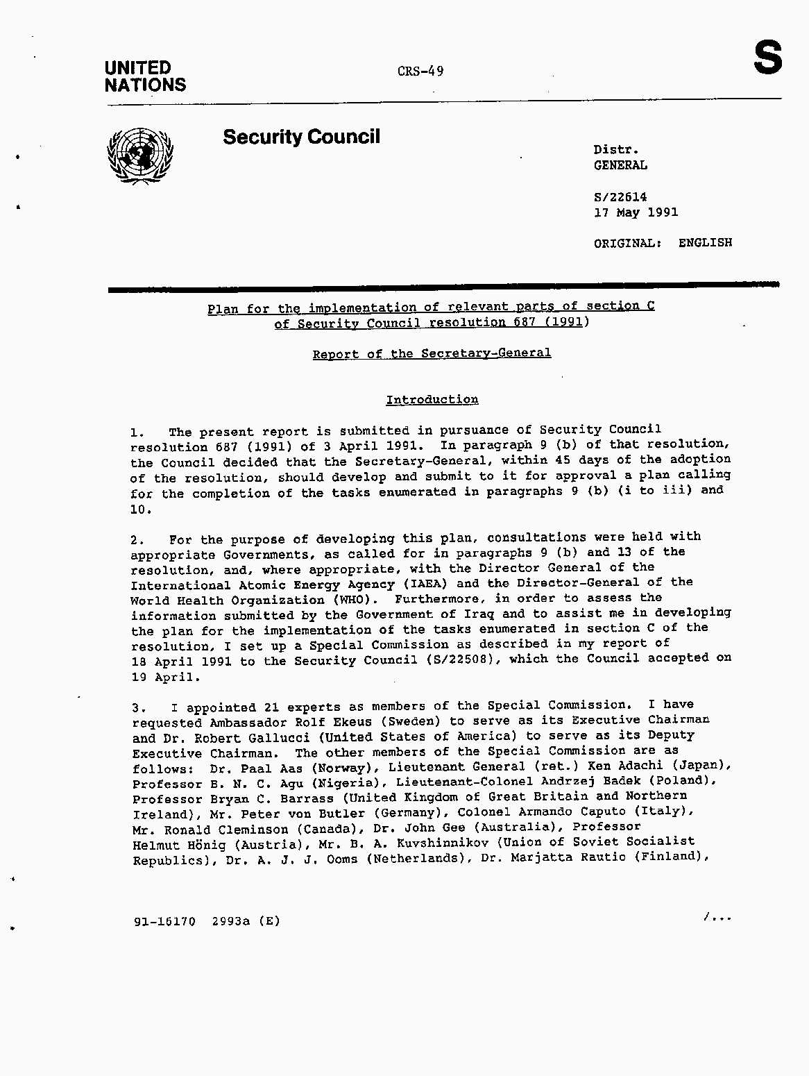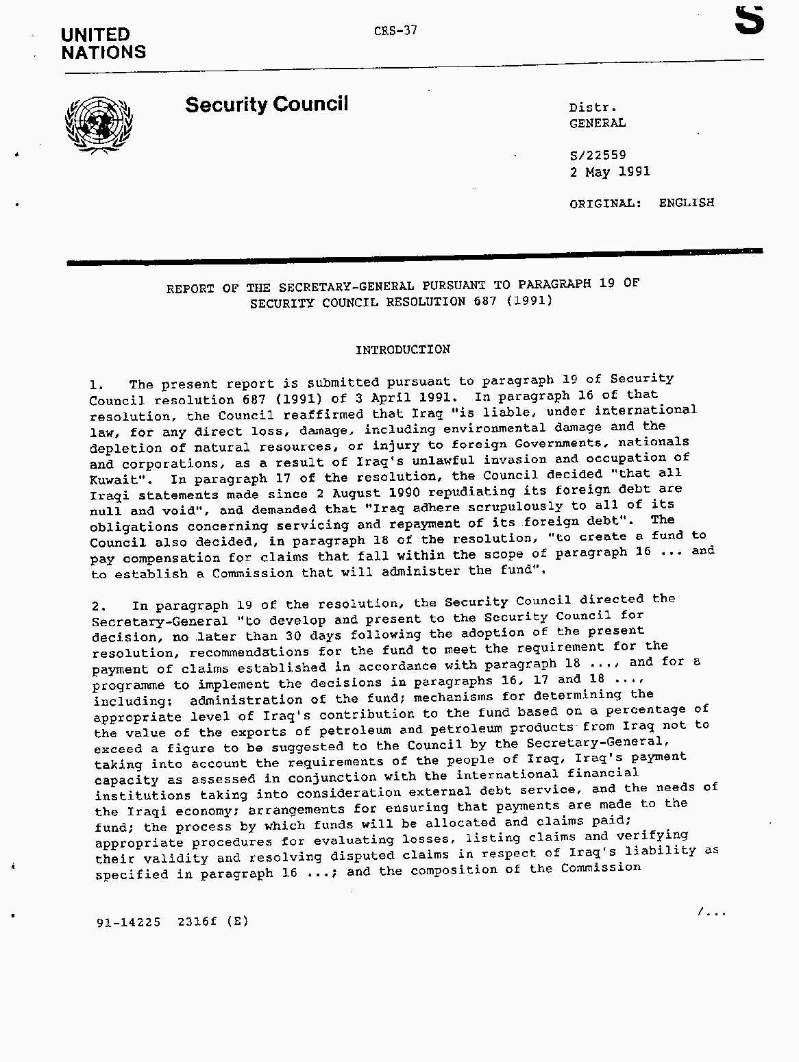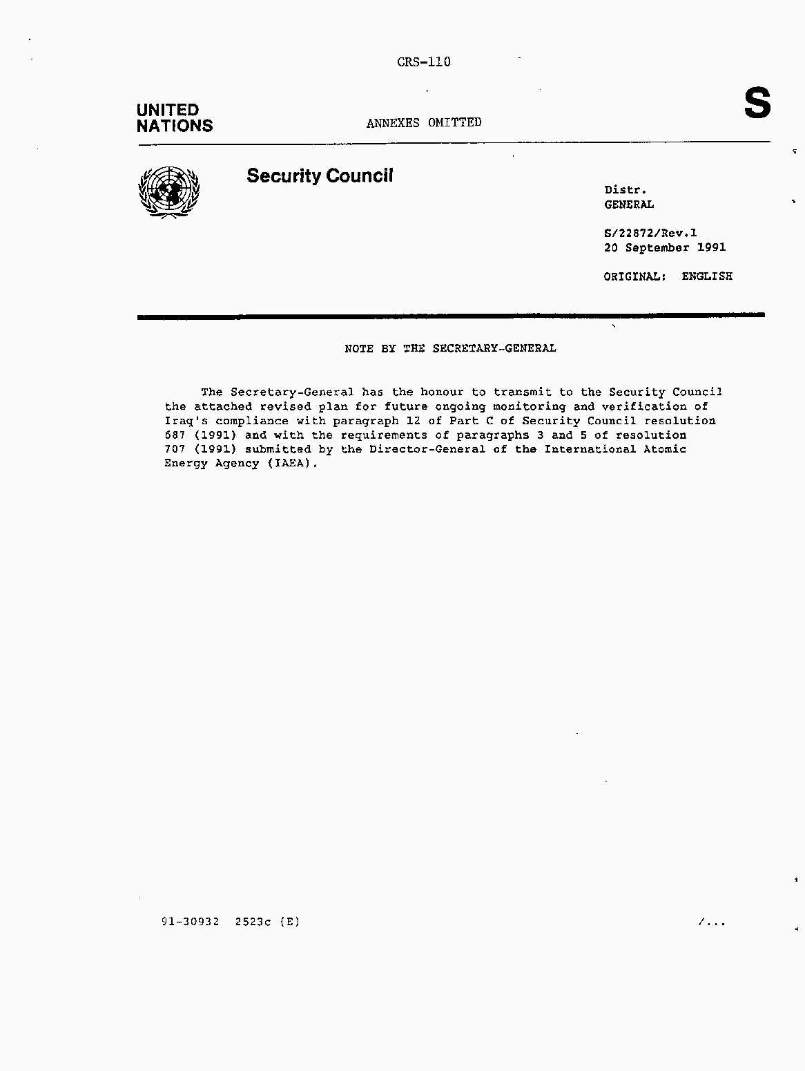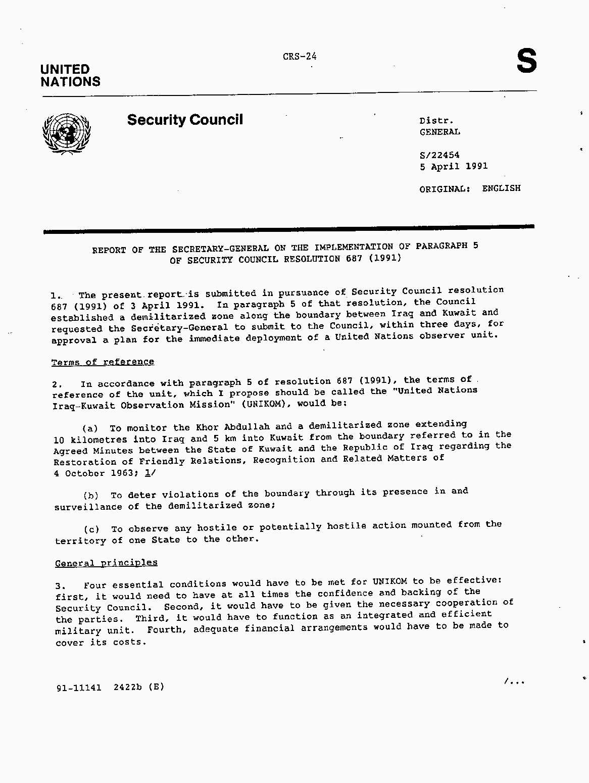 Iraq-Kuwait: United Nations Security Council Resolutions Tests and Votes -- 1991