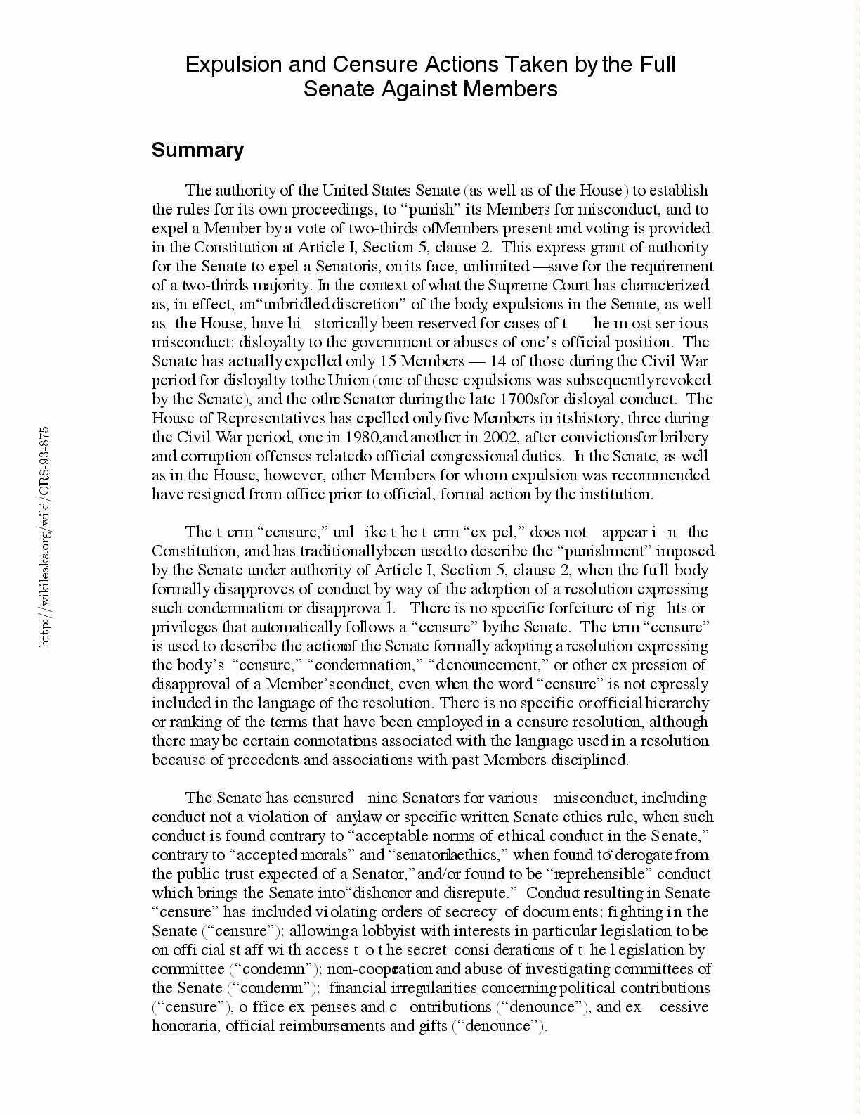 the Senate (“condemn”); financial irregularities concerning political contributions