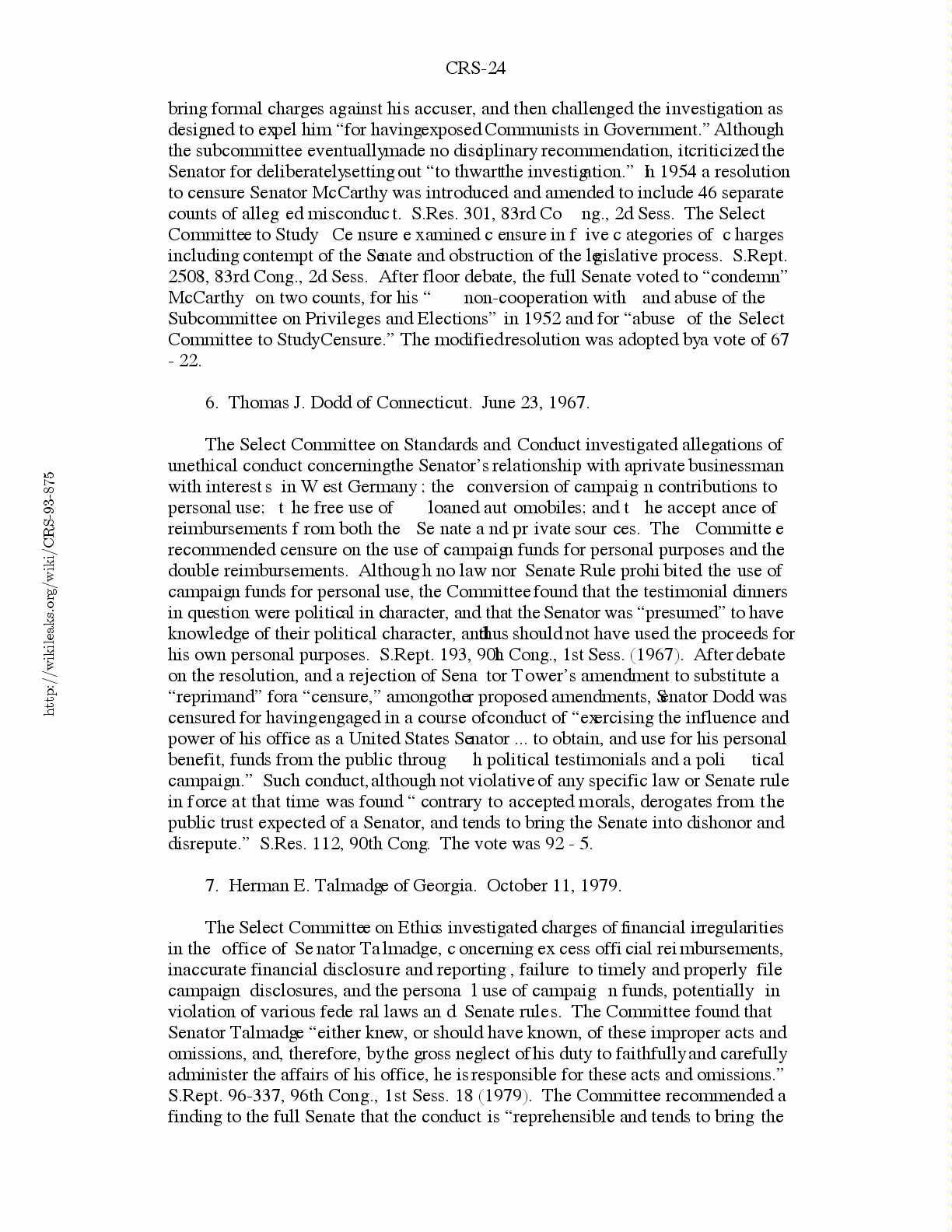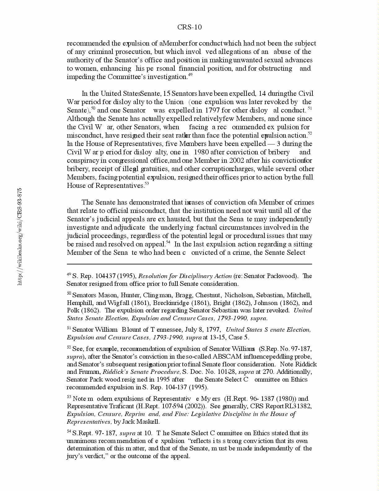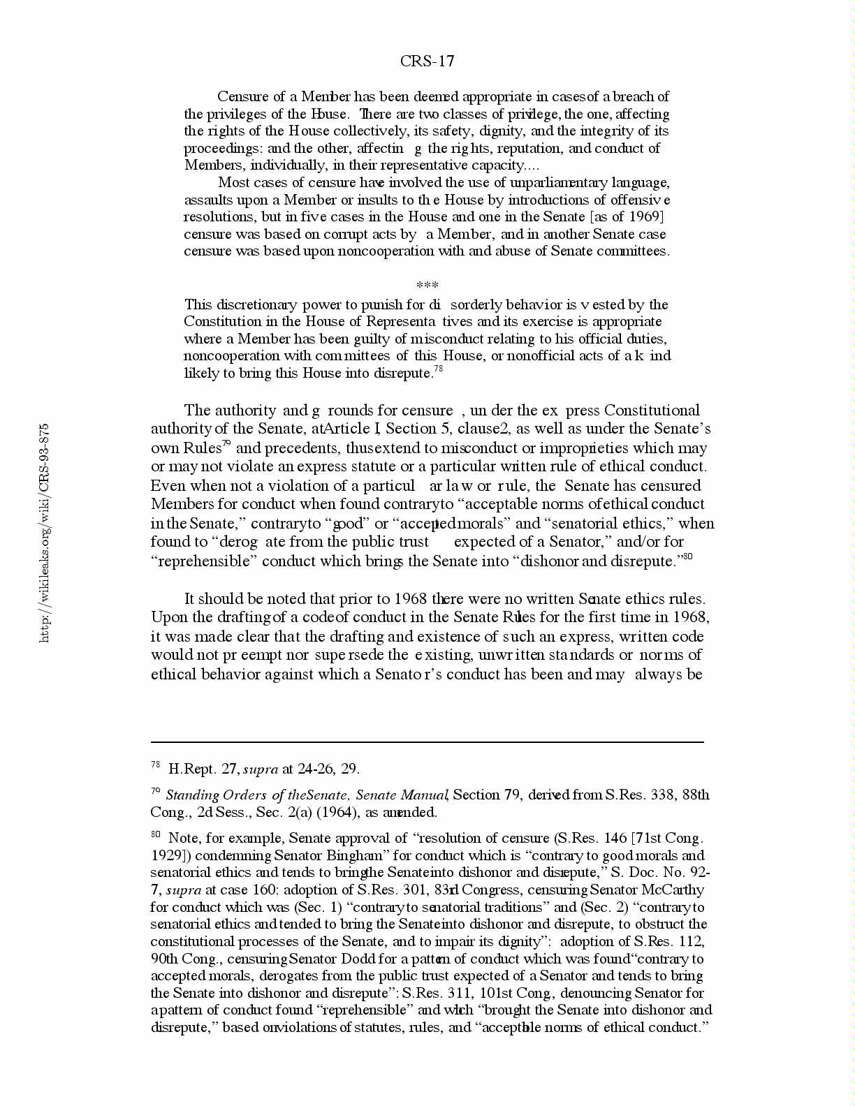 any particular misconduct.3 Senators are subject to internal, congressional discipline