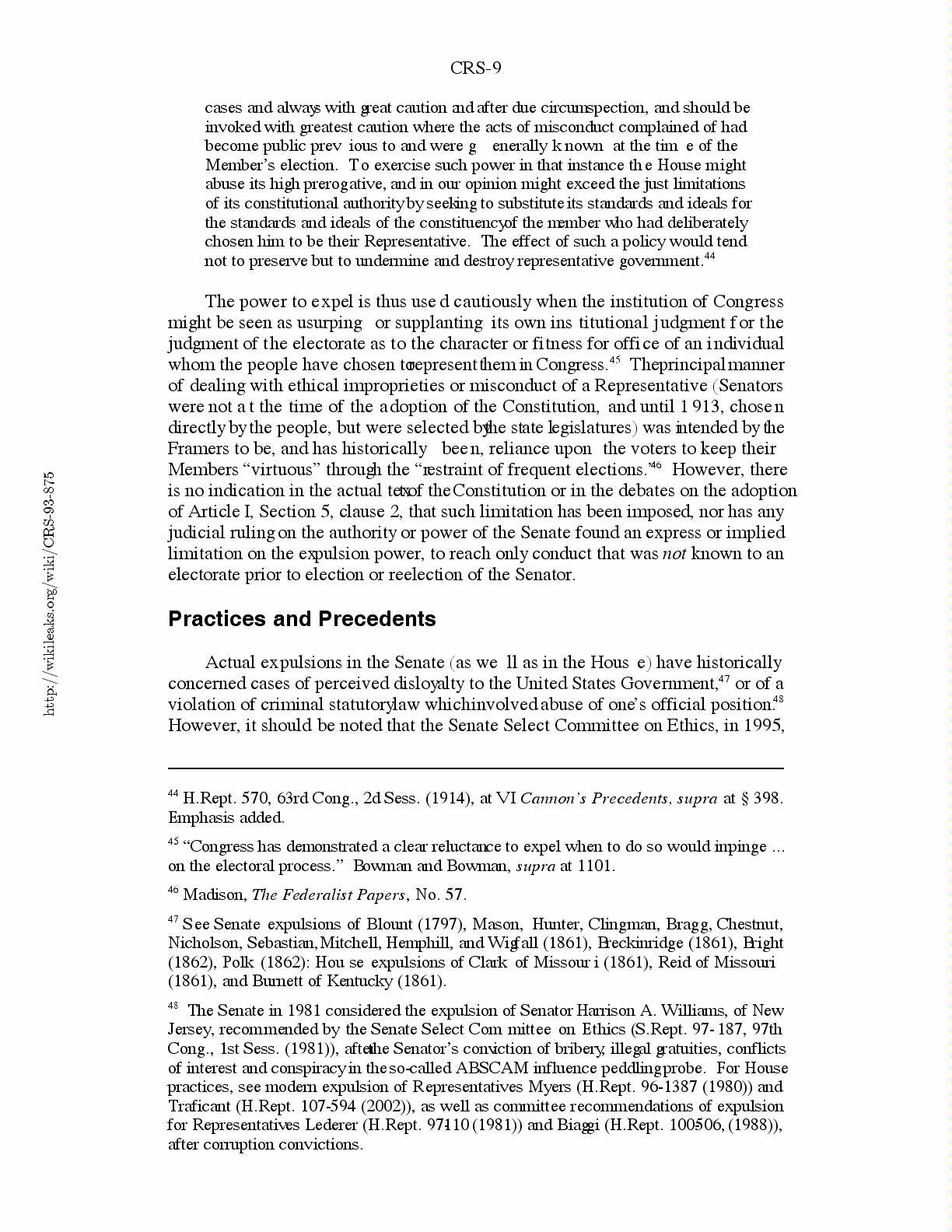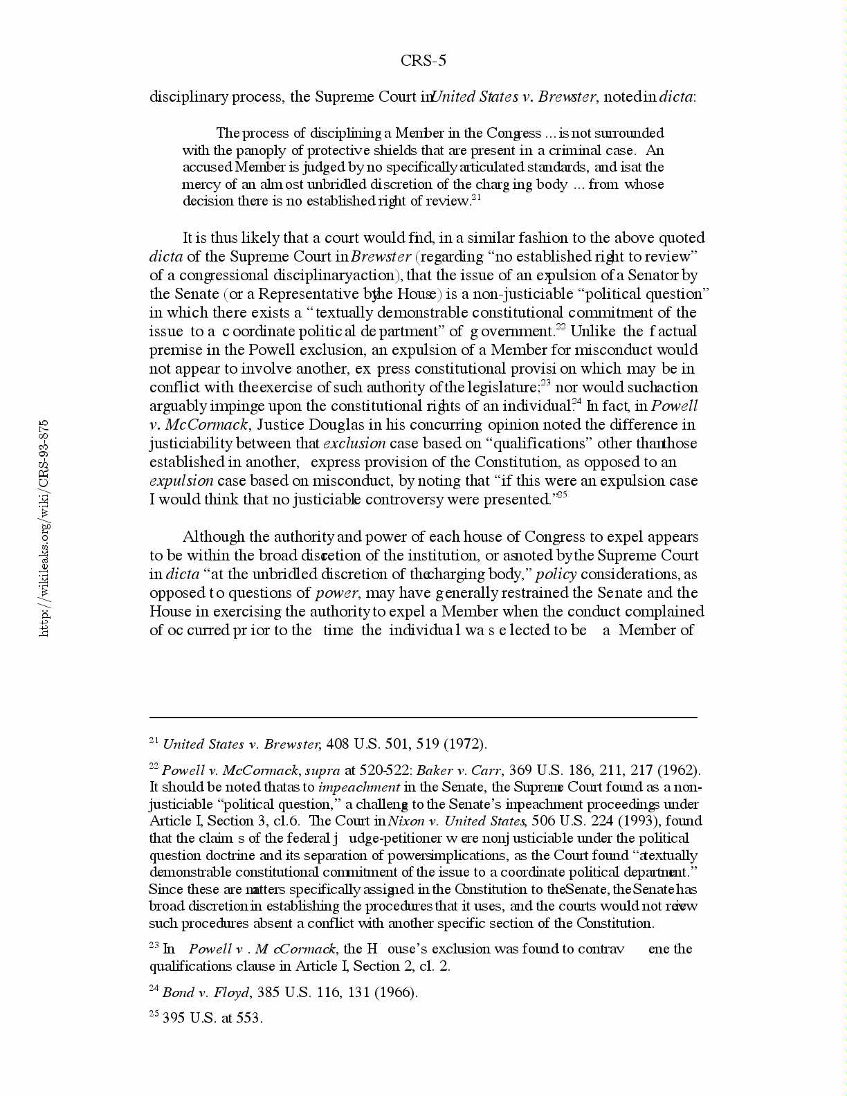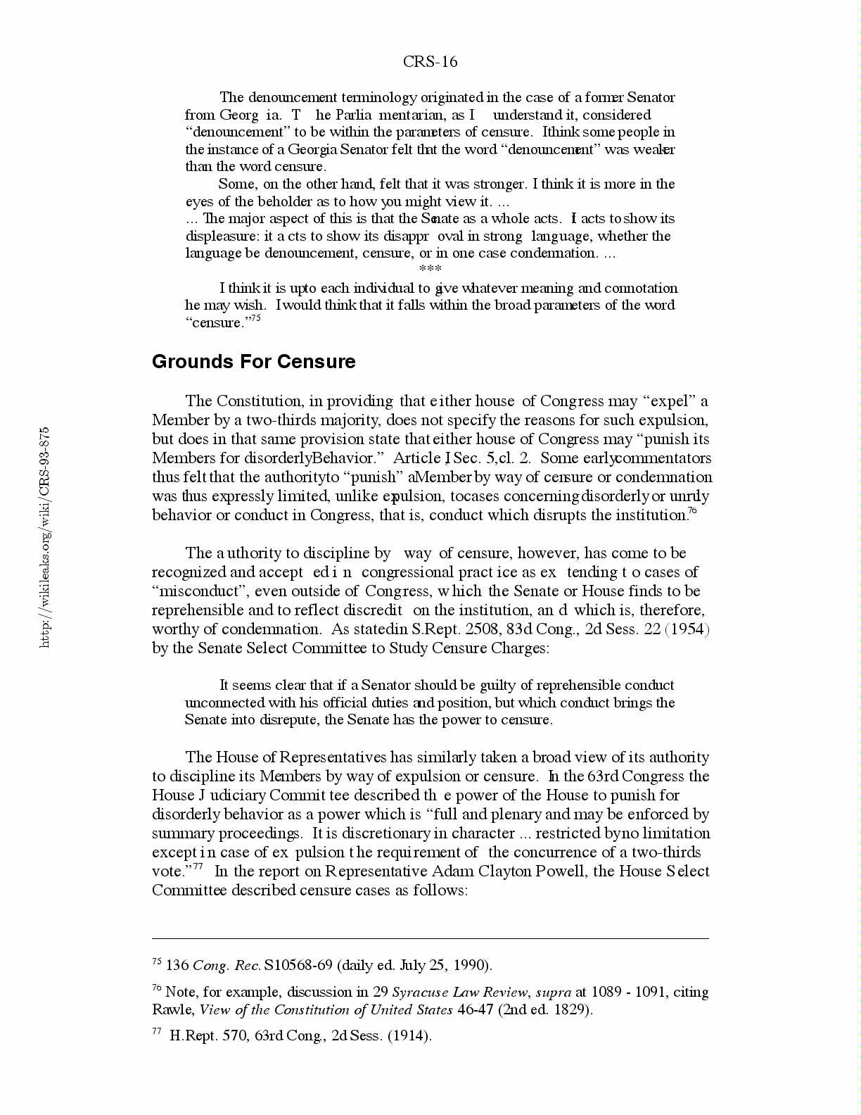any particular misconduct.3 Senators are subject to internal, congressional discipline