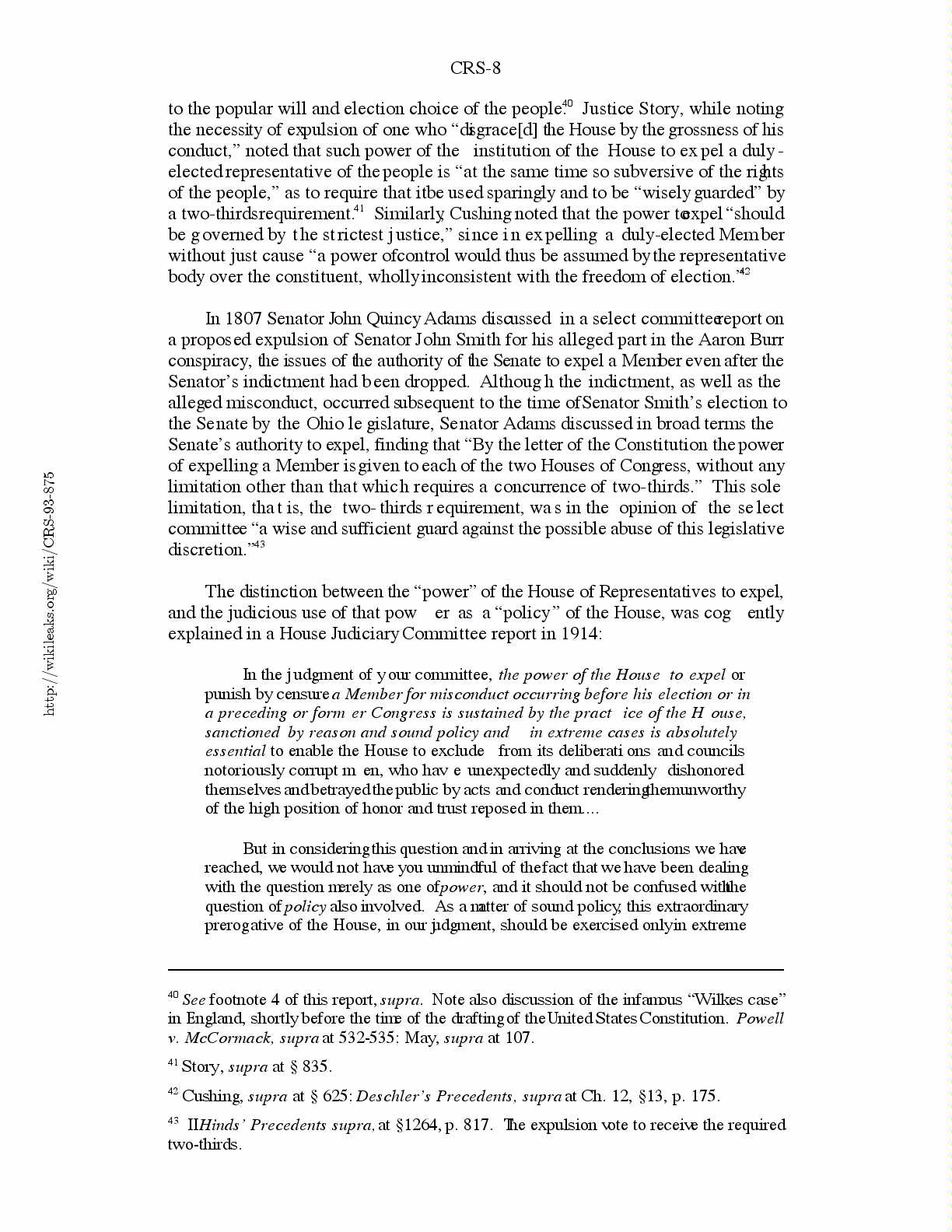 grounds, 395 U.S. 486 (1969); Story, supra at § 835. Note British Parliamentary practice: