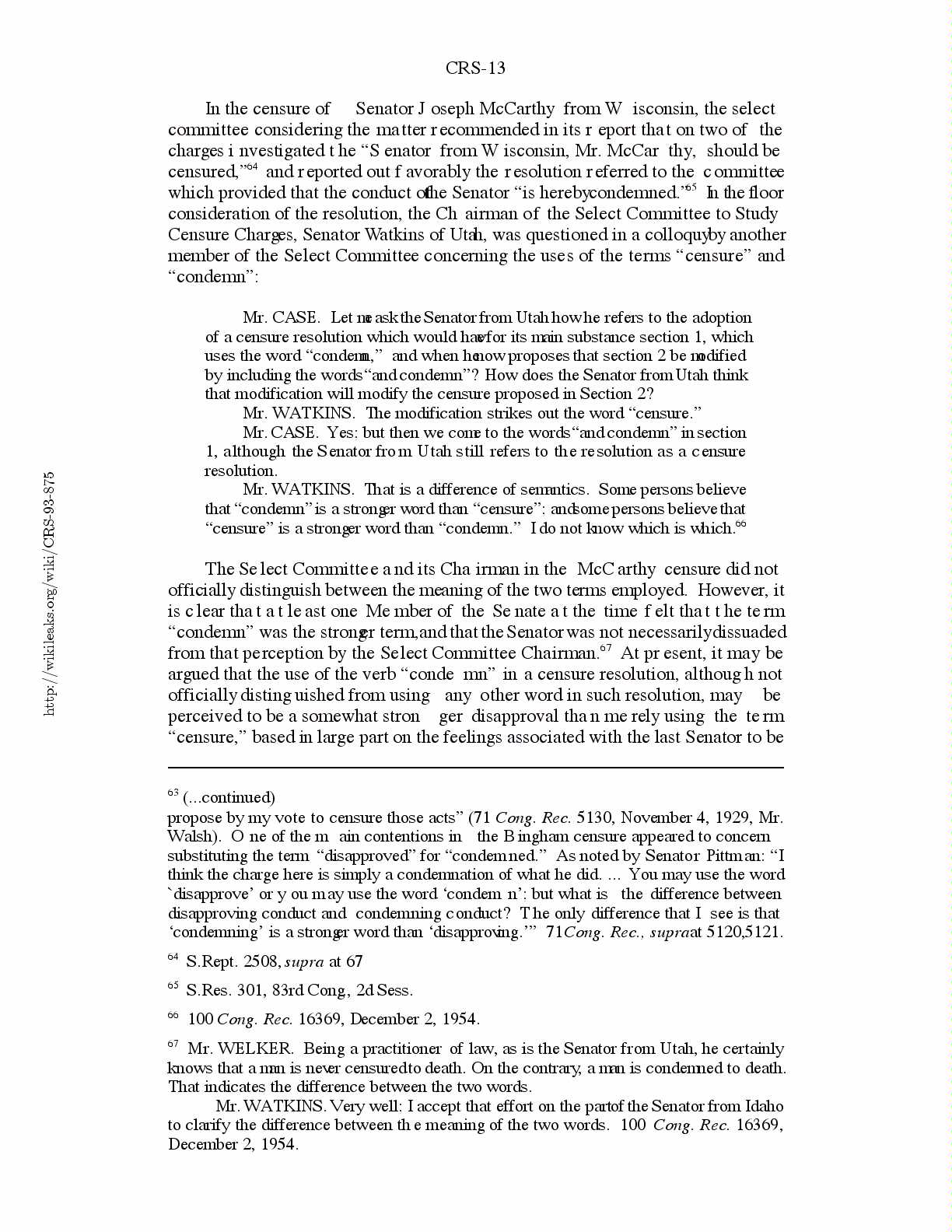 2508, 83rd Cong., 2d Sess. After floor debate, the full Senate voted to “condemn”