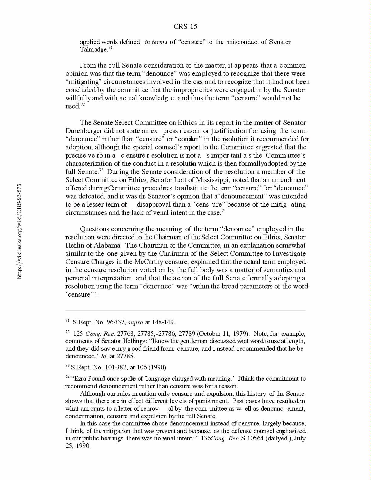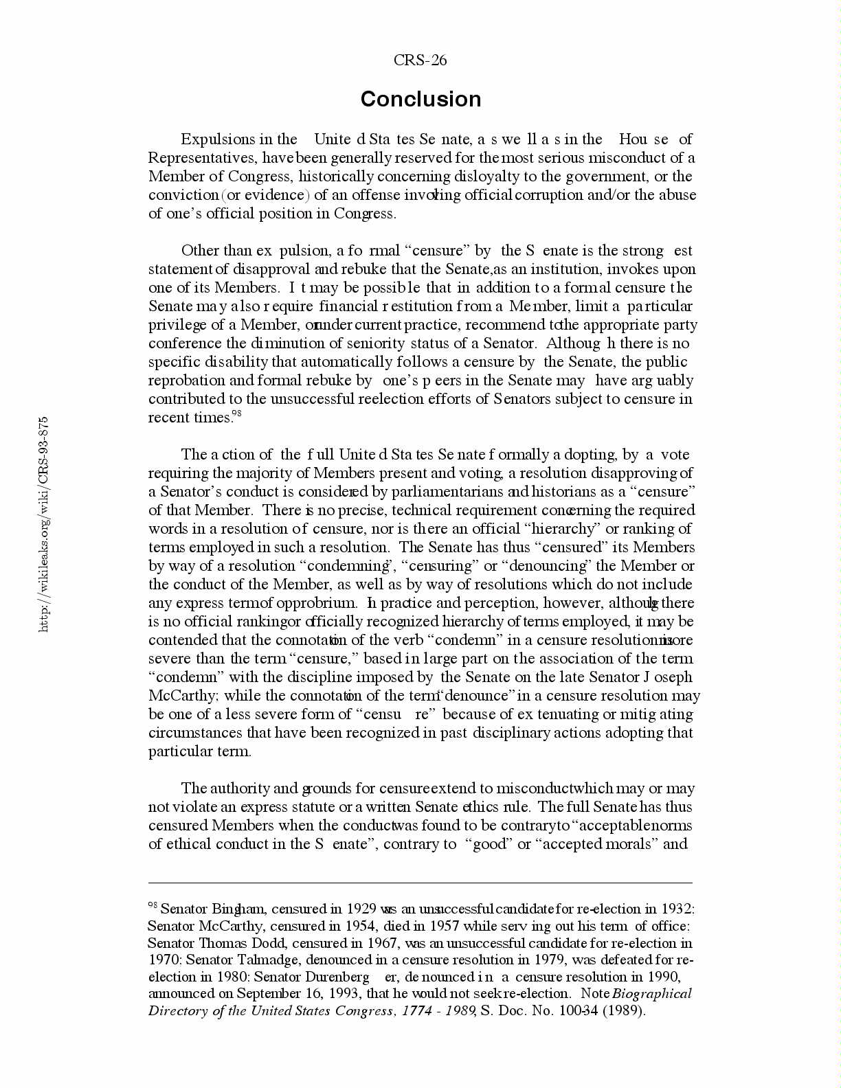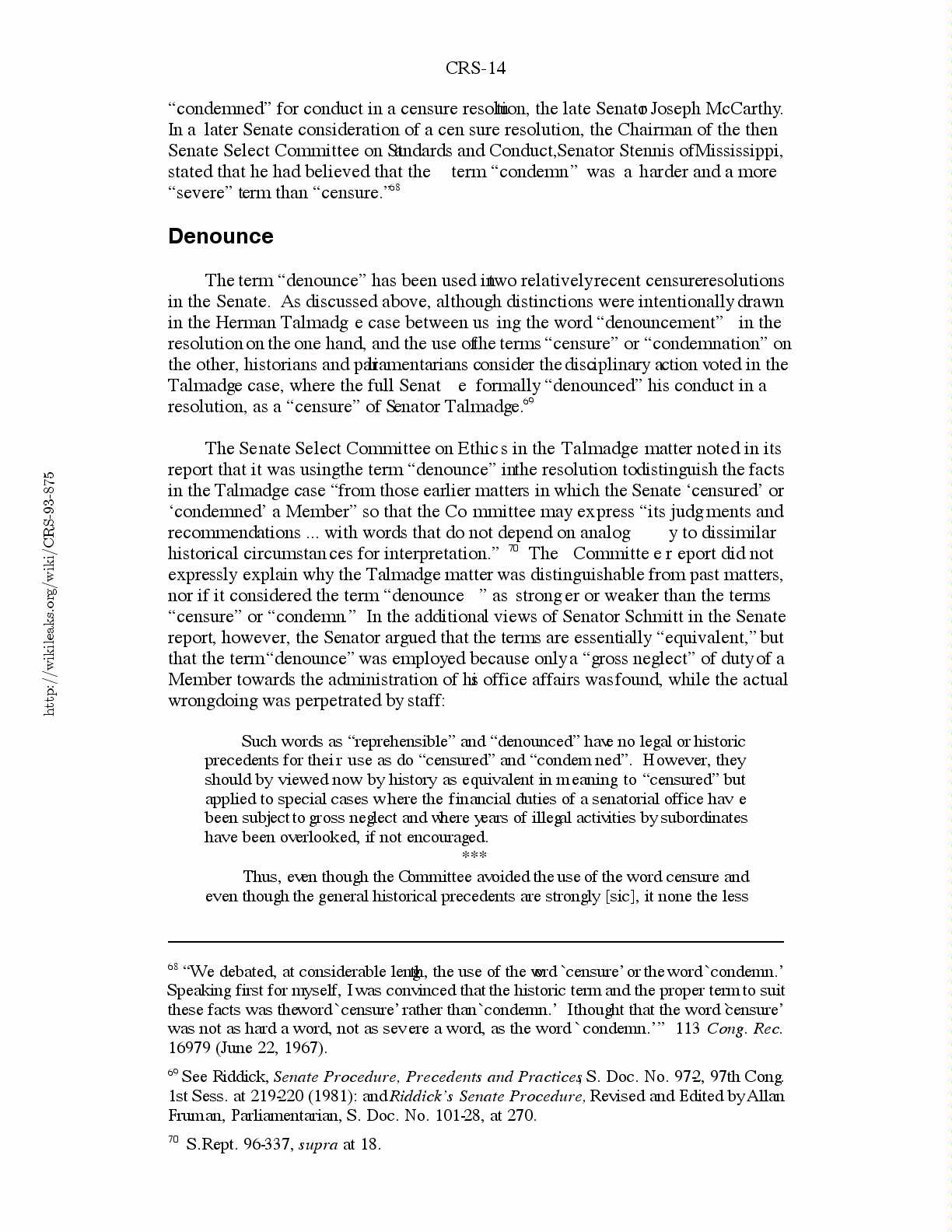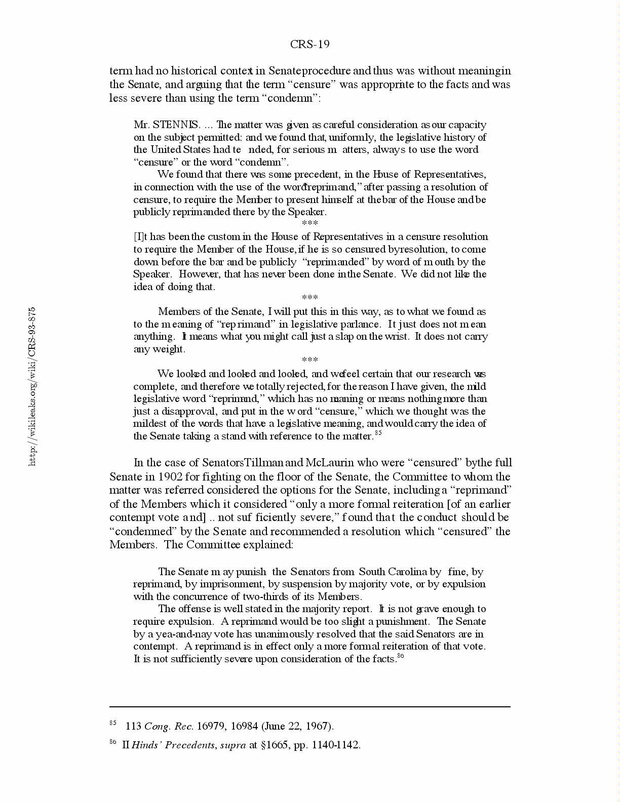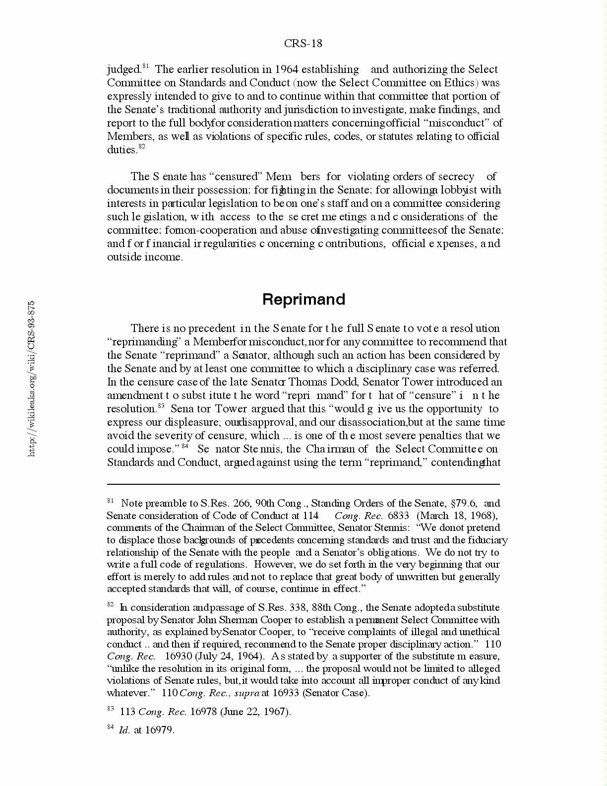 and parliamentarians in the Senate as a “censure” of that Member.96