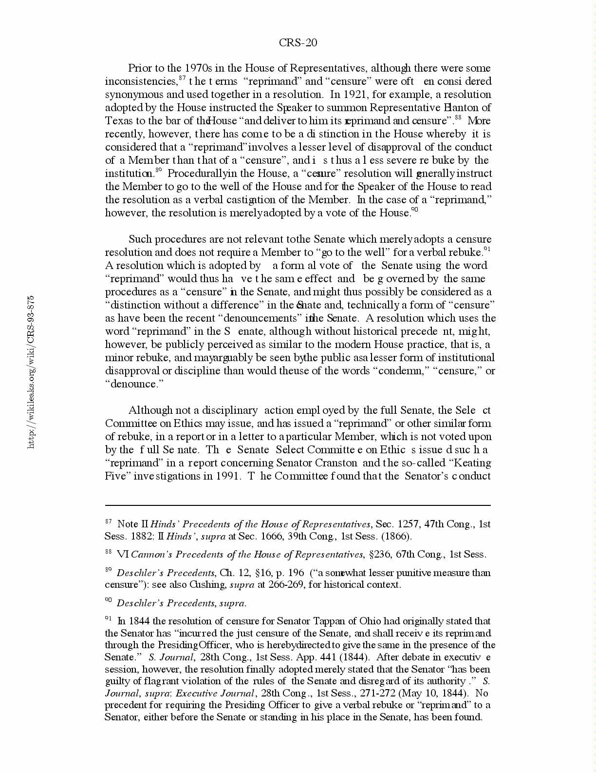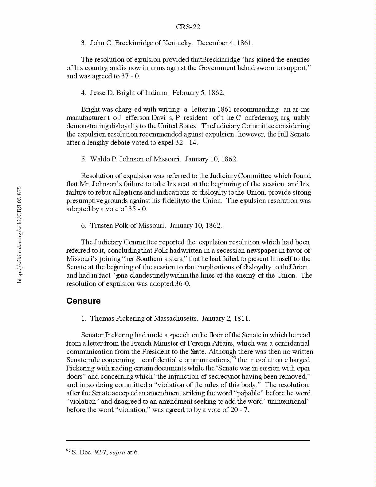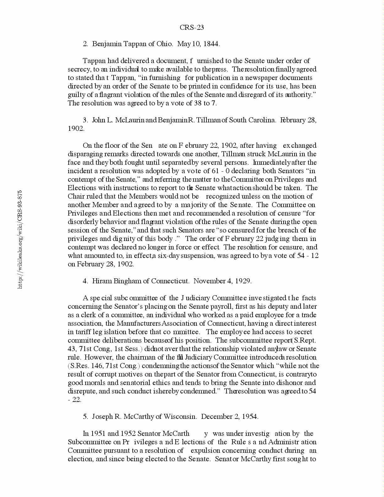 91 In 1844 the resolution of censure for Senator Tappan of Ohio had originally stated that