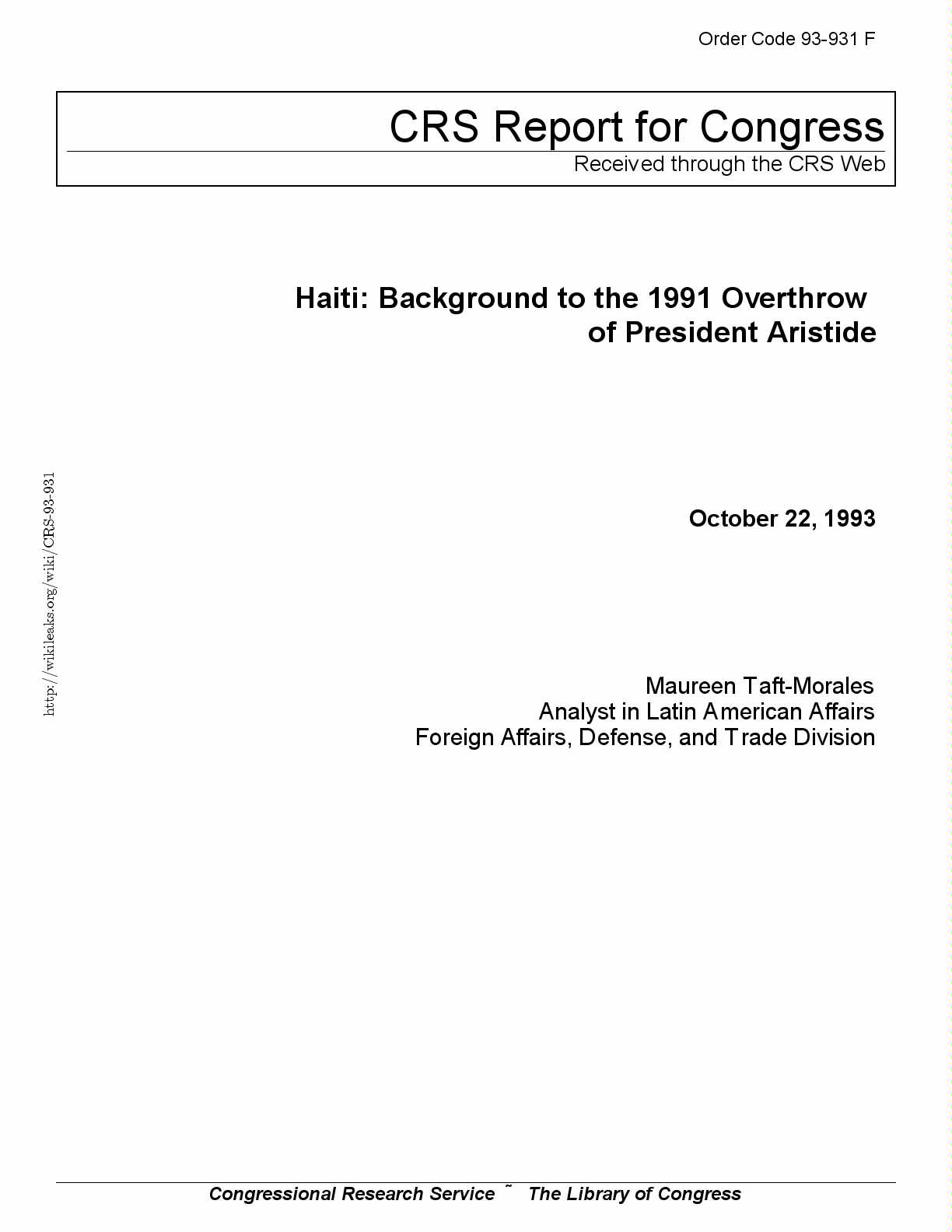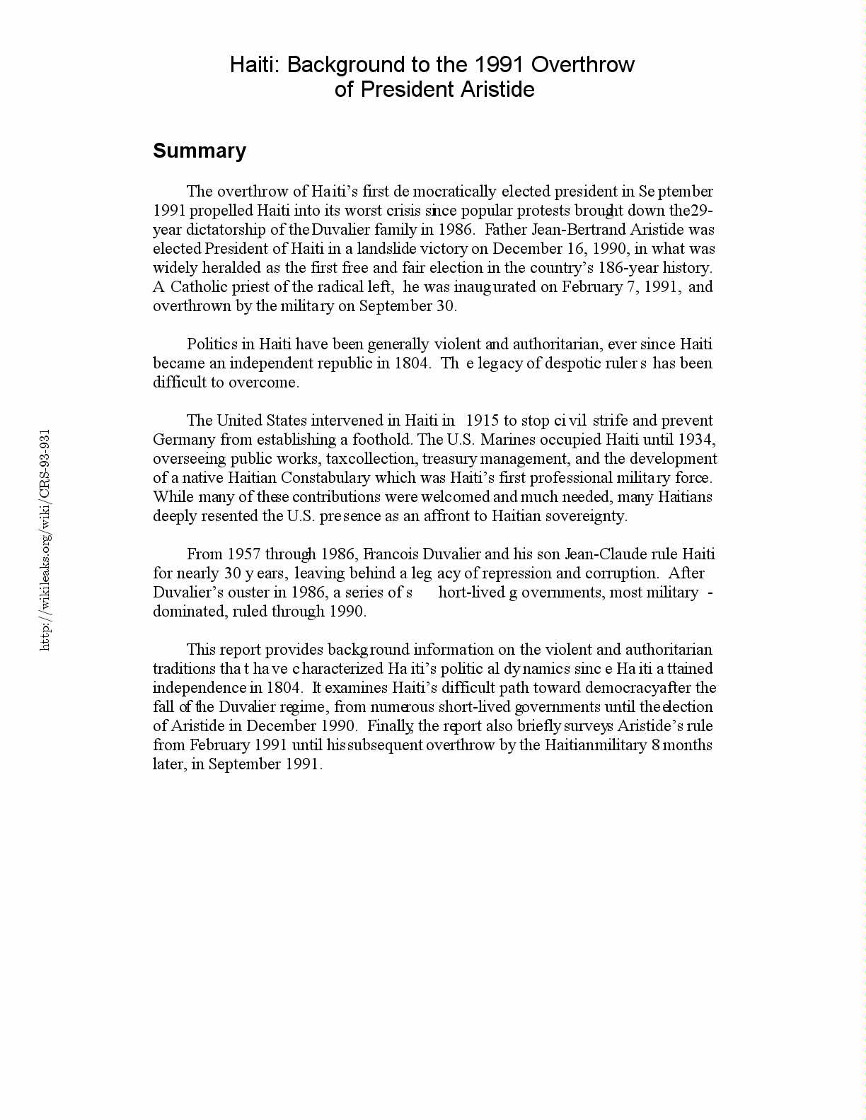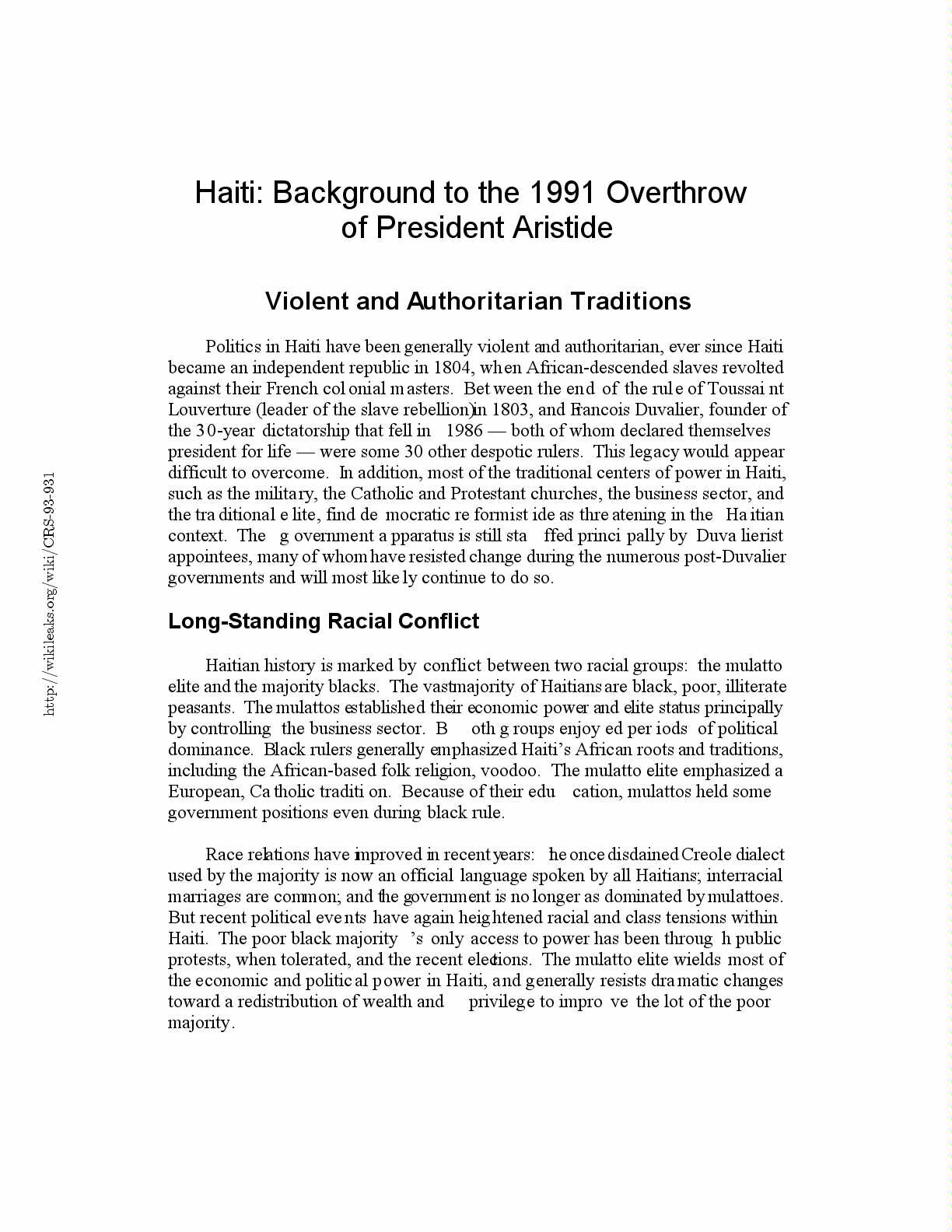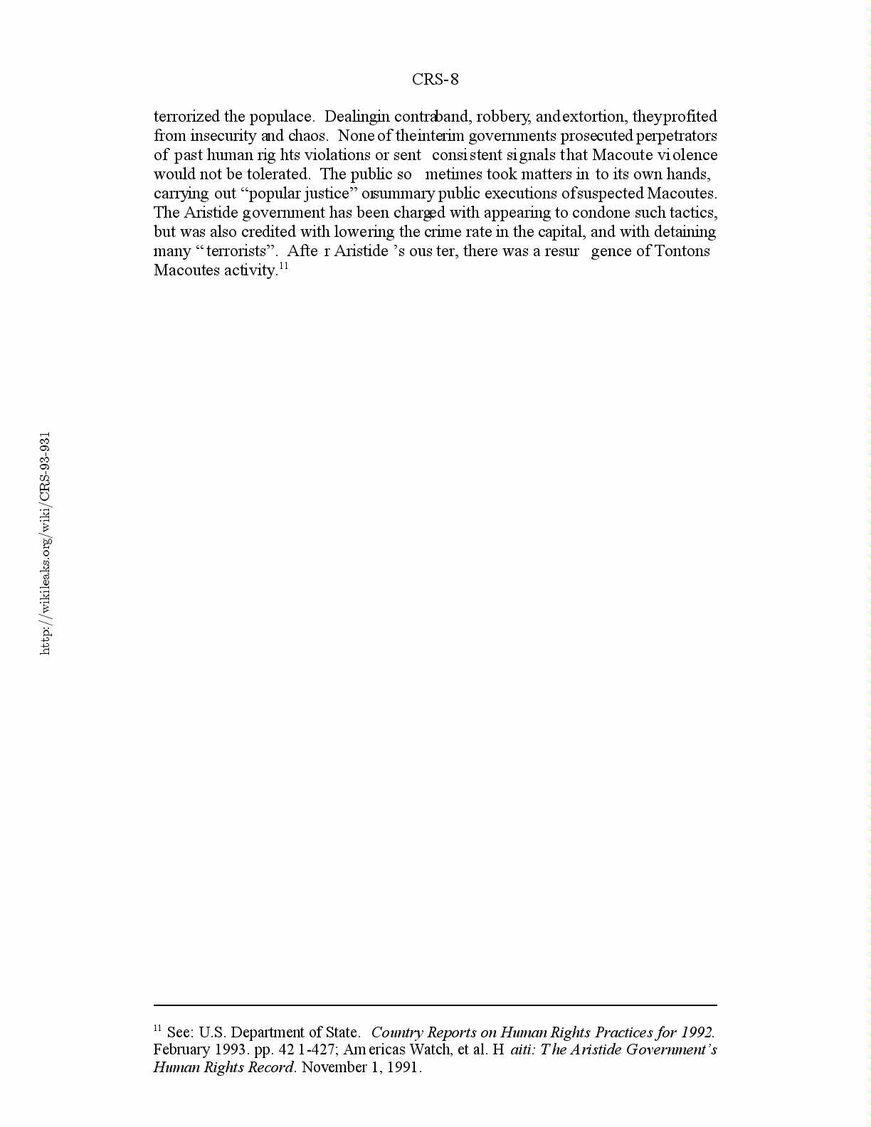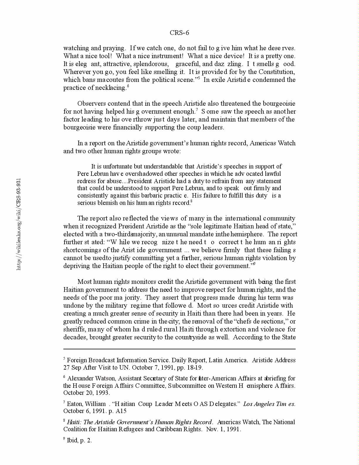 February 1993. pp. 421-427; Americas Watch, et al. Haiti: The Aristide Government’s