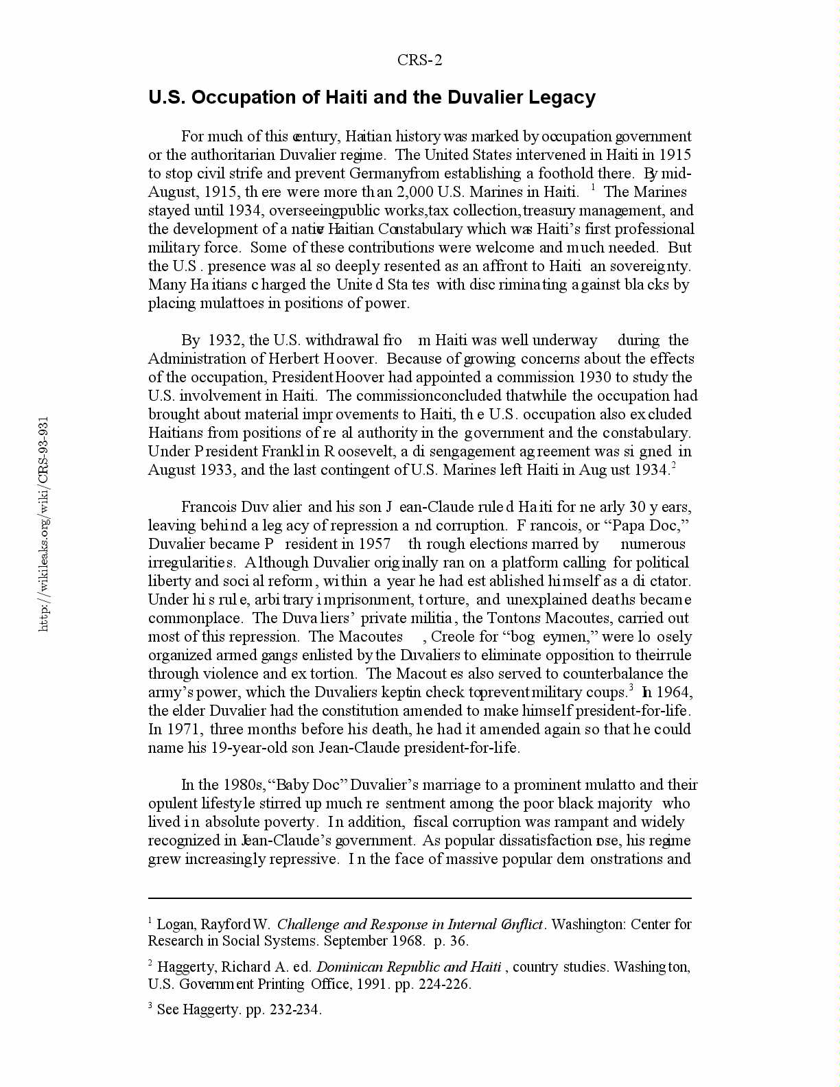 U.S. Occupation of Haiti and the Duvalier Legacy....................2