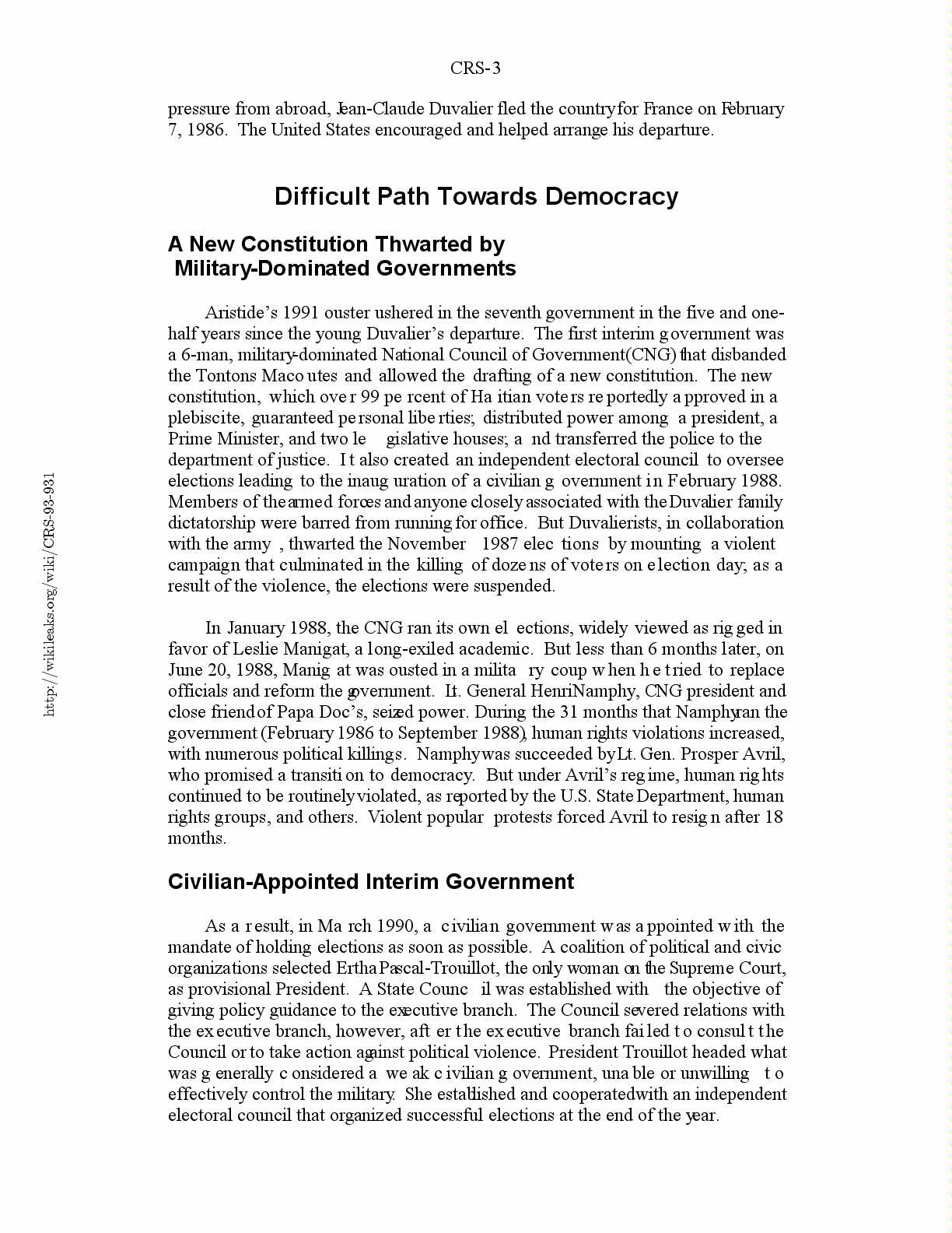 Election and Overthrow of the Aristide Government..................4