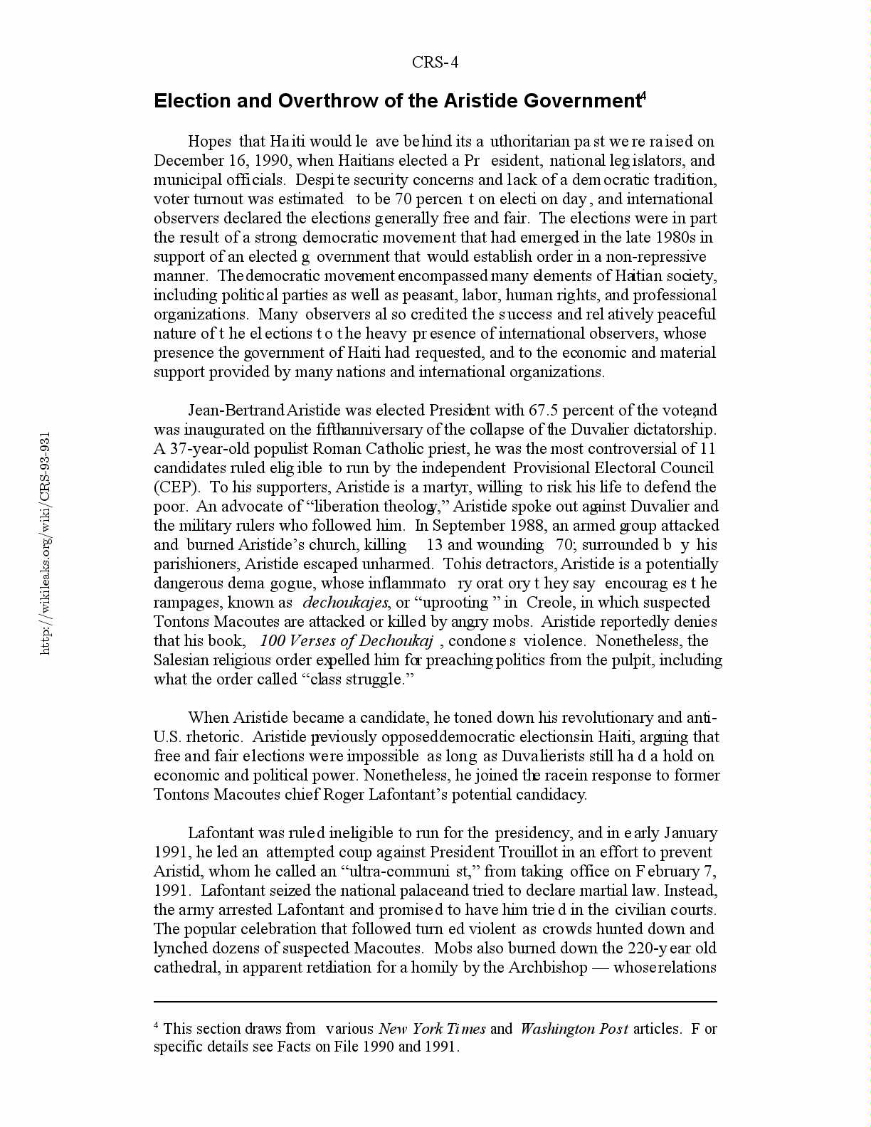Election and Overthrow of the Aristide Government4
