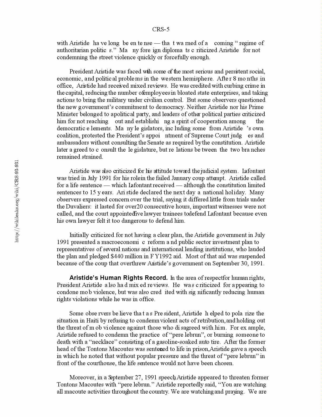 Aristide’s Human Rights Record..............................5
