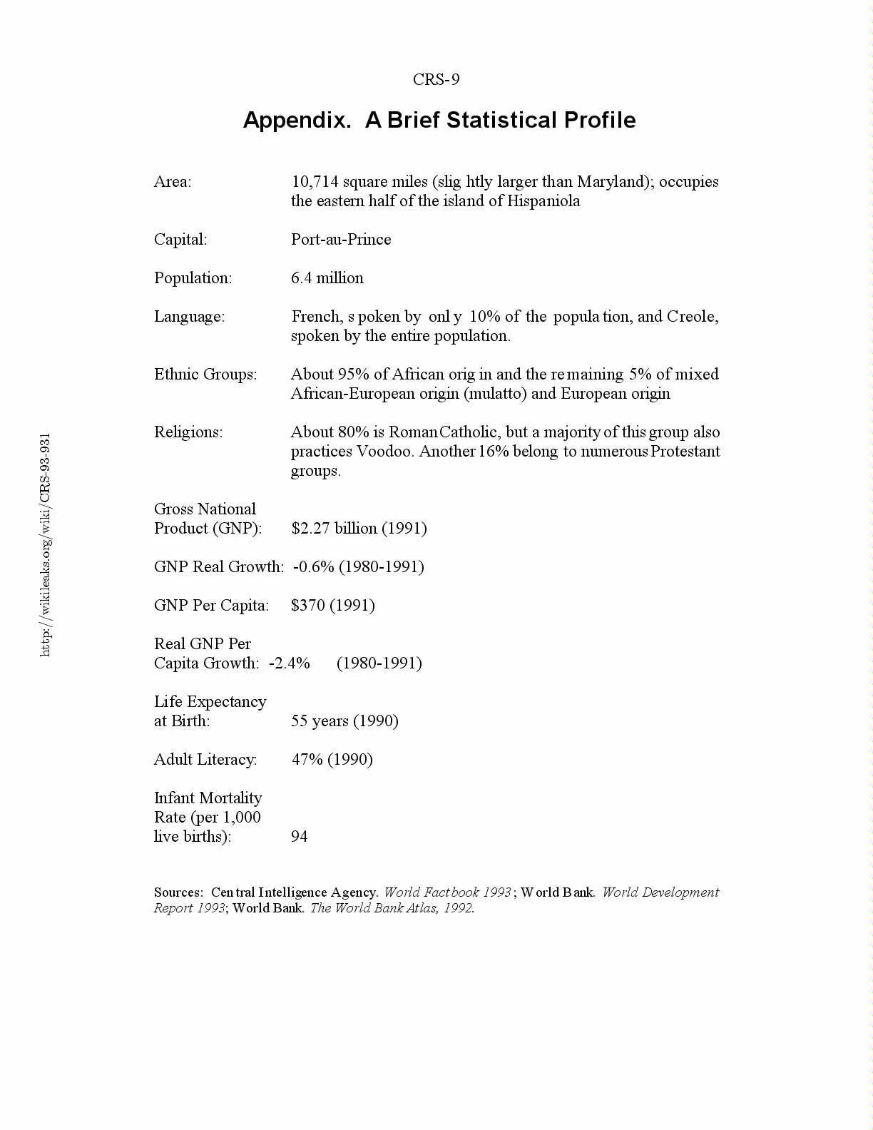 Sources: Central Intelligence Agency. World Factbook 1993; World Bank. World Development