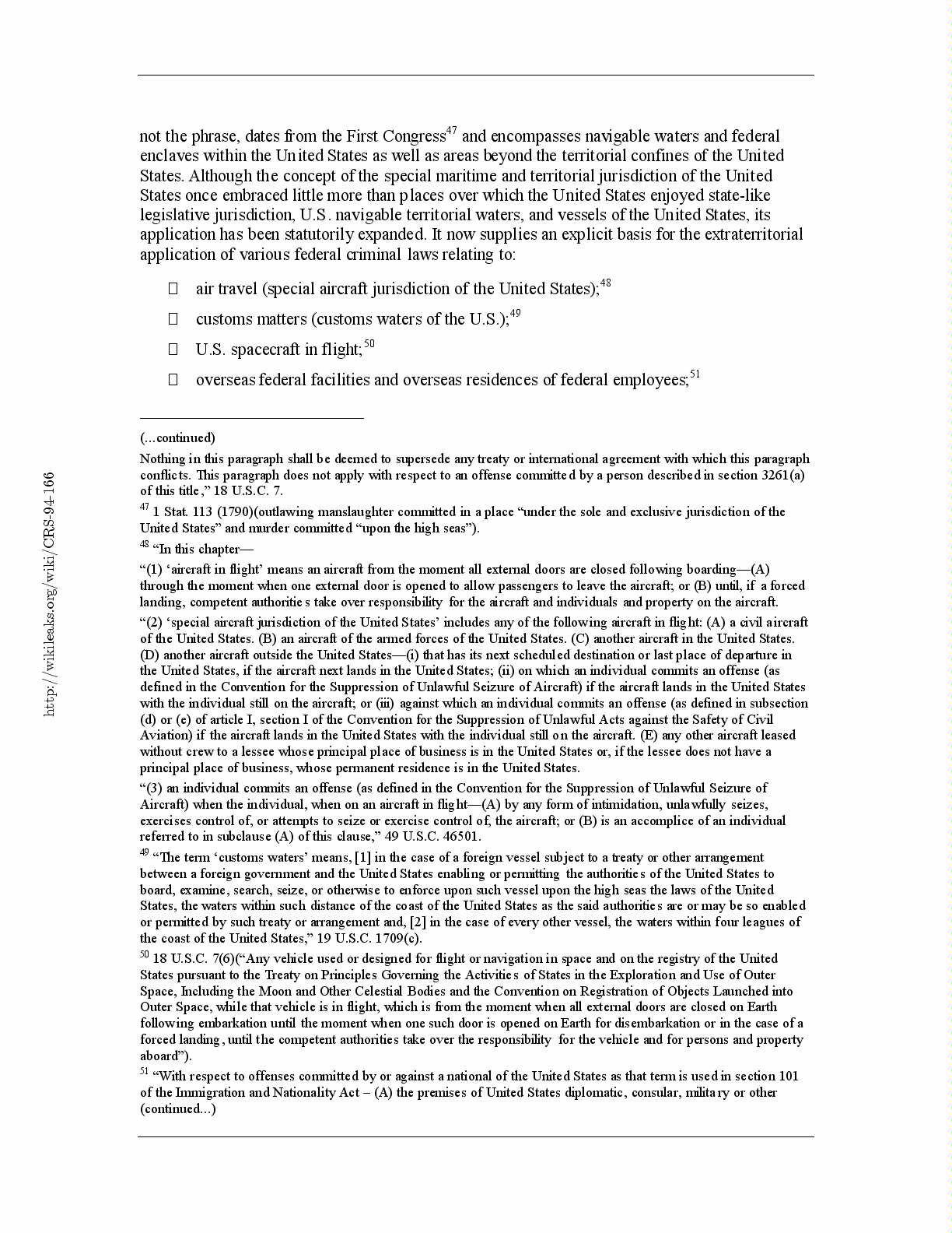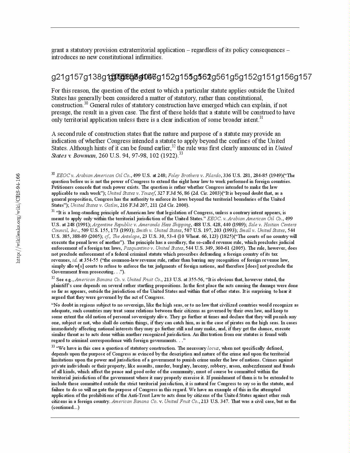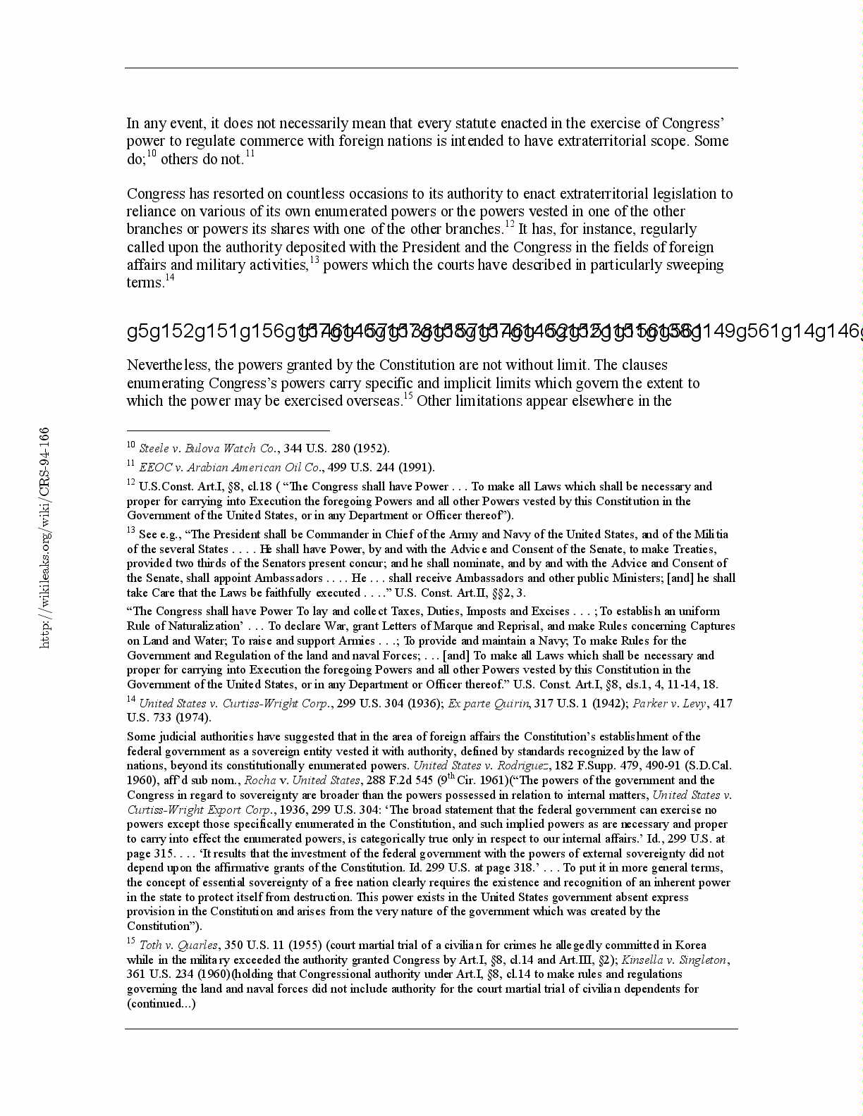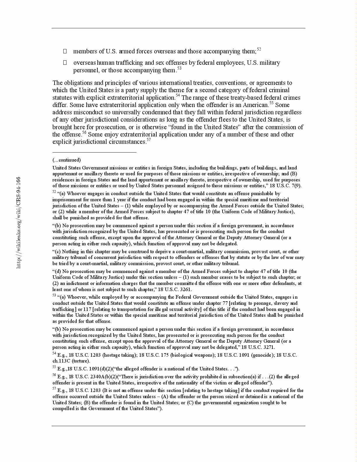 footnotes, and most of its citations to authority – as CRS Report RS22497, Extraterritorial