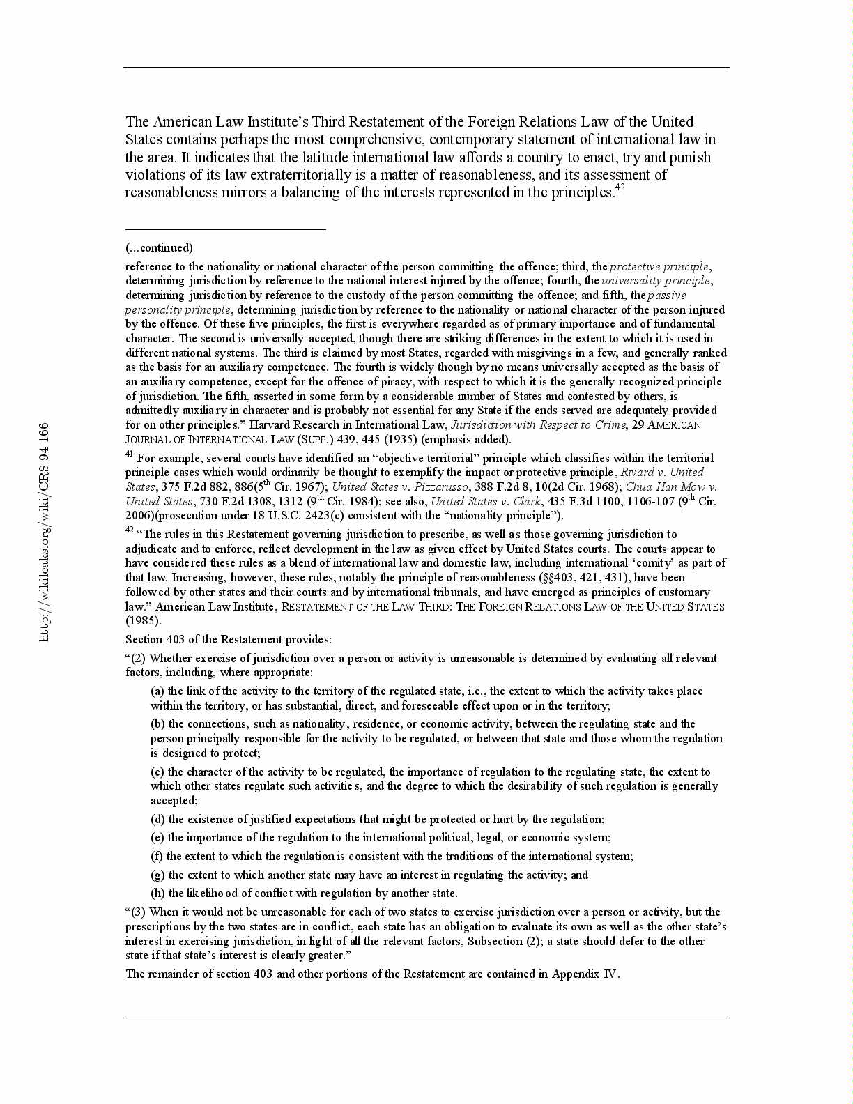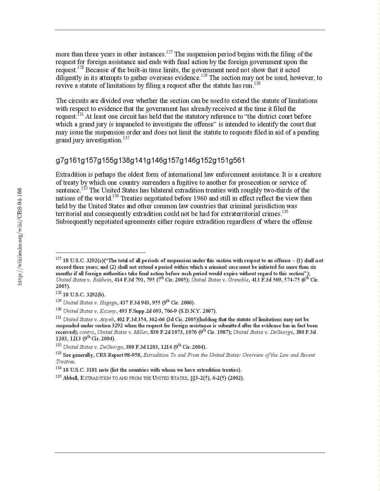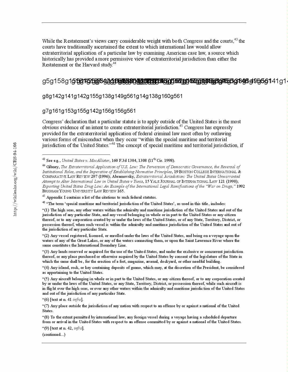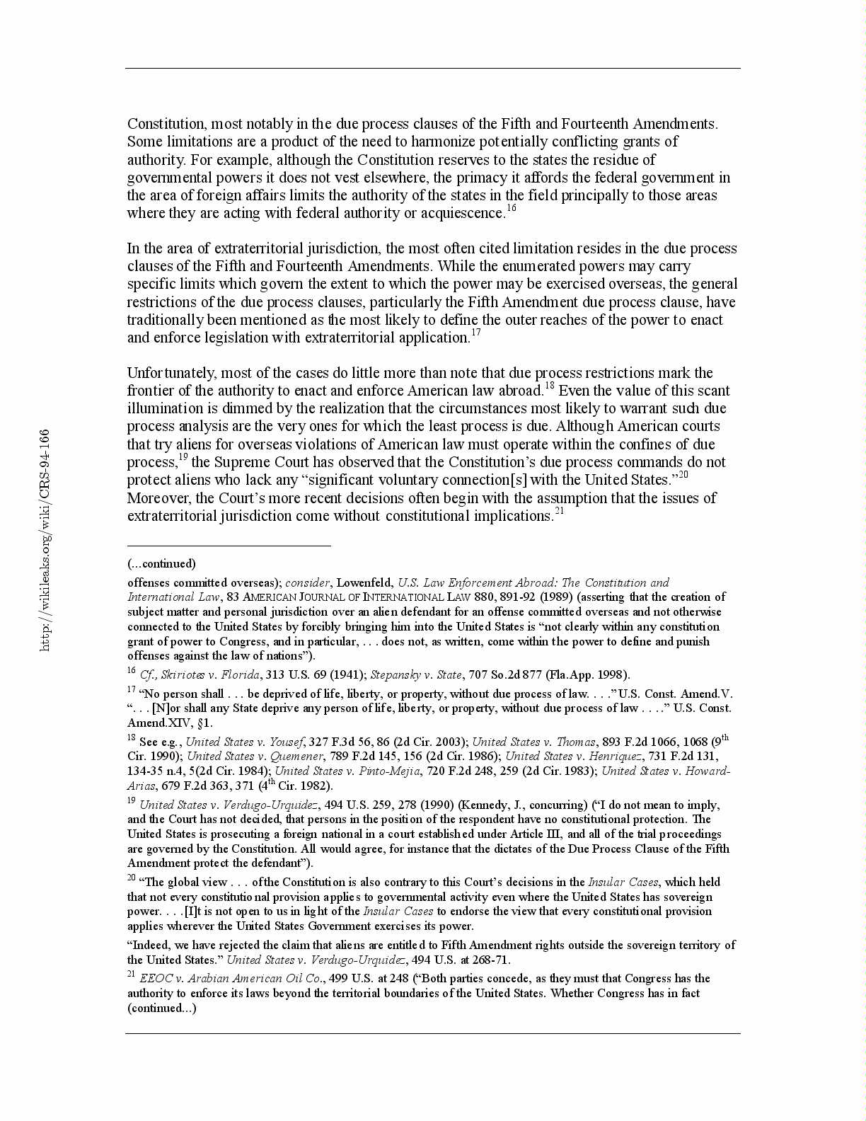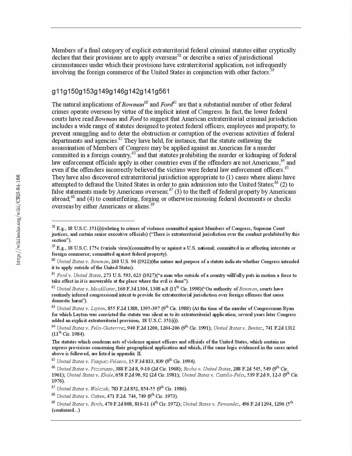 footnotes, and most of its citations to authority – as CRS Report RS22497, Extraterritorial