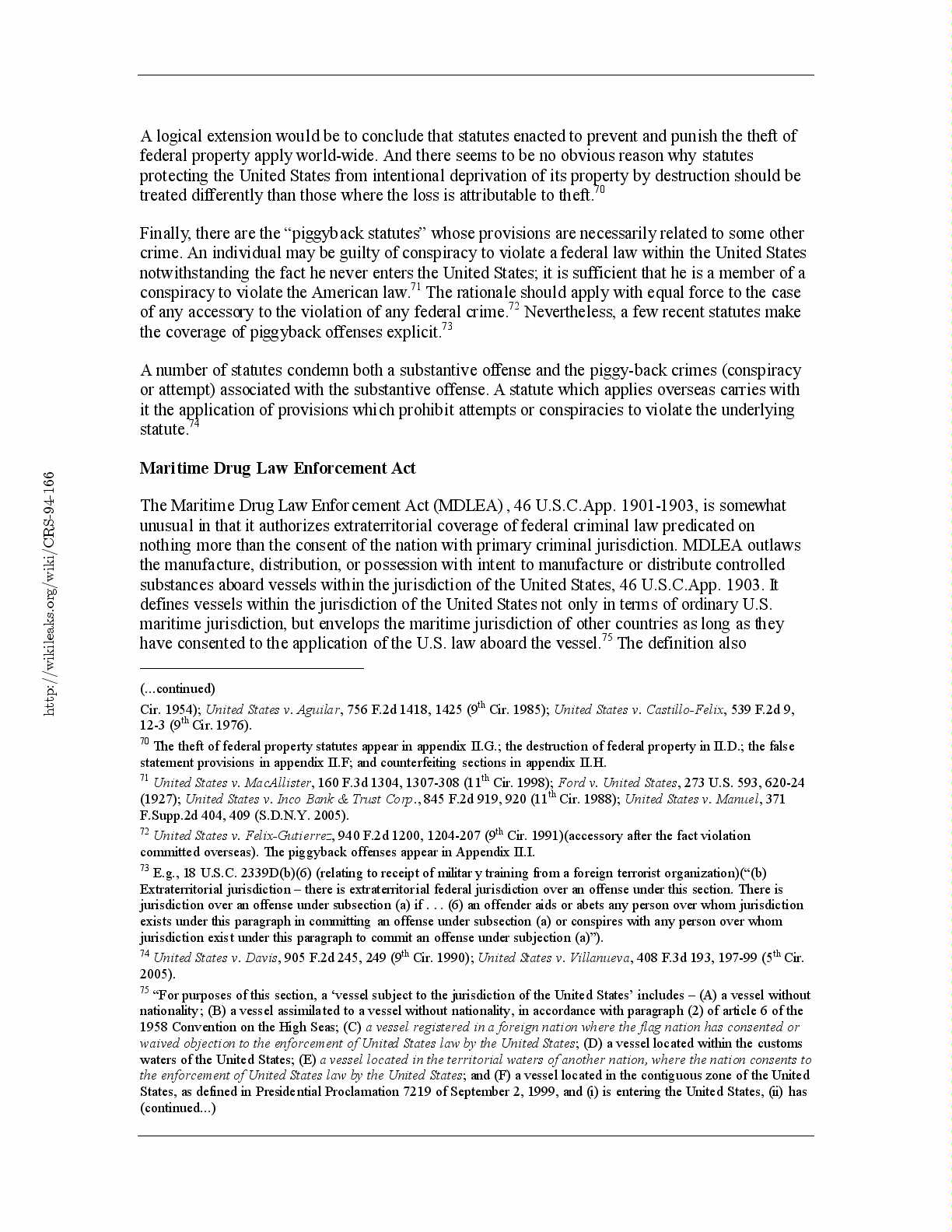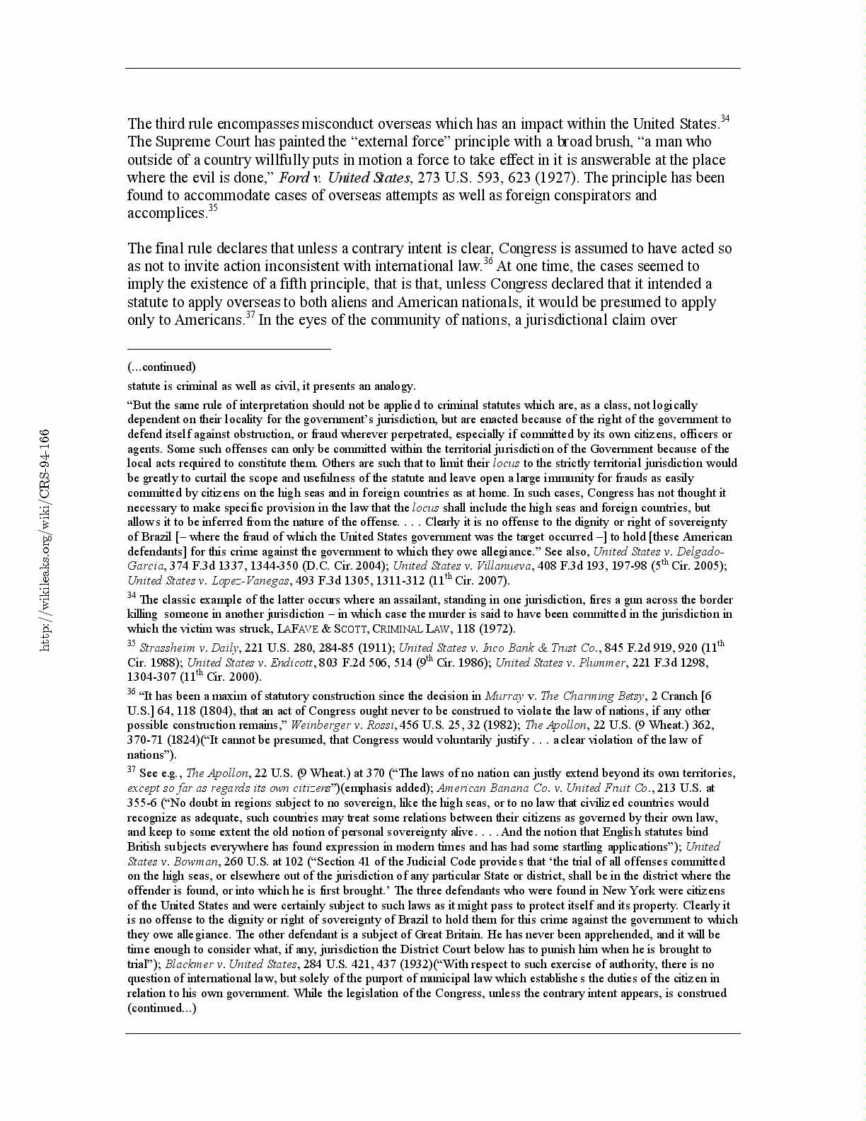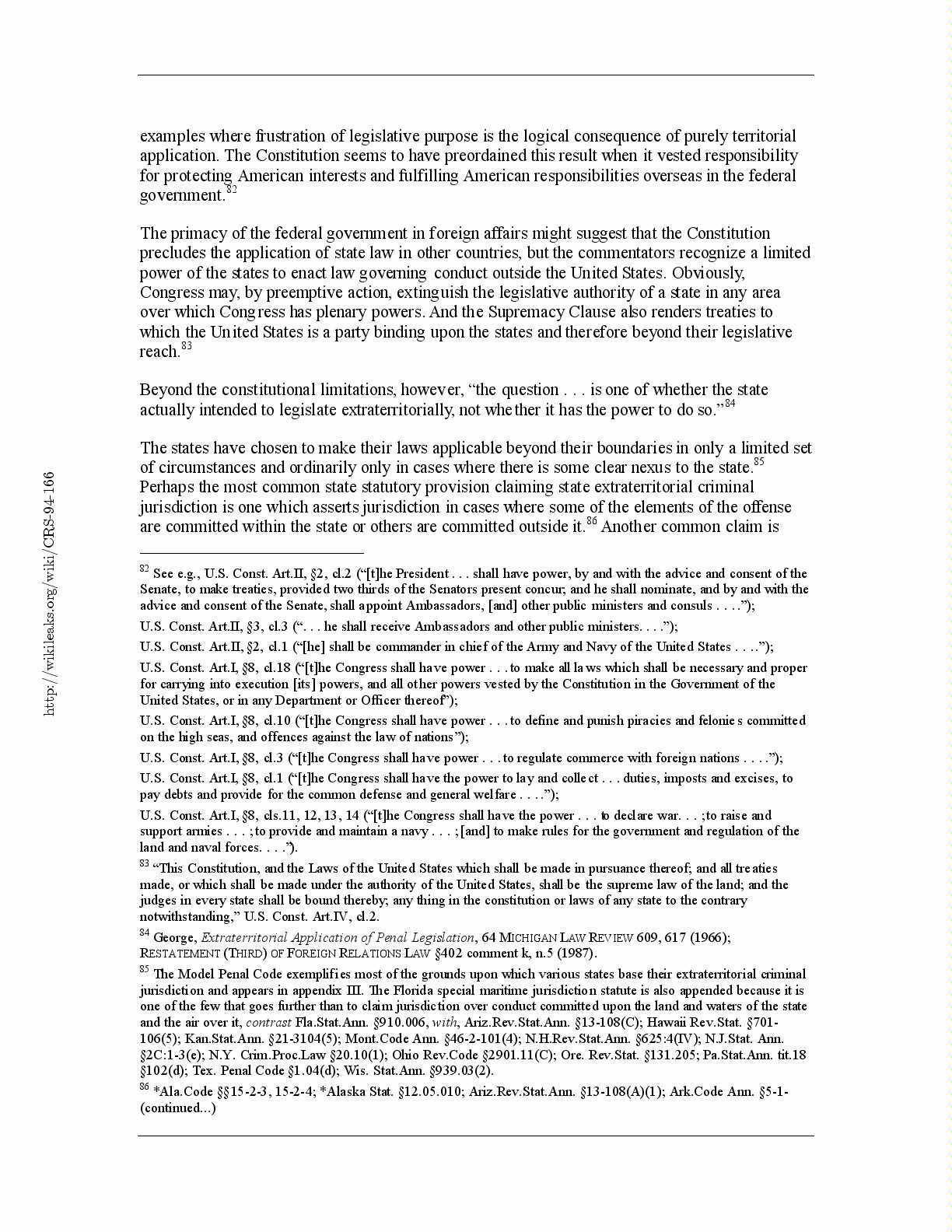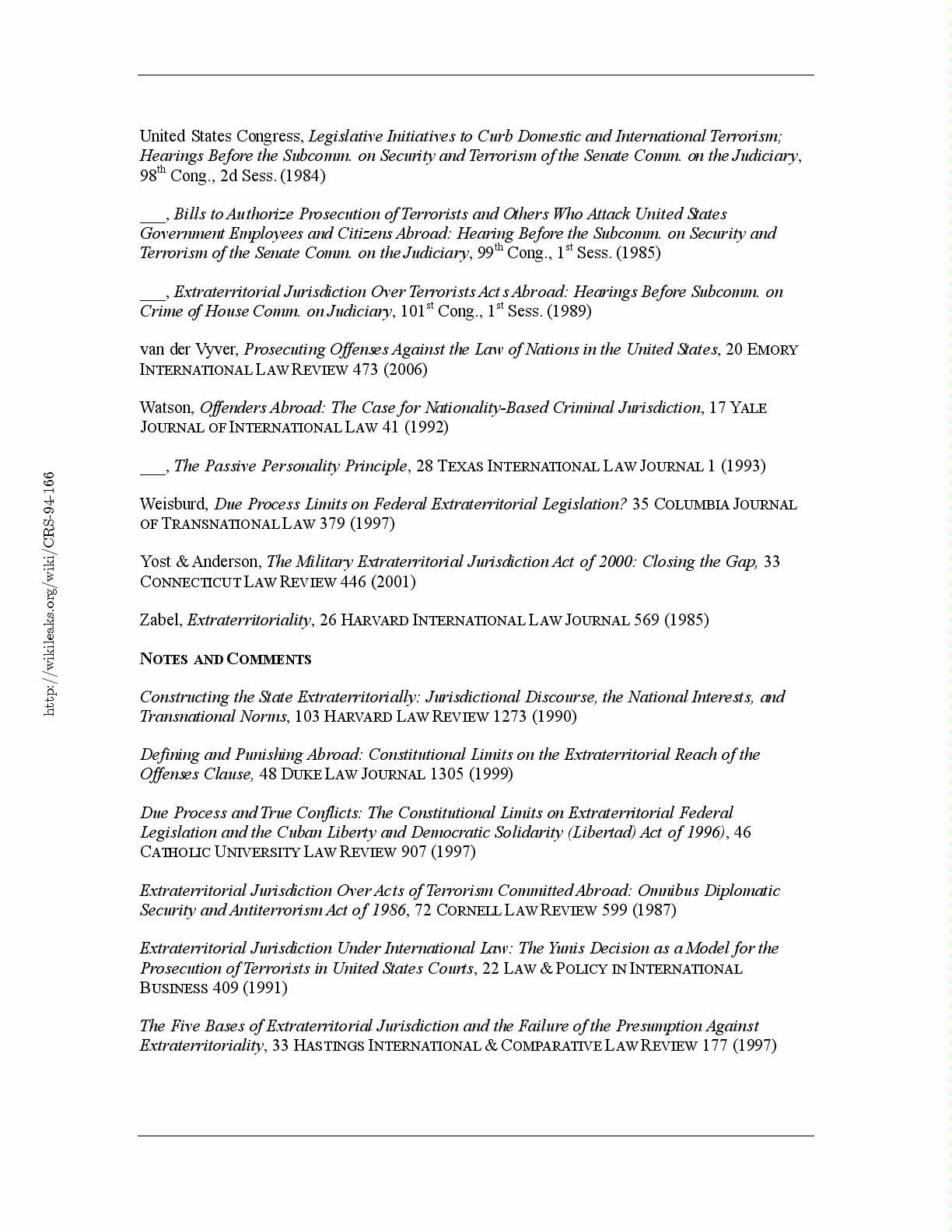 footnotes, and most of its citations to authority – as CRS Report RS22497, Extraterritorial