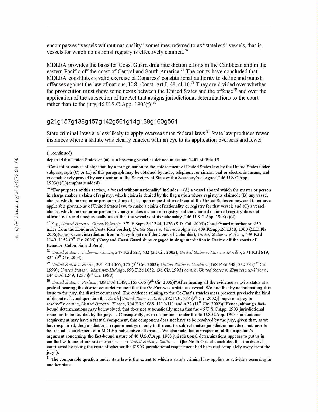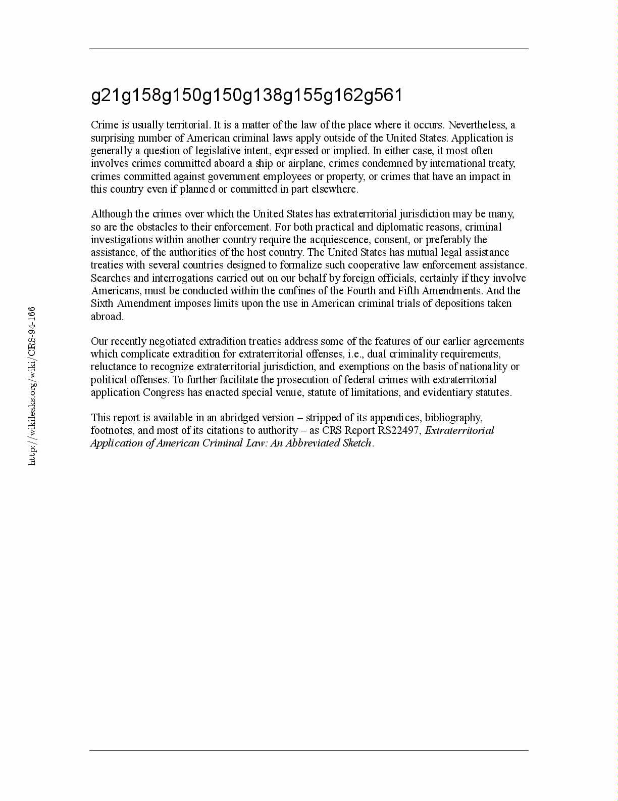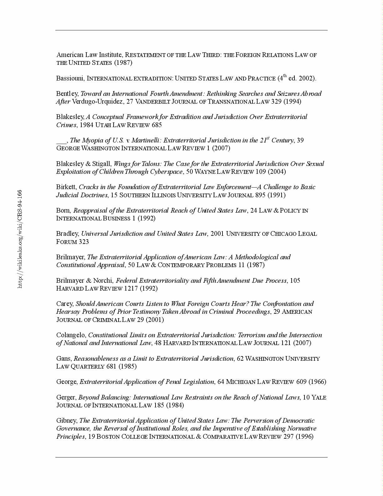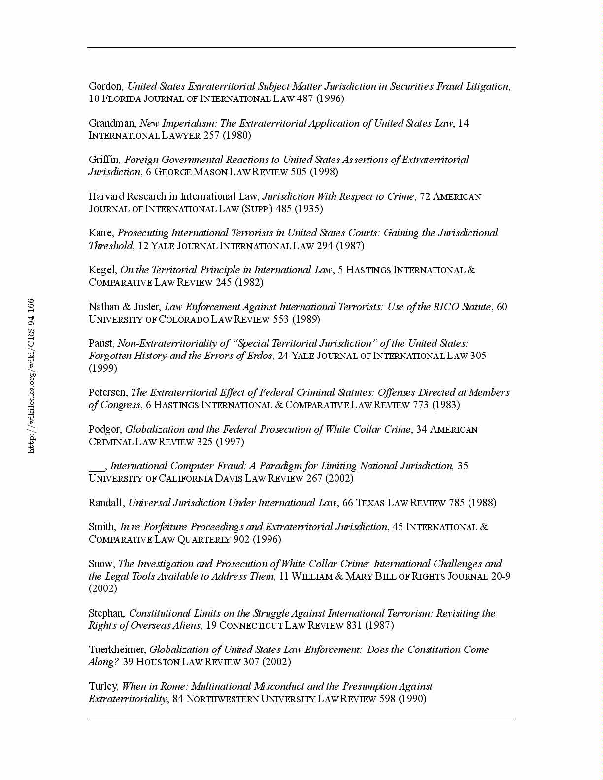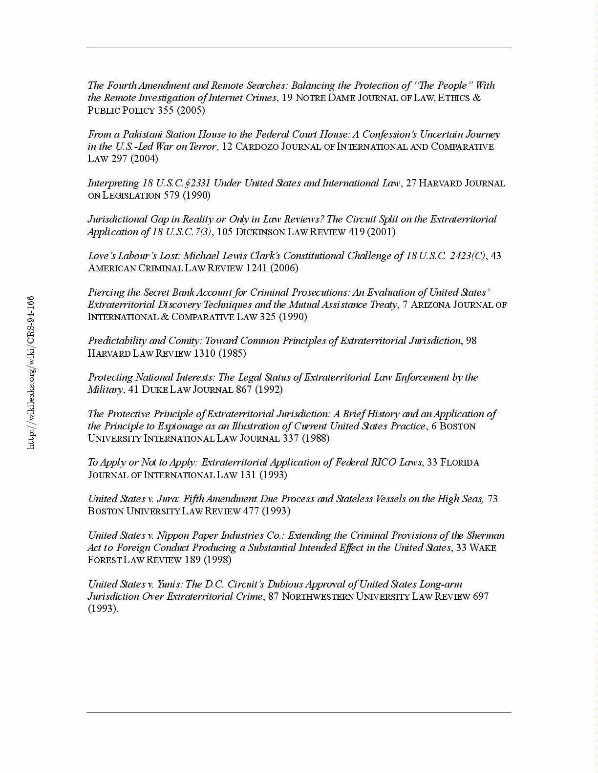 footnotes, and most of its citations to authority – as CRS Report RS22497, Extraterritorial