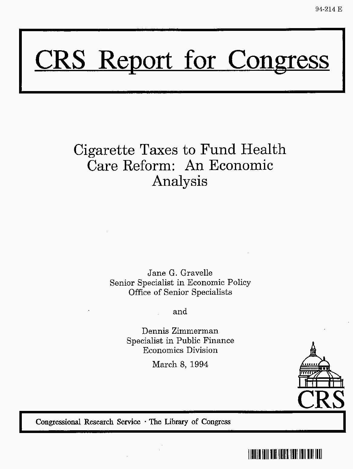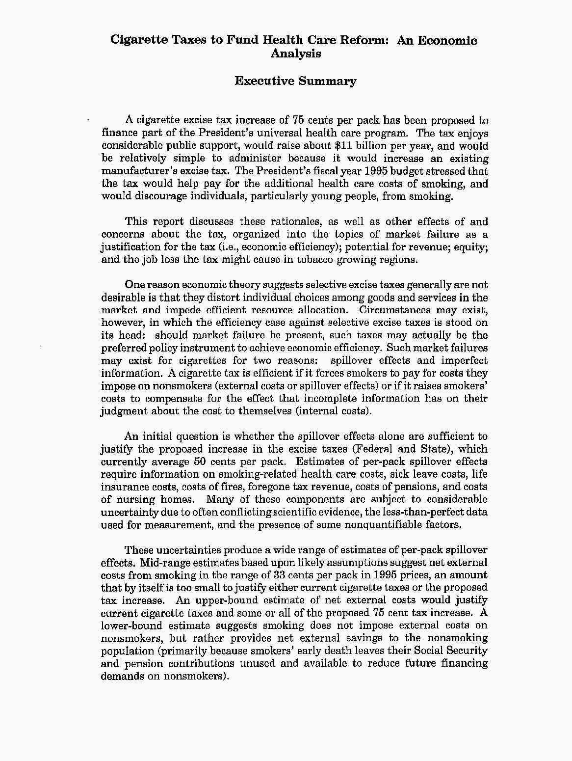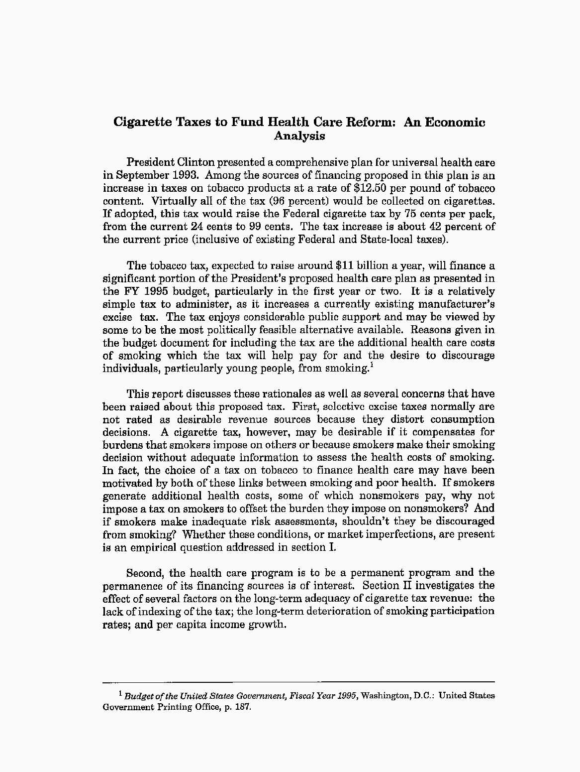 Cigarette Taxes to Fund Health Care Reform: An Economic Analysis