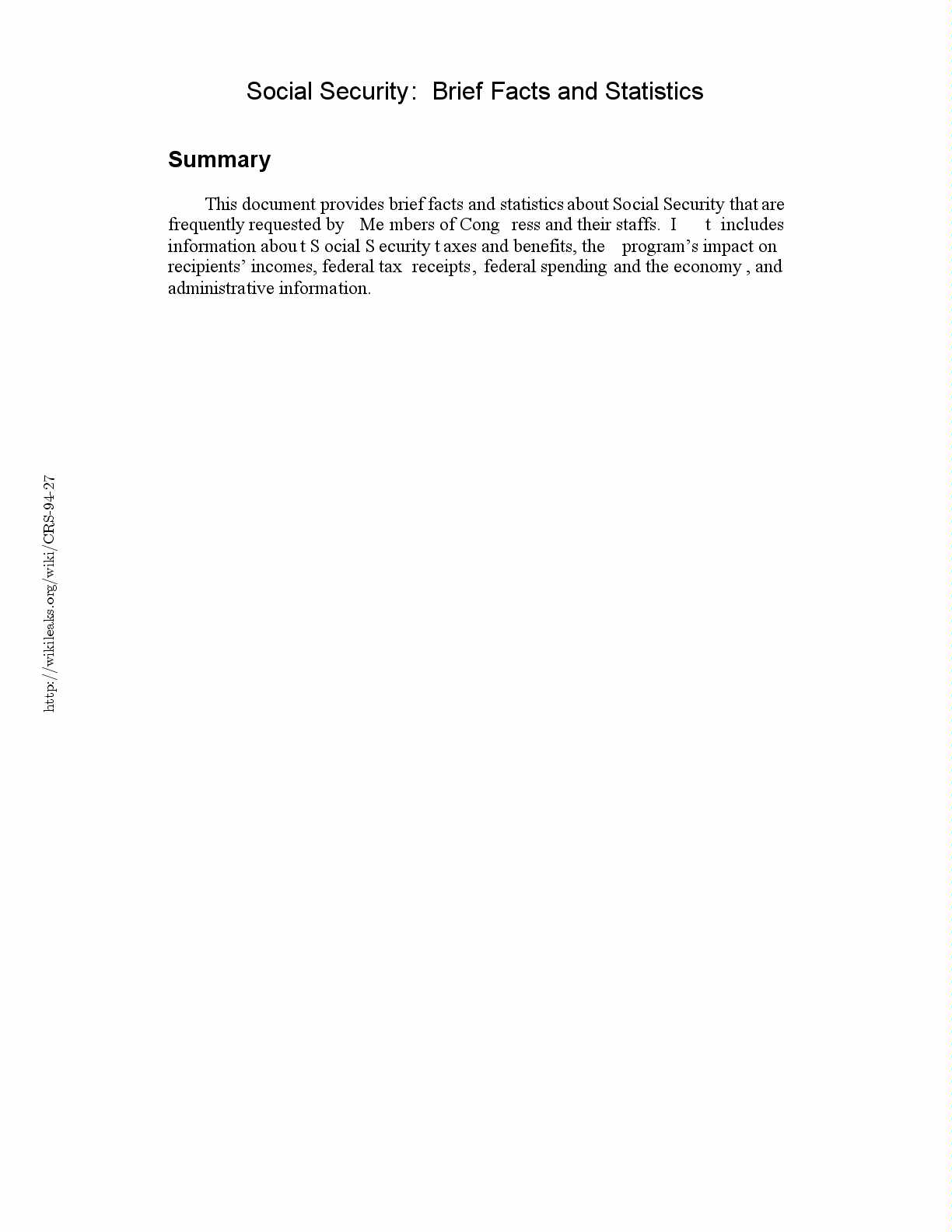 Social Security: Brief Facts and Statistics