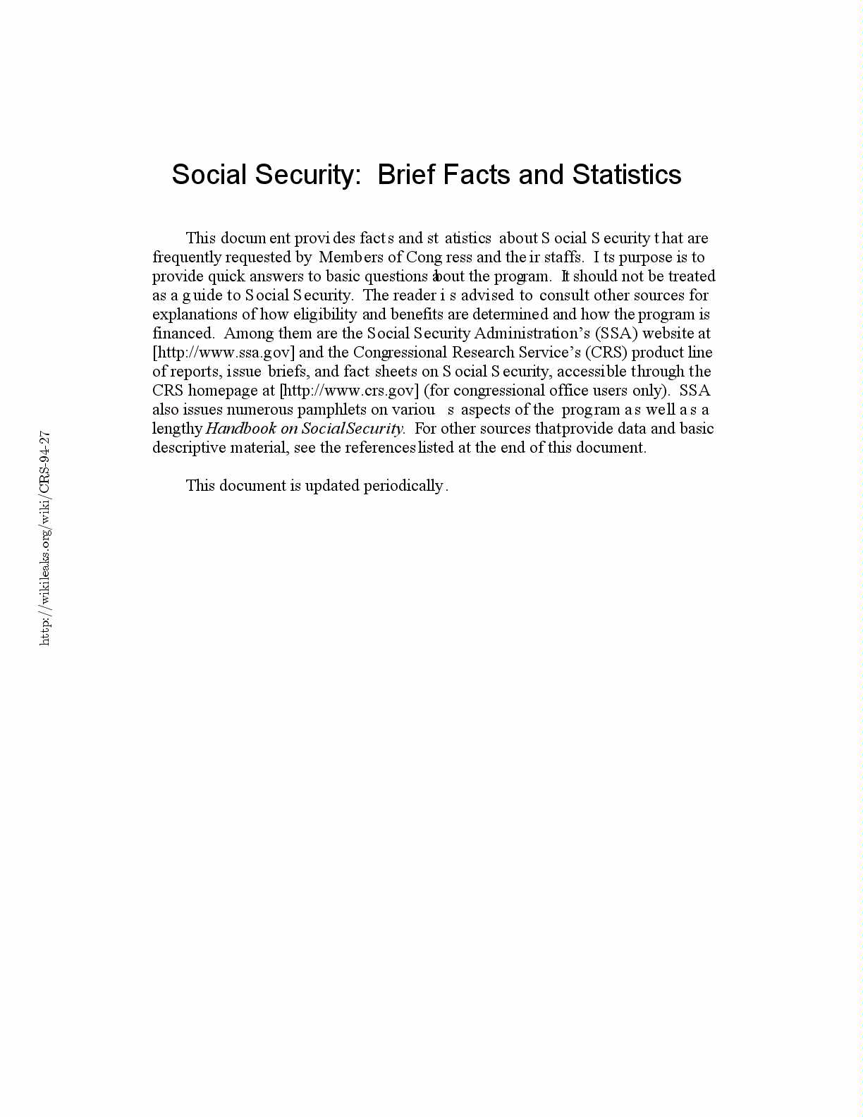 This document provides brief facts and statistics about Social Security that are