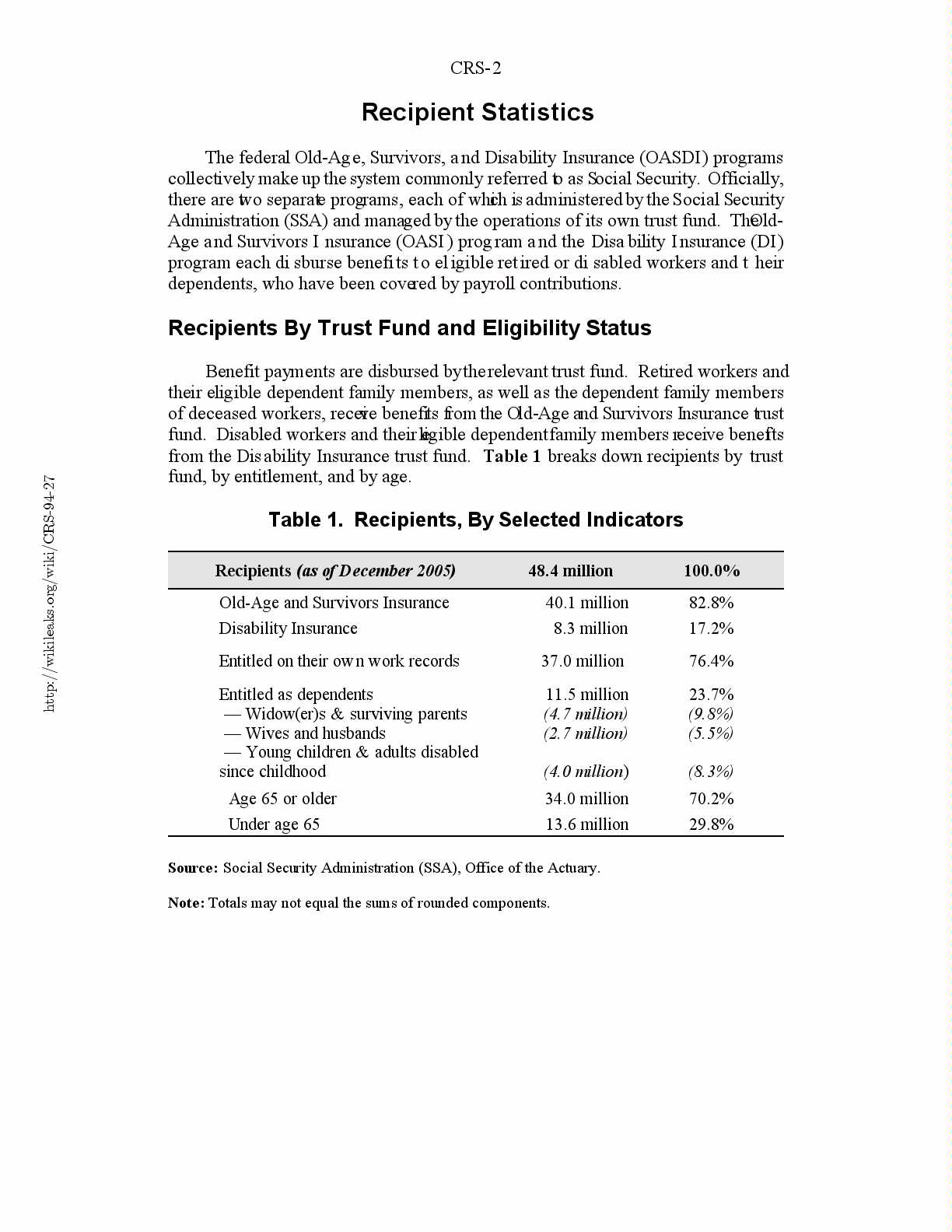 Table 1. Recipients, By Selected Indicators.............................2