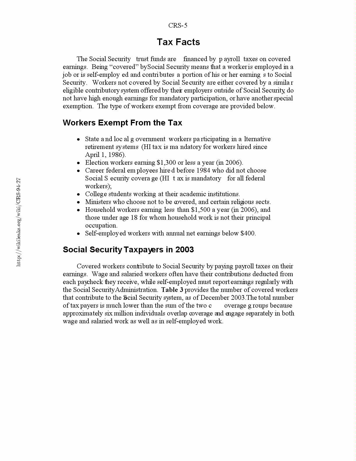 Social Security Taxpayers in 2003.................................5