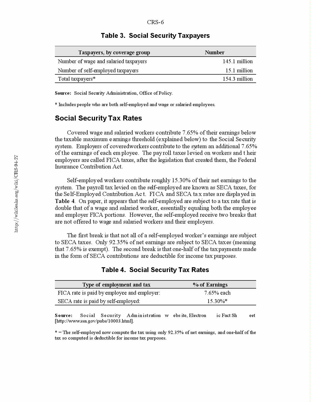 Table 3. Social Security Taxpayers....................................6